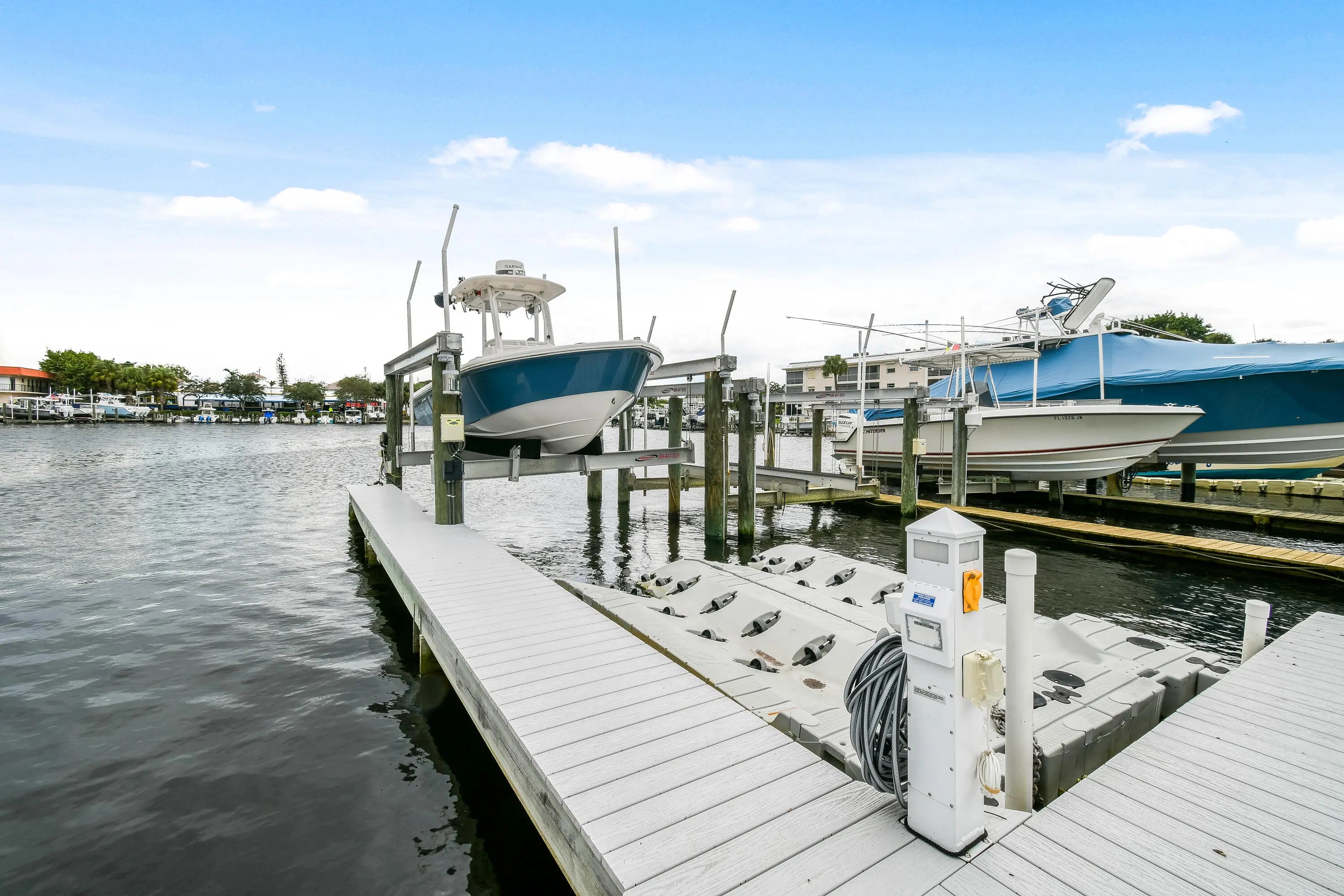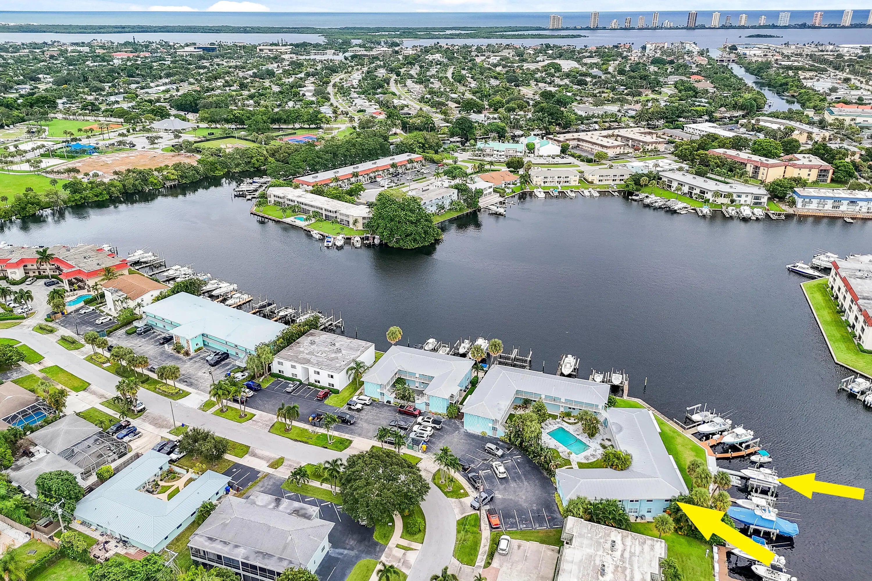 Welcome to this stunning, fully furnished waterfront condo, perfectly updated with modern coastal charm. Enjoy gorgeous water views and the convenience of a 40 FT deeded boat slip, featuring a newer elevated dock with a 24,000 lb boat lift and high-speed motors. Max beam: 11'3''. Inside, the space is thoughtfully designed to maximize comfort and functionality. Highlights include complete hurricane impact windows,stainless steel appliances, gorgeous quartz countertopsand a newer central A/C. Whether you're boating out to Peanut Island or the Palm Beach Inlet, you'll appreciate this ideal location. You're also just minutes from I-95, PBI Airport, and some of the area's best shopping and dining.All measurements are approximate.Call today to schedule your private showing!