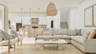 This new two-story home is ready for modern lifestyles. A bedroom and full bathroom are located near the front of the home off the foyer, leading to an open-concept layout shared between the kitchen, living and dining areas. A nearby lanai provides seamless indoor-outdoor living. On the second floor, a versatile loft provides a convenient shared living space easily accessible from three additional bedrooms and a lavish owner's suite with a full bathroom and walk-in closet.Prices, dimensions and features may vary and are subject to change. Photos are for illustrative purposes only.