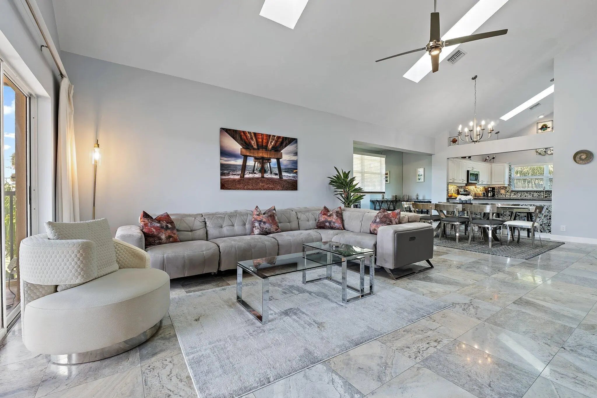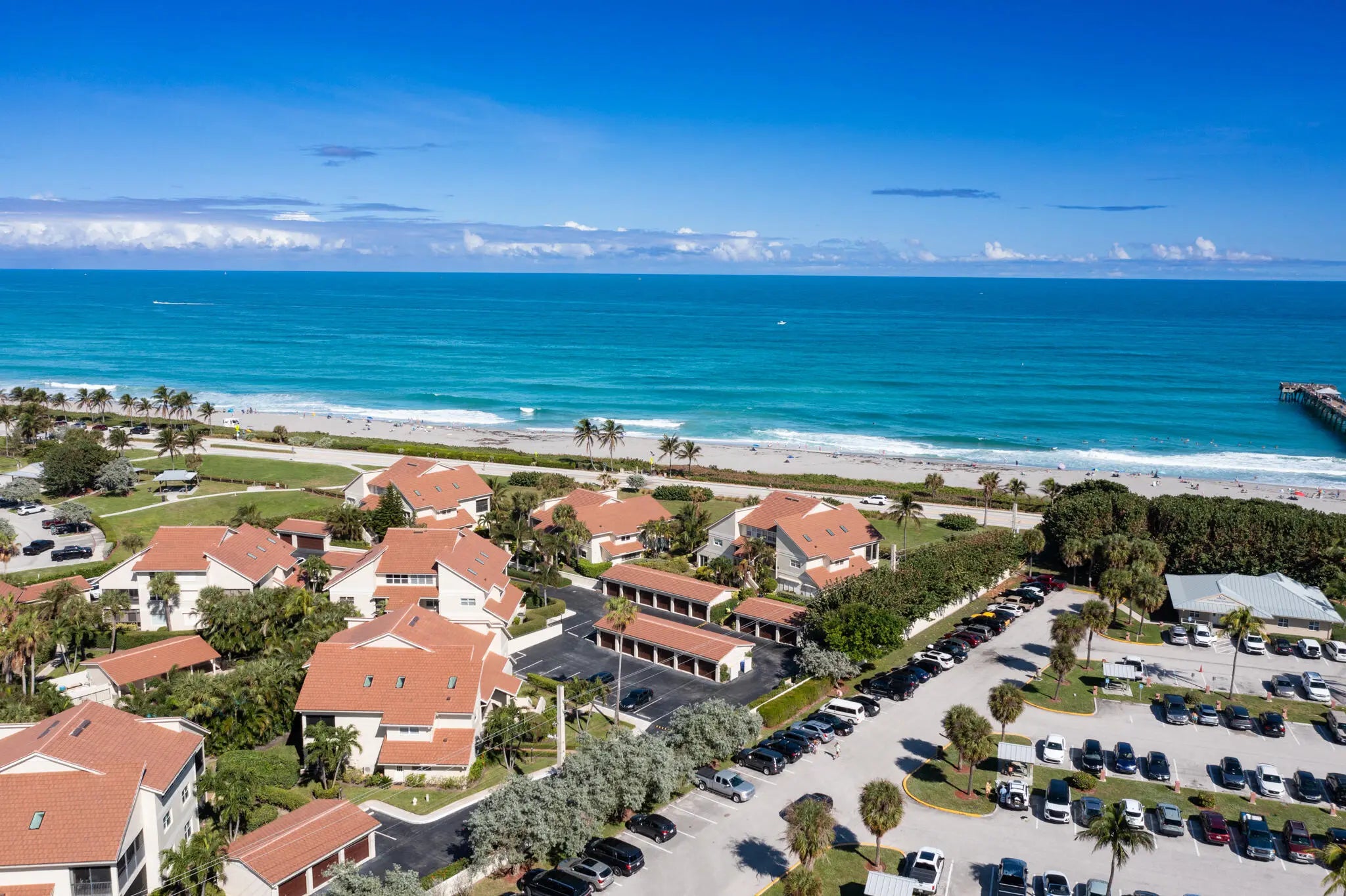 Nestled between Ocean Cay Park and the iconic Juno Beach Pier, this spacious four-bedroom, three-bathroom, two-level Beachcomber condo offers a premier coastal lifestyle. Just steps from a pristine, dog-friendly beach, Unit G3 boasts a new roof, fresh paint, new skylights, new impact rated windows, tankless water heater, new HVAC system, and new appliances. Elegant stone tile floors run through the open living area and kitchen which features coastal-inspired tile and granite countertops. A large screened patio, accessible from both the living room and master suite, provides the perfect space to relax after a beach day. With a gated entry, lush landscaping, and community pool, Beachcomber has it all in a prime location near shops and dining. An enclosed garage is included.
