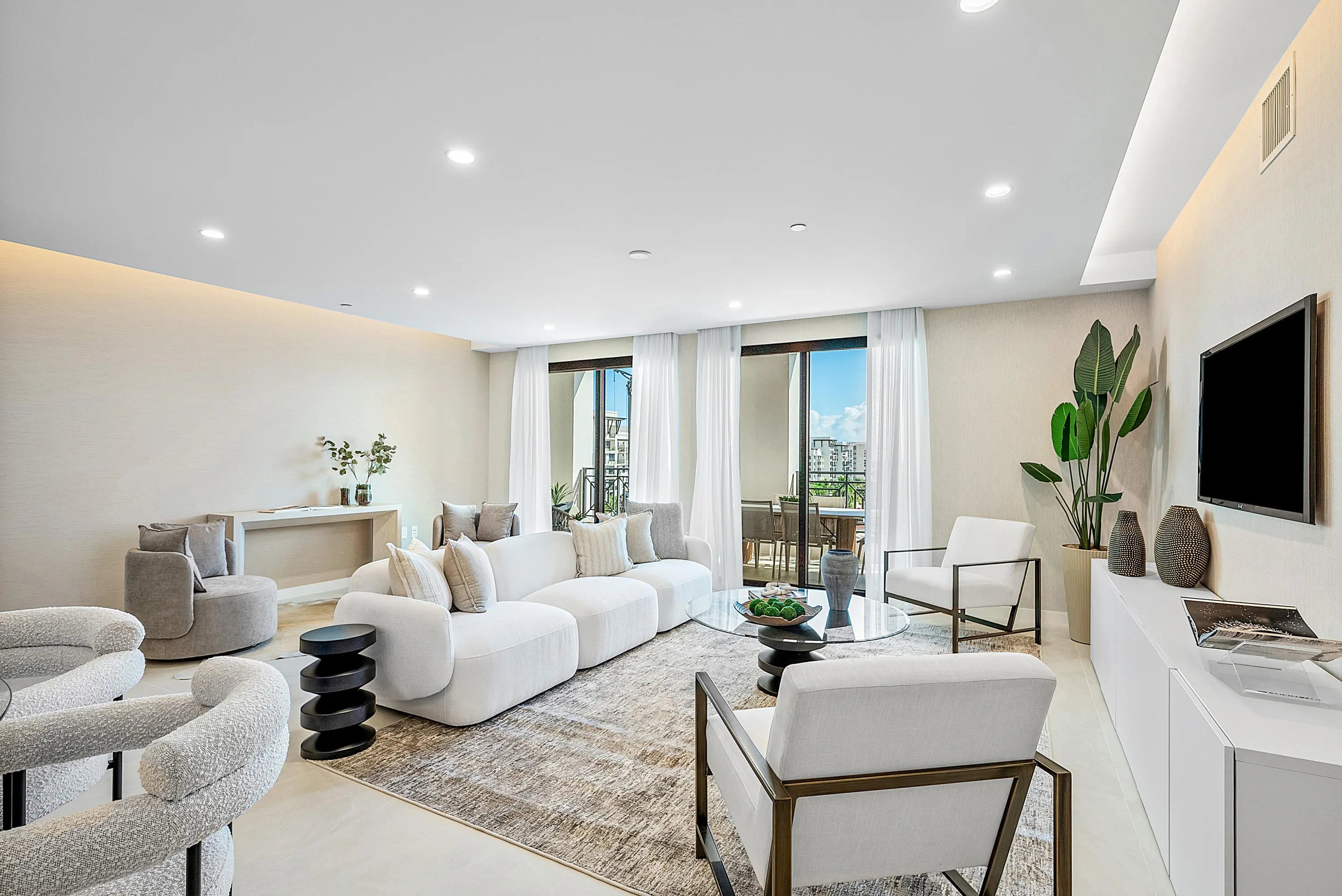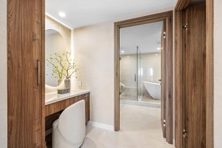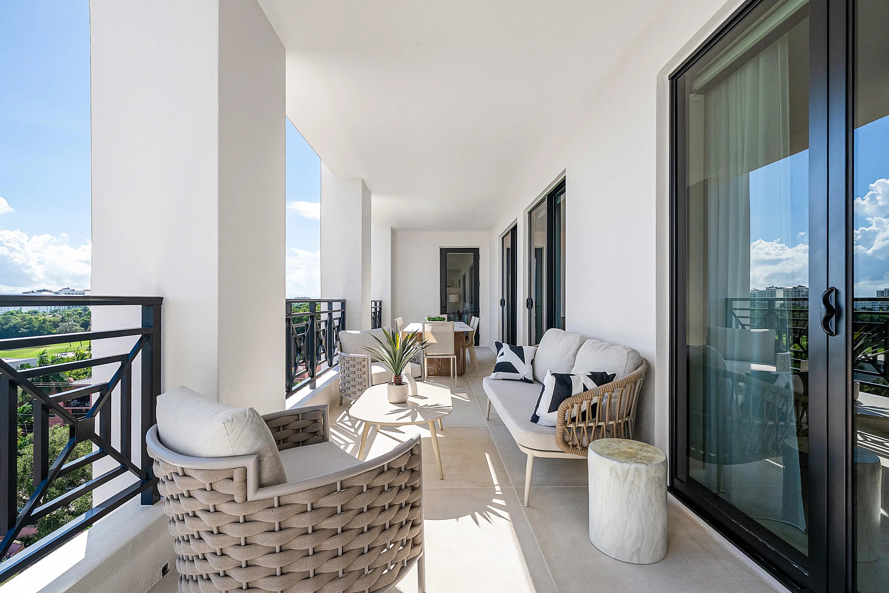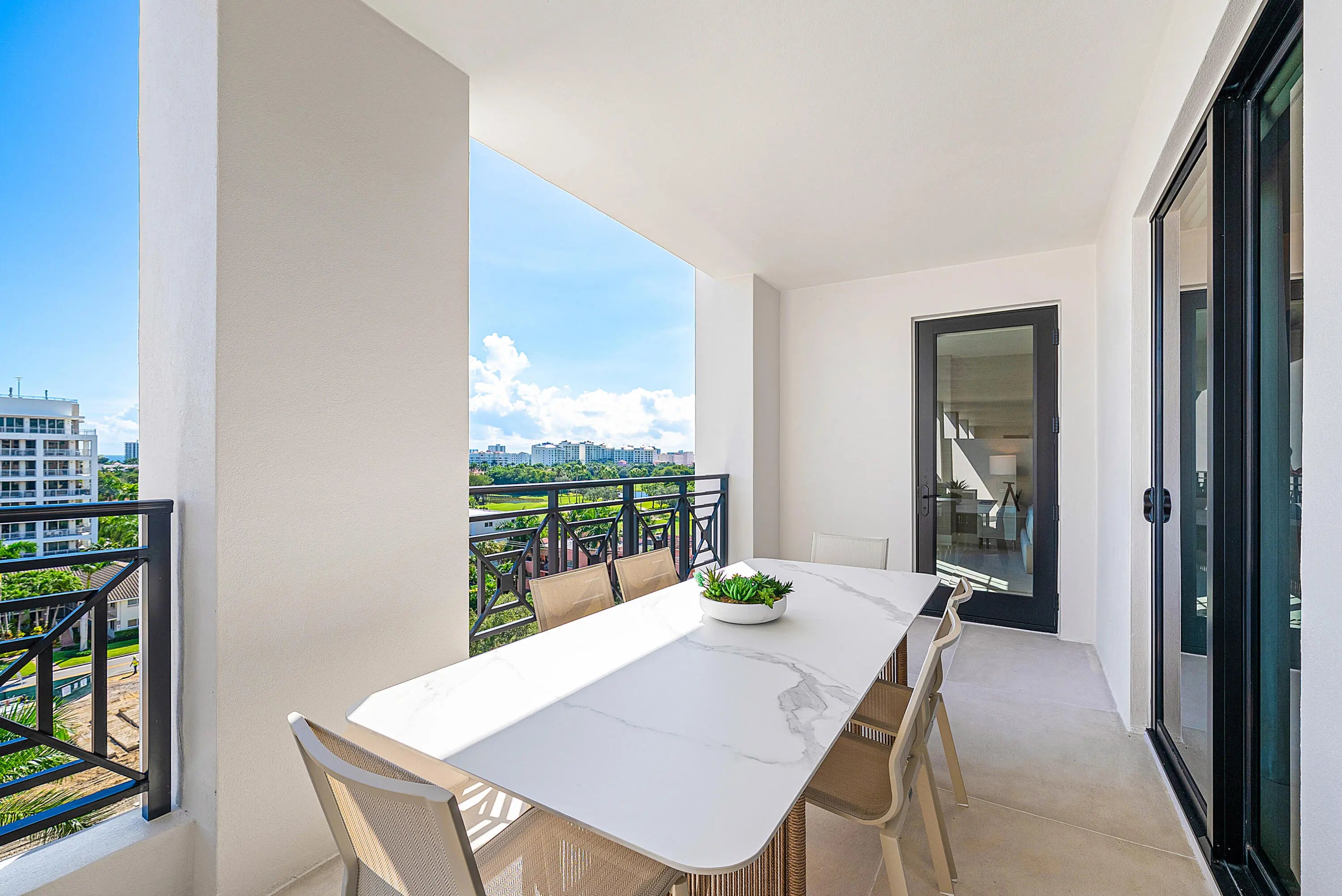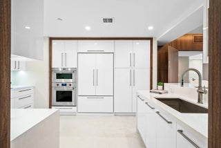 Experience rarified luxury in this newly completed, high-design renovation perched on the seventh floor of one of East Boca's most prestigious addresses. The sprawling split-bedroom layout offers two en-suite bedrooms, two-and-a-half baths, and a spacious den/office, perfectly blending modern sophistication with effortless comfort. The expansive balcony captures sunlit city views--an inviting backdrop for morning coffee or evening cocktails.Every element has been curated to perfection, from the chef's European kitchen adorned with premium finishes to the custom built-out, oversized walk-in closets. A separate laundry room enhances convenience, while warm contemporary design defines every corner.This full-service, high-security building offers (click ''more'')
