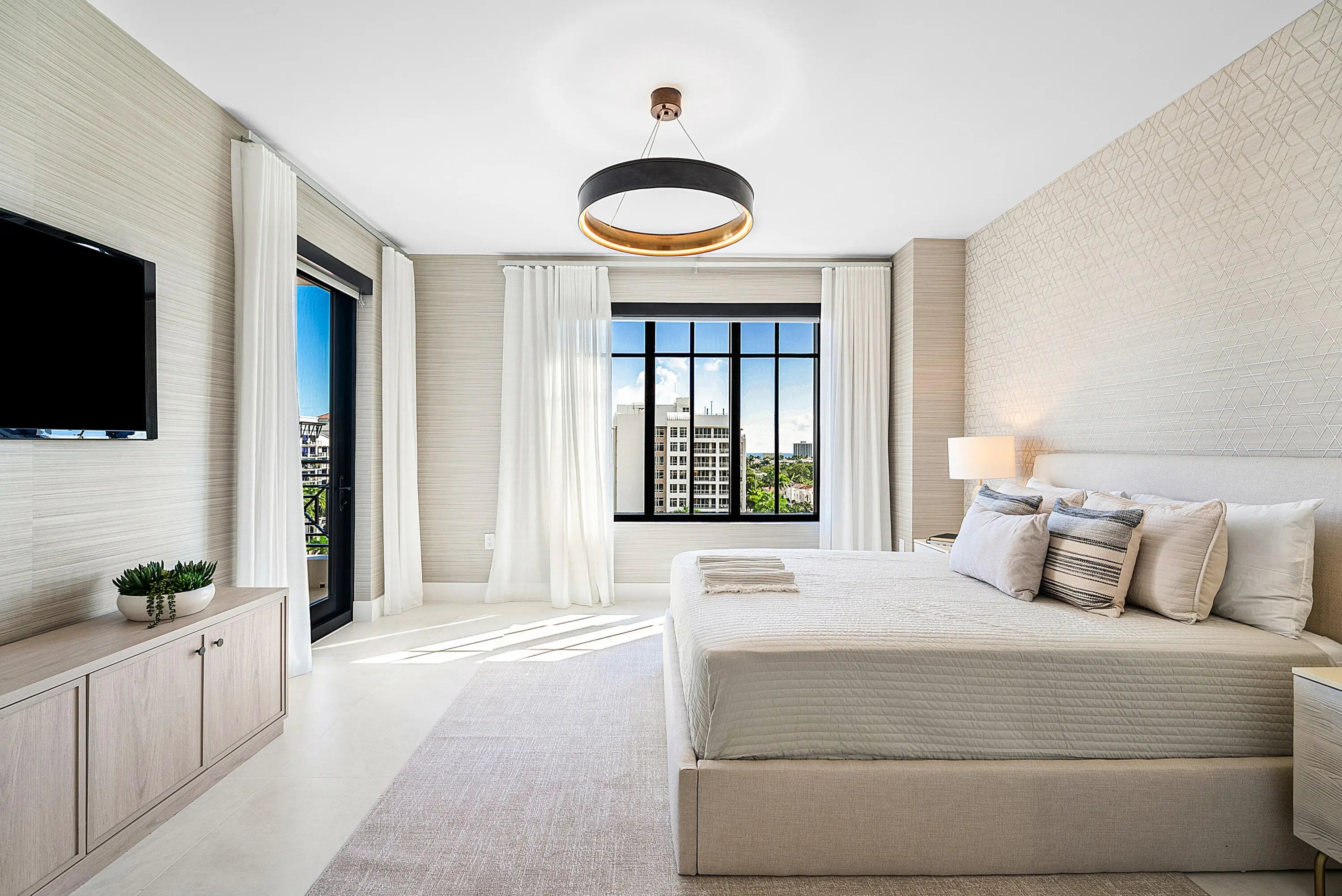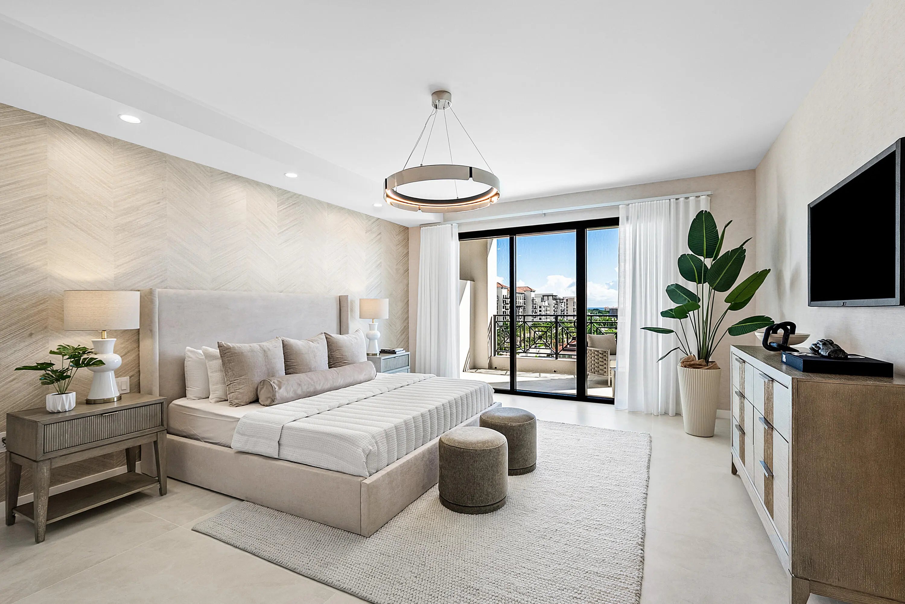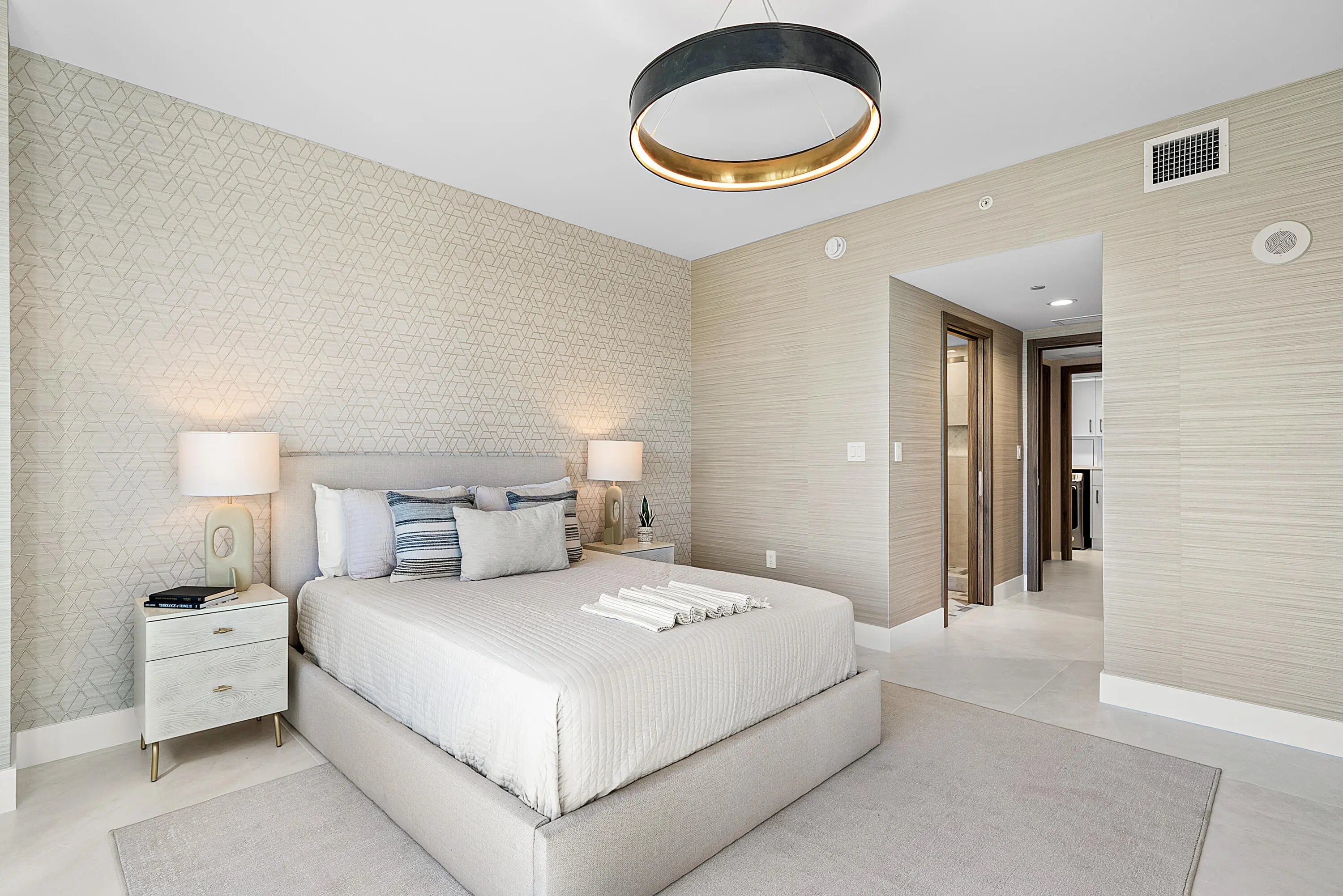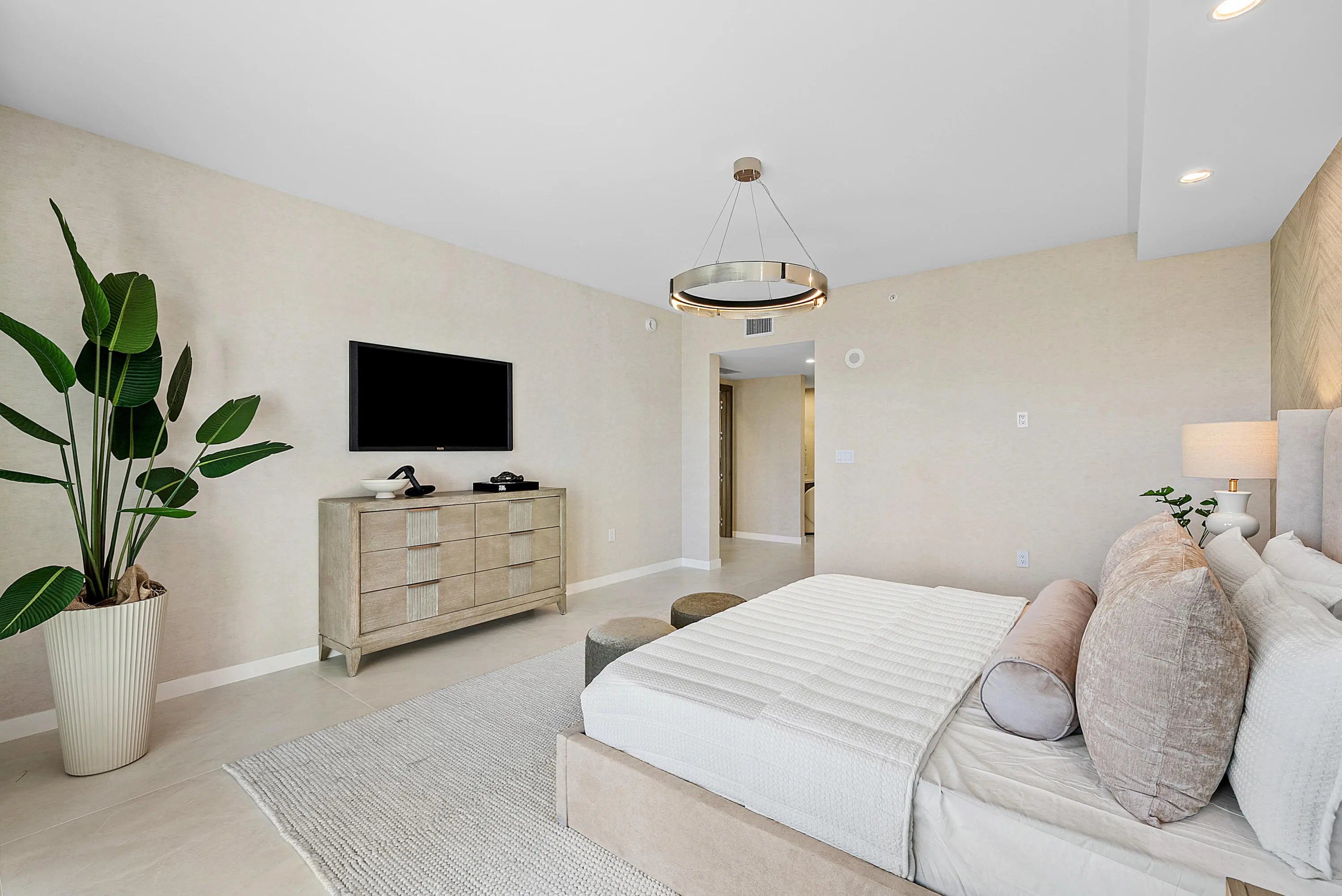 Experience rarified luxury in this newly completed, high-design renovation perched on the seventh floor of one of East Boca's most prestigious addresses. The sprawling split-bedroom layout offers two en-suite bedrooms, two-and-a-half baths, and a spacious den/office, perfectly blending modern sophistication with effortless comfort. The expansive balcony captures sunlit city views--an inviting backdrop for morning coffee or evening cocktails.Every element has been curated to perfection, from the chef's European kitchen adorned with premium finishes to the custom built-out, oversized walk-in closets. A separate laundry room enhances convenience, while warm contemporary design defines every corner.This full-service, high-security building offers (click ''more'')