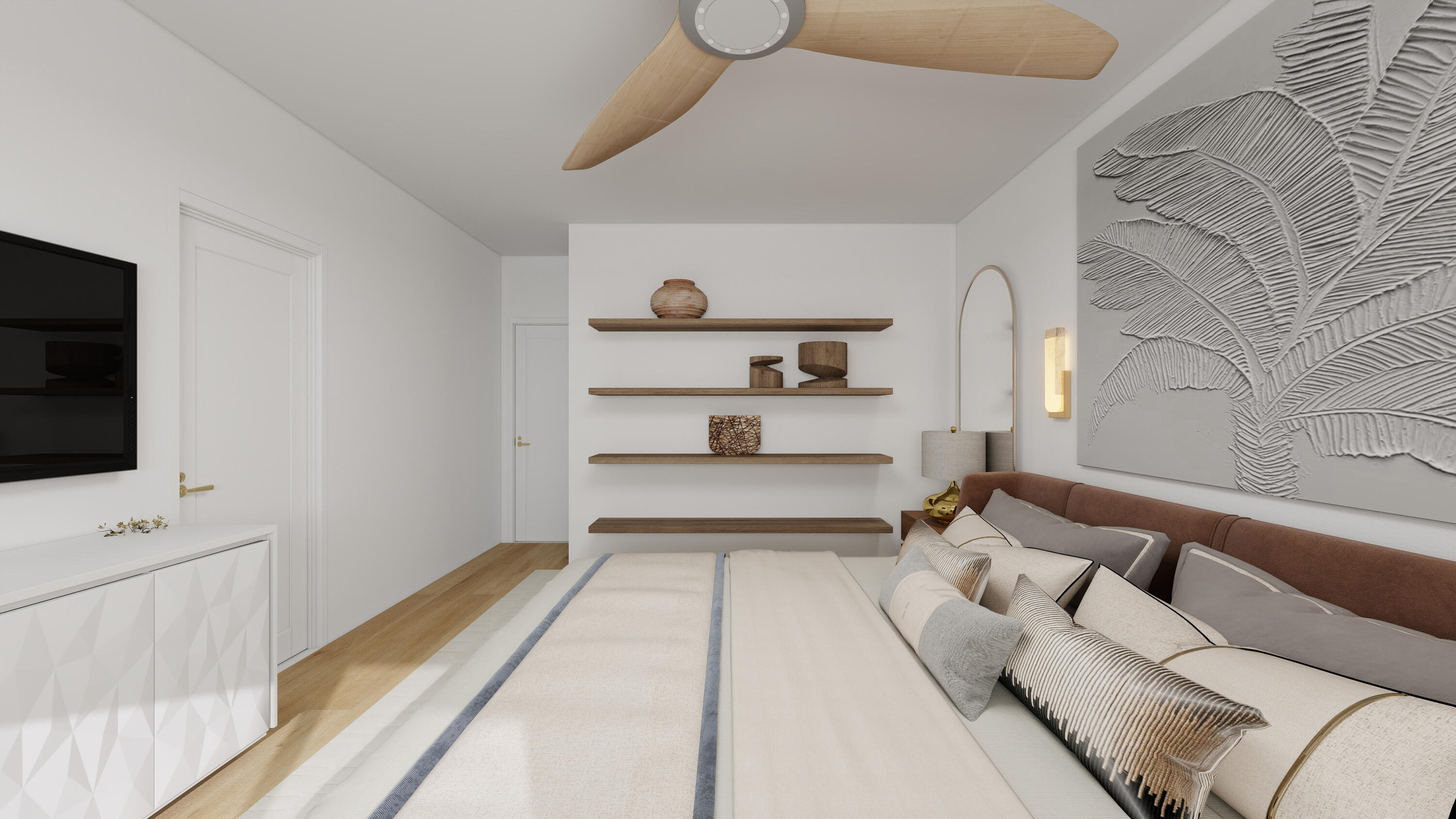 Newly reimagined Polo Club residence, finishing touches underway. Features all new Thermador appliances, custom cabinetry, waterfall stone island, and built-in wine fridge. White oak hardwood floors throughout. Primary suite includes walk-in closet and large bathroom with floating double vanity and spa style shower. Two guest bedrooms with large closets and elegant bathrooms. All new washer and dryer, complete impact glass, new water heater, and recently installed AC unit. Spacious screened balcony with water and polo field views. No detail overlooked. Located in the gated Palm Beach Polo with access to gym, dog park, and walking trails, just minutes from premier equestrian venues. Available now for previews, completion expected mid to late November. Interior visuals are 3D renderings.