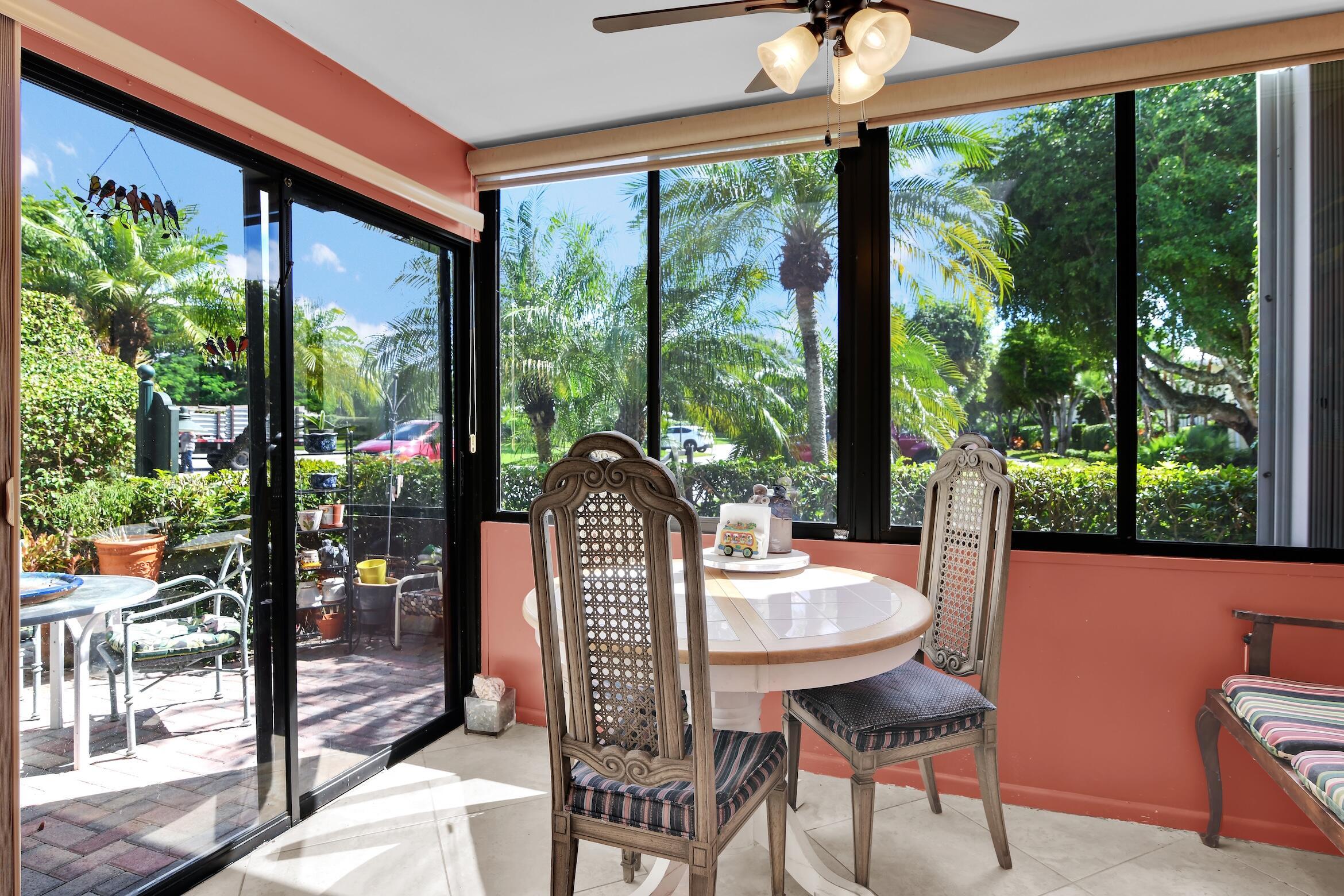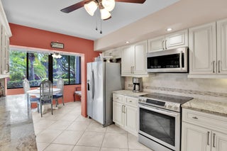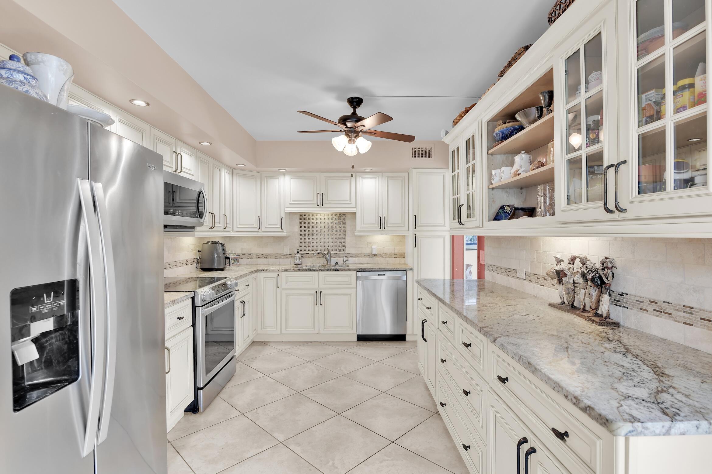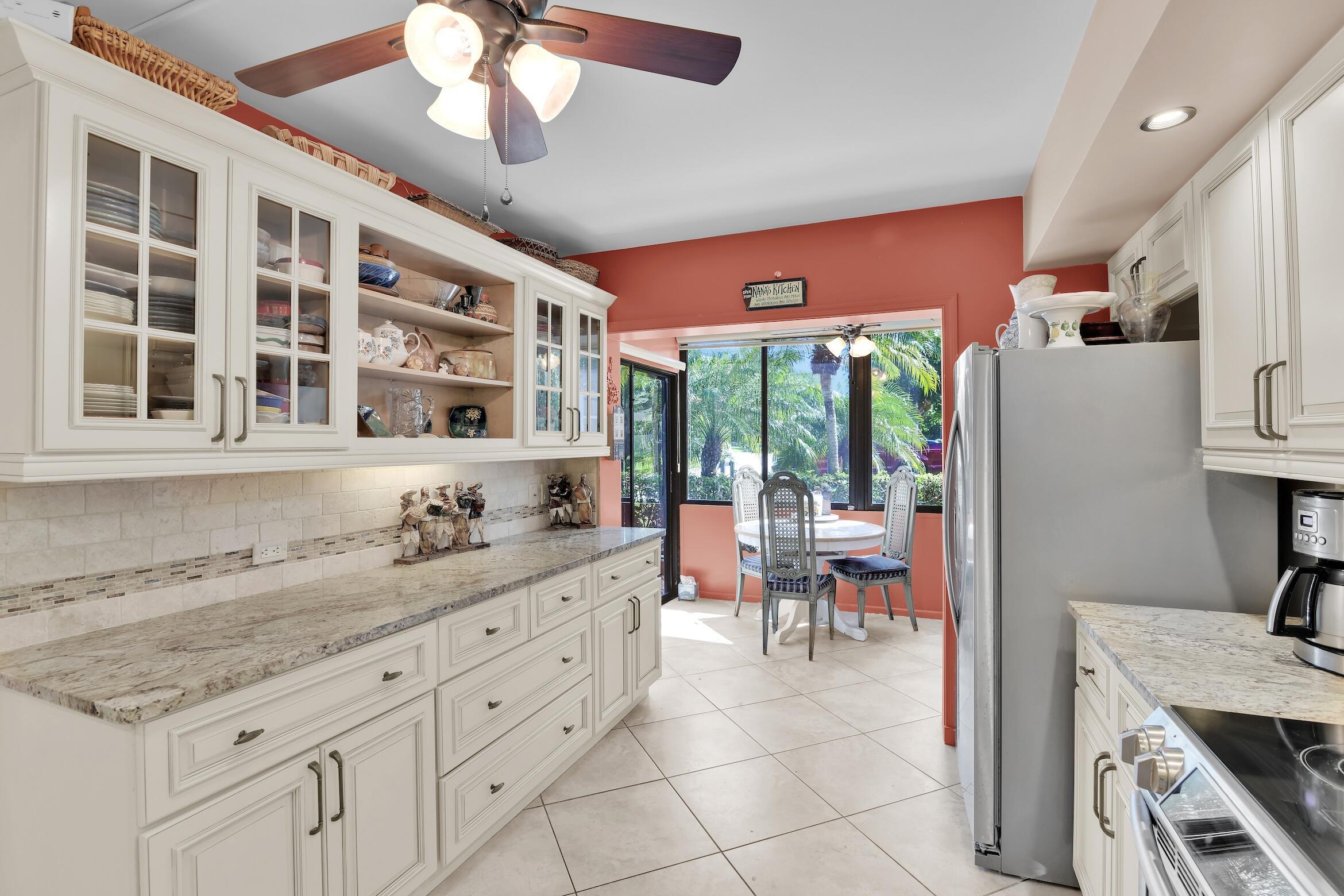 Experience unparalleled luxury and comfort in this exceptional first-floor unit at Quail Ridge, where breathtaking views of the lake and the iconic 8th South golf hole greet you from the moment you walk in. This spacious split model, three-bedroom, two-bath residence boasts an open floor plan, perfect for living and entertaining. The renovated kitchen features cream-painted cabinetry, some with glass fronts, and stunning granite countertops, offering a modern yet inviting space. Enjoy your morning coffee in the cozy breakfast nook, which opens to a beautiful paved patio. The main bedroom provides a serene escape, two wall closets and an extra linen closet, all while showcasing that stunning view. The bathroom is equipped with a step-in shower, At Quail Ridge mandatory membership required.At Qual Ridge, members enjoy world-class amenities. The property features two golf courses, a racquet sports center that includes pickleball, a fitness center and spa, as well as a clubhouse offering fine and casual dining in beautiful surroundings.