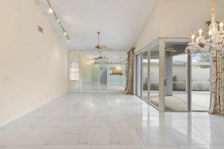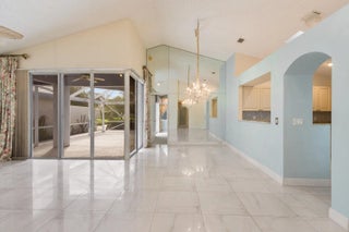 Discover the beauty of Barclay Club, nestled by a tranquil lake lagoon in gated PGA National Golf & Resort Community. This charming home features 3 bedrooms, 2 baths, and a 2-car garage, just steps to a private community pool for residents. Upgrades include impact glass doors, hurricane shutters, elegant 20x20 ceramic tile floors in the living areas. Enjoy the extended, screened back patio with serene water views, complemented by abundant natural light from windows, doors and skylights. With a low HOA fee and no mandatory golf membership, this home is ideal for both seasonal and year-round living.