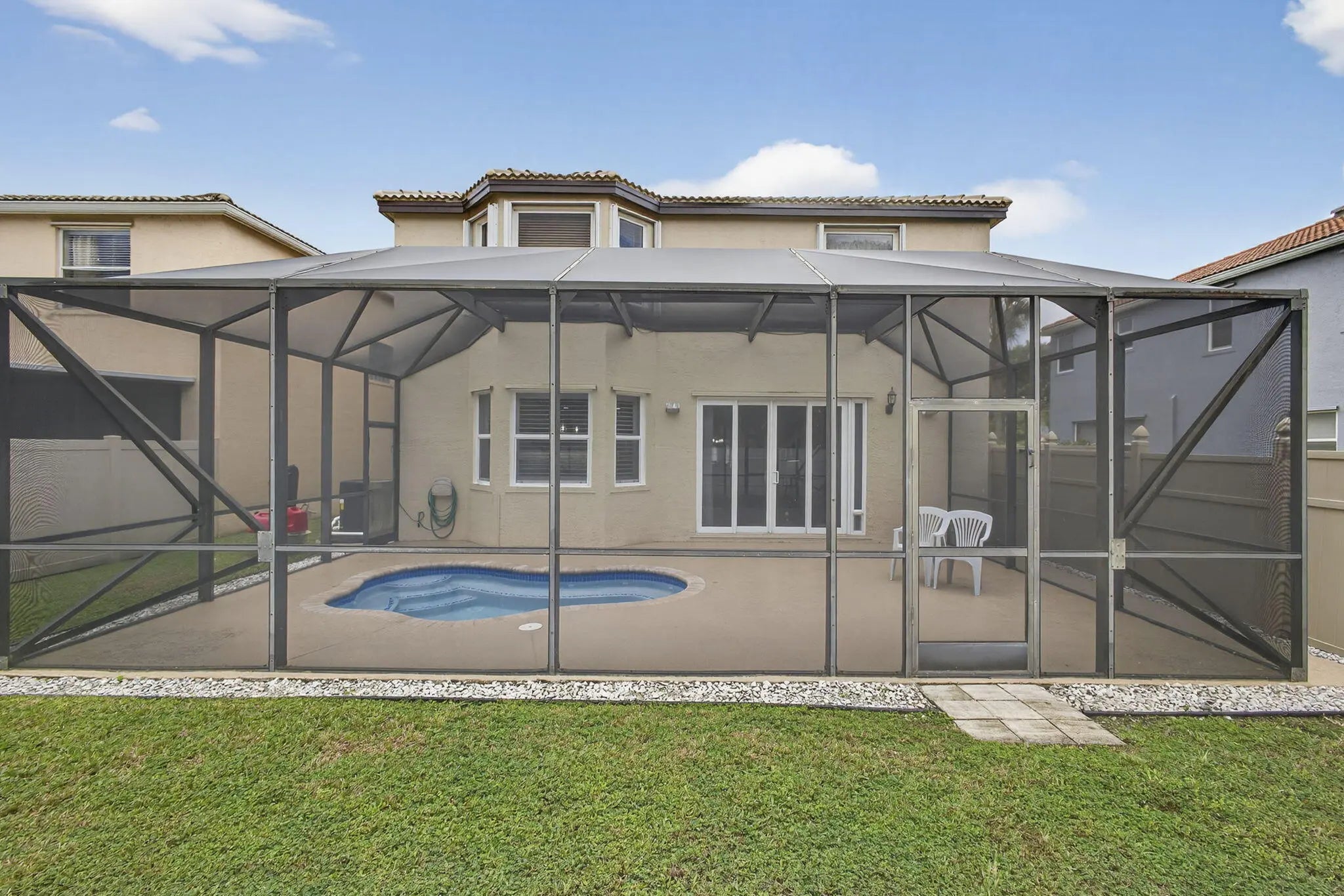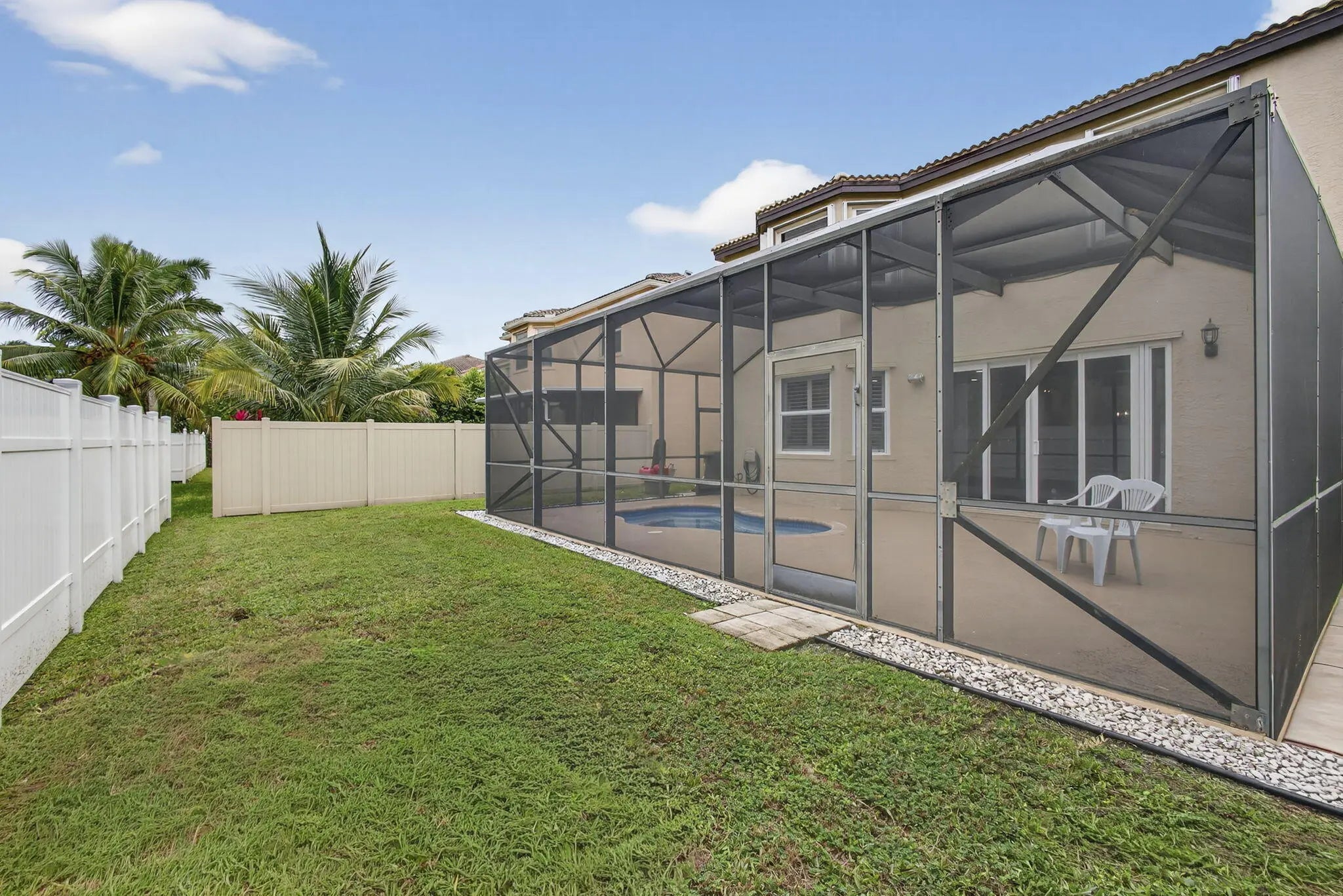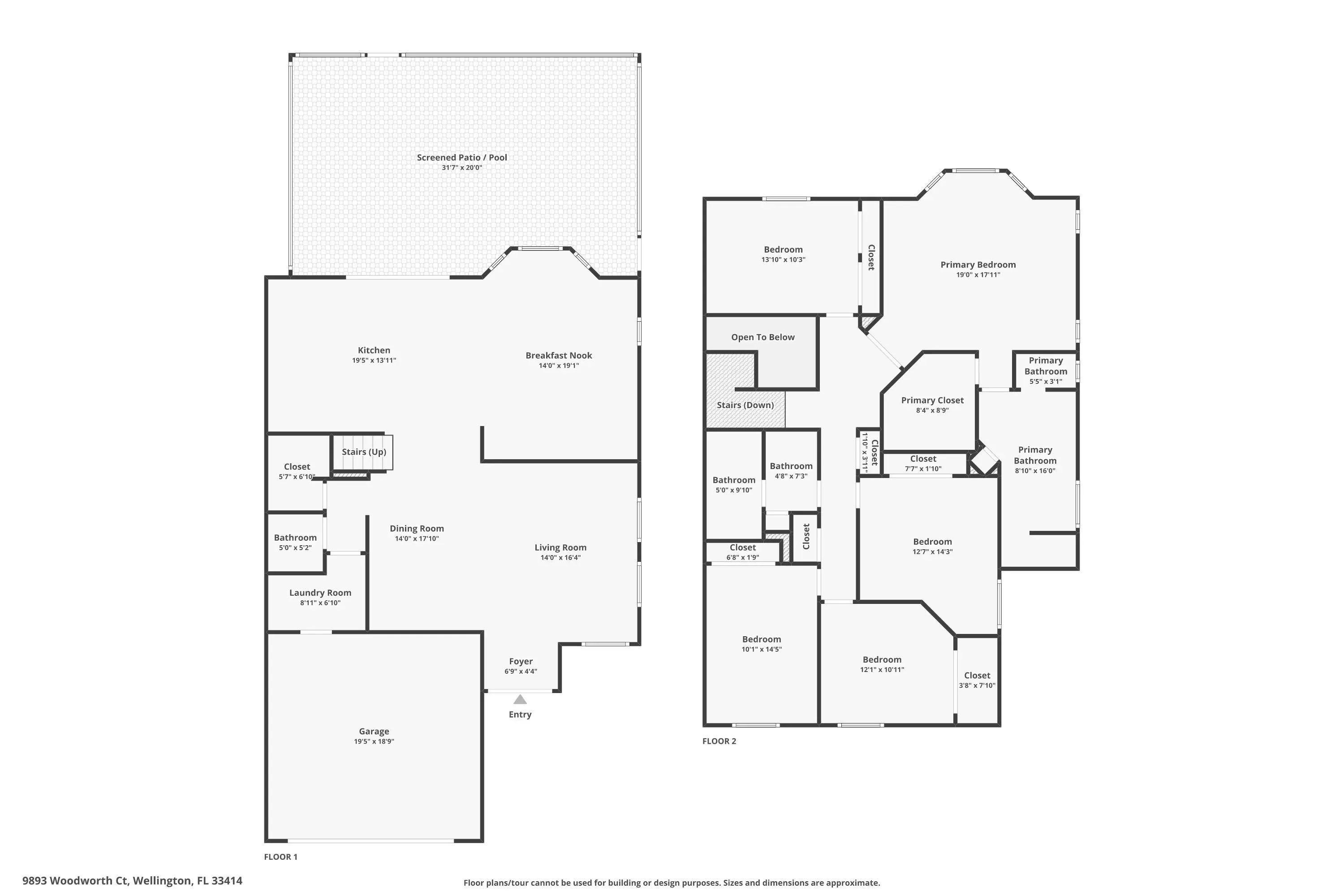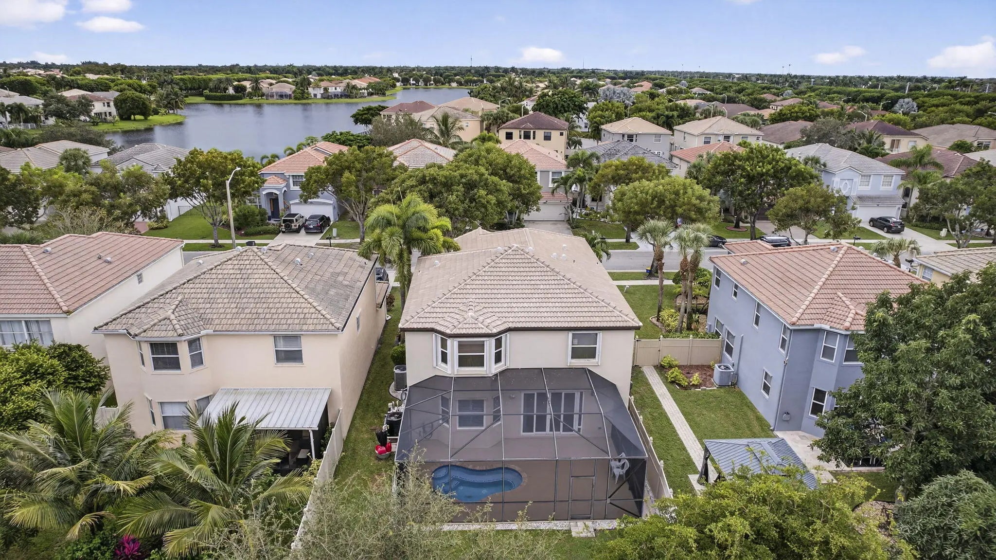 Beautifully updated 5-bedroom, 2.5-bath, two-story pool home located in the highly sought-after Olympia community of Wellington, offering exceptional value through major recent upgrades. Notable improvements include a NEW 2024 roof, hurricane impact windows and doors (2017), and a completely renovated upstairs in 2025, featuring all new flooring and a stunning remodeled primary suite and bathroom. The kitchen and downstairs living areas were tastefully updated in 2020 with custom cabinetry, modern countertops, updated appliances, and new flooring--creating a bright, open layout ideal for everyday living and entertaining. The private backyard is perfect for relaxing or hosting guests, offering a heated in-ground hot tub seating up to 10 and a screened patio for year-round enjoyment.