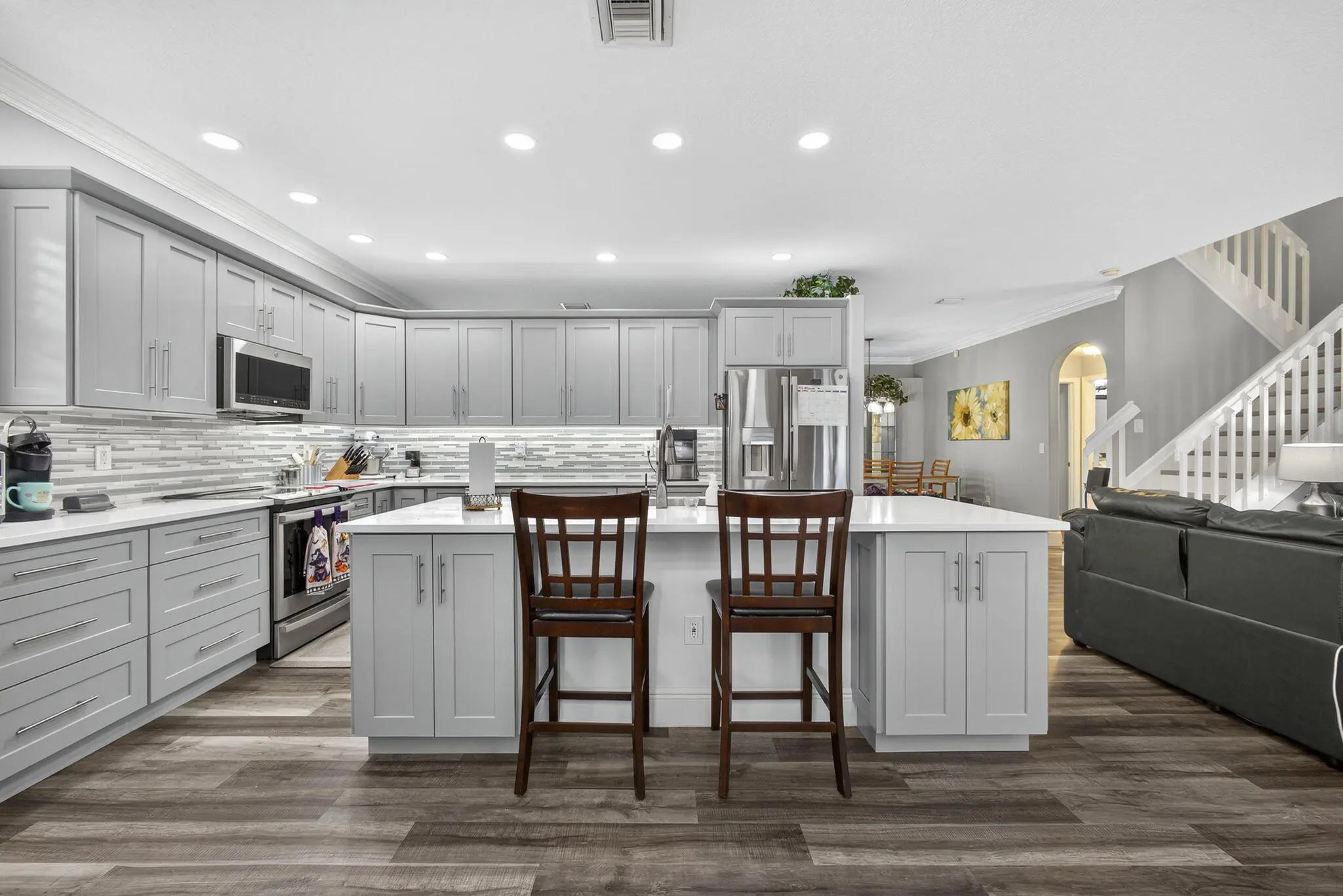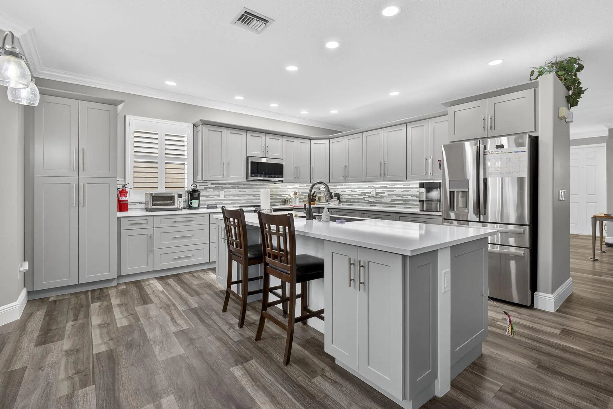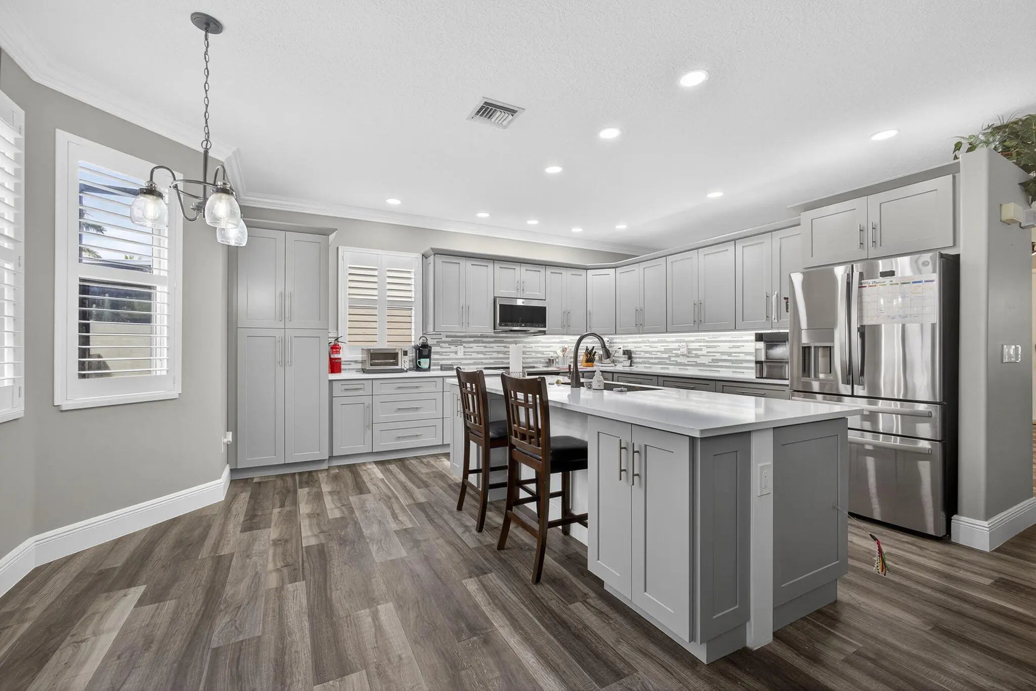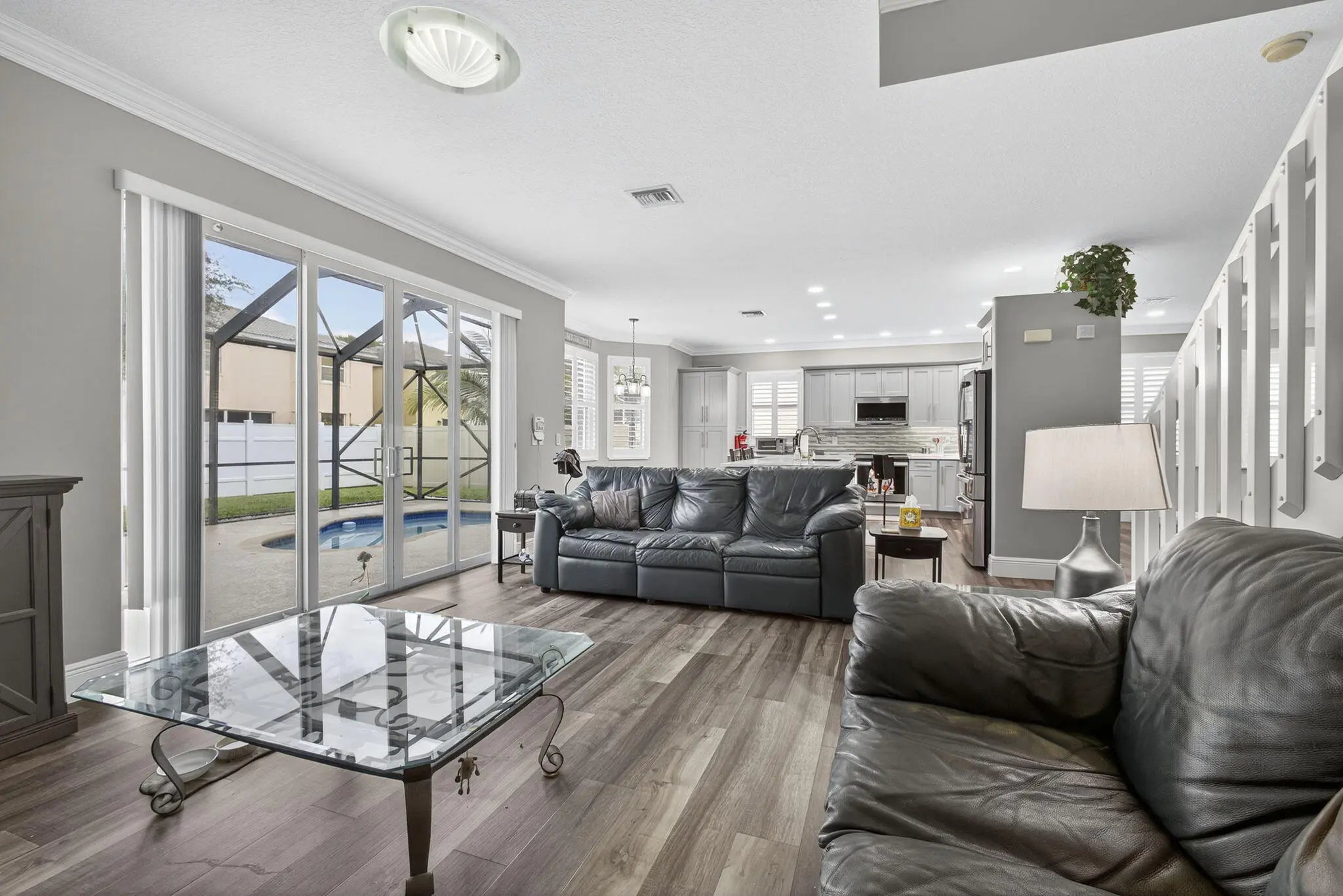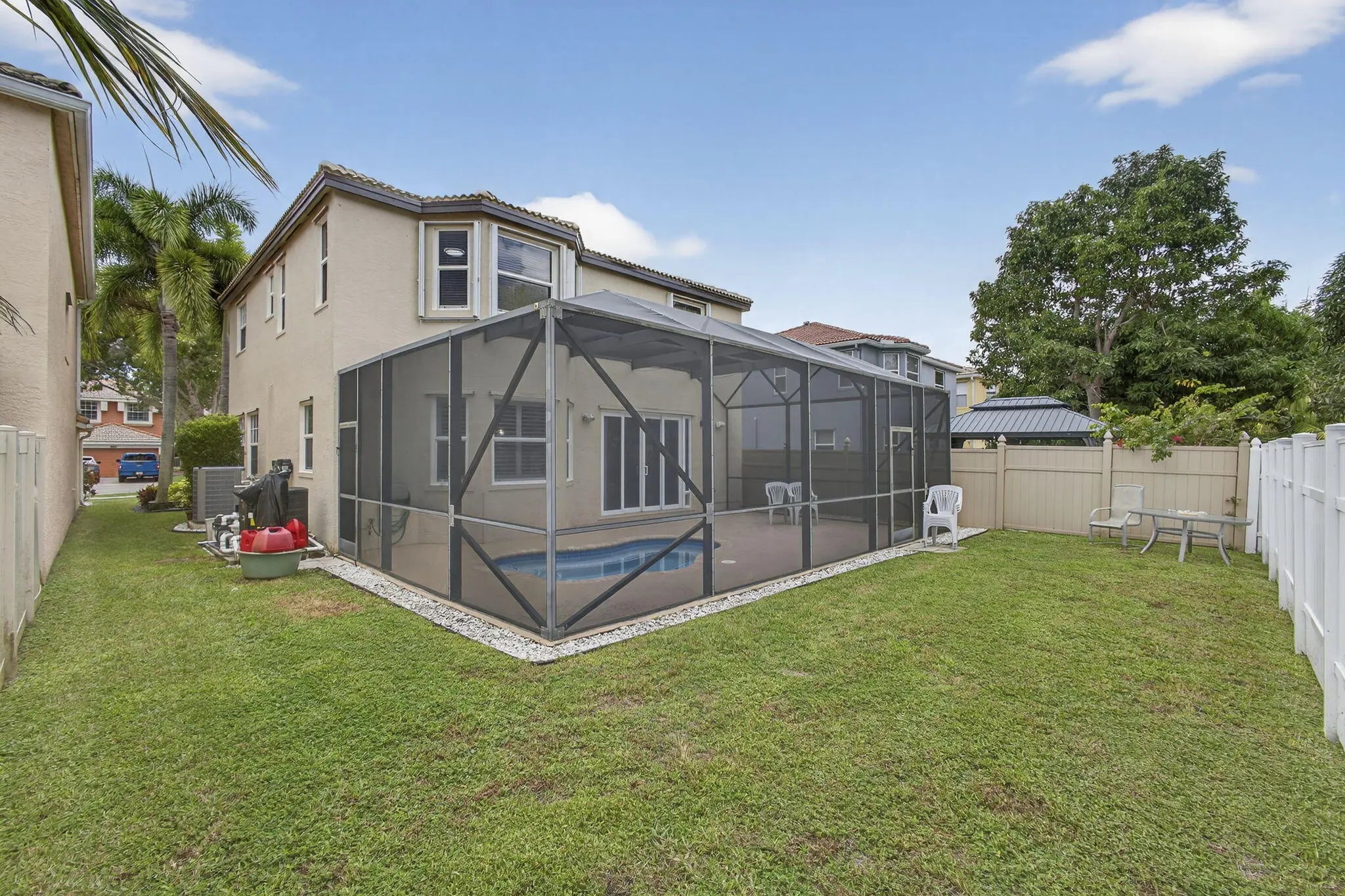 Beautifully updated 5-bedroom, 2.5-bath, two-story pool home located in the highly sought-after Olympia community of Wellington, offering exceptional value through major recent upgrades. Notable improvements include a NEW 2024 roof, hurricane impact windows and doors (2017), and a completely renovated upstairs in 2025, featuring all new flooring and a stunning remodeled primary suite and bathroom. The kitchen and downstairs living areas were tastefully updated in 2020 with custom cabinetry, modern countertops, updated appliances, and new flooring--creating a bright, open layout ideal for everyday living and entertaining. The private backyard is perfect for relaxing or hosting guests, offering a heated in-ground hot tub seating up to 10 and a screened patio for year-round enjoyment.