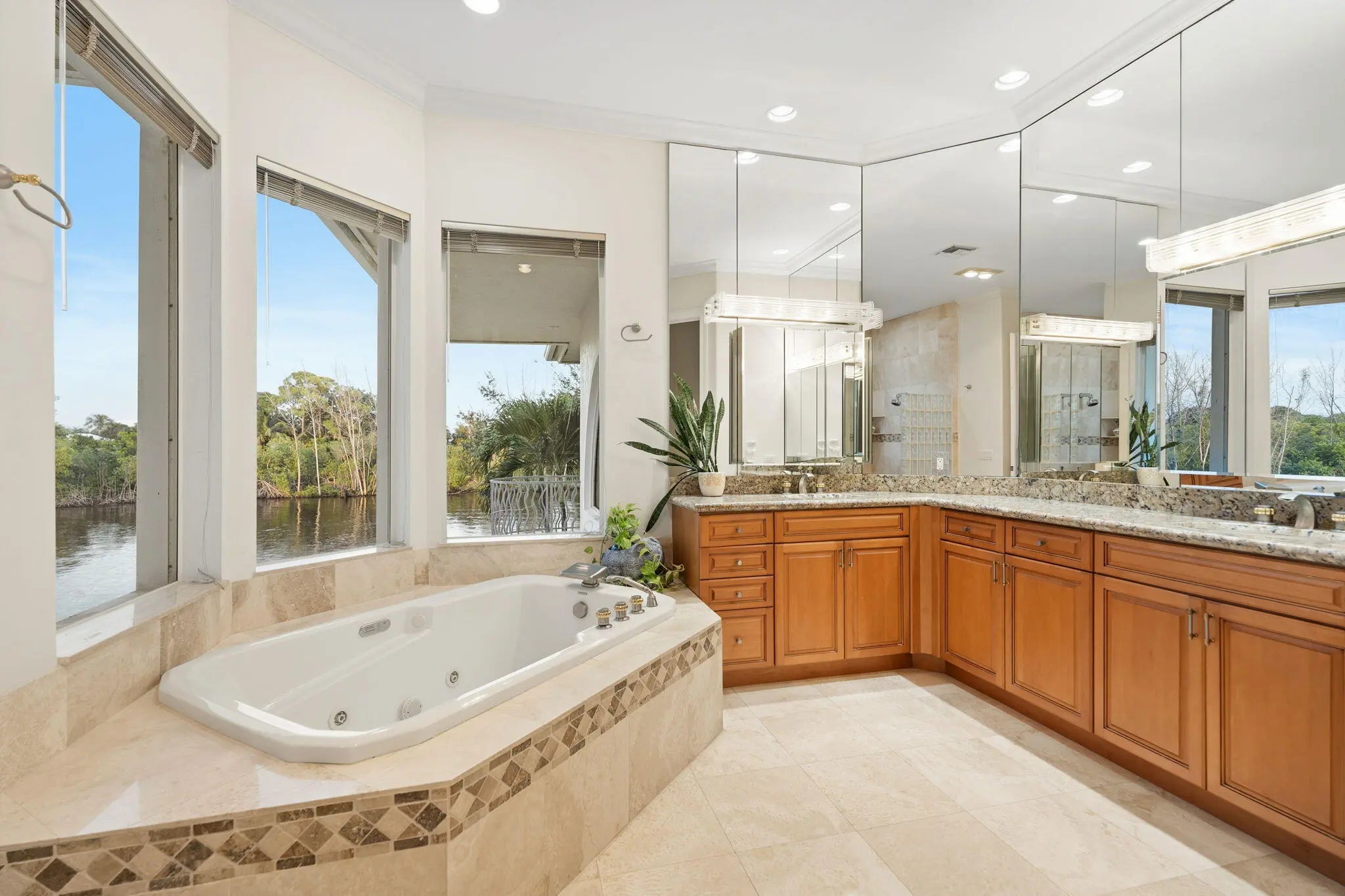 Claim your front-row seat to the shoreline in this custom estate, perfectly positioned on a rare point lot at the tip of a private peninsula along the scenic Loxahatchee River. Set within a gated enclave w/ over 400 feet of water frontage, this home offers unmatched privacy & panoramic views of the river & surrounding nature preserve. Designed for those who value timeless architecture & the beauty of natural surroundings, the residence features soaring ceilings & expansive living spaces including 4 large bedrooms, private office w/ coffered ceilings, billiard room, workout room, sunken wet bar & a spacious gourmet kitchen.The primary suite provides a serene retreat w/ coffee bar, private waterfront balcony & sweeping river views. While this original residence(see more)...