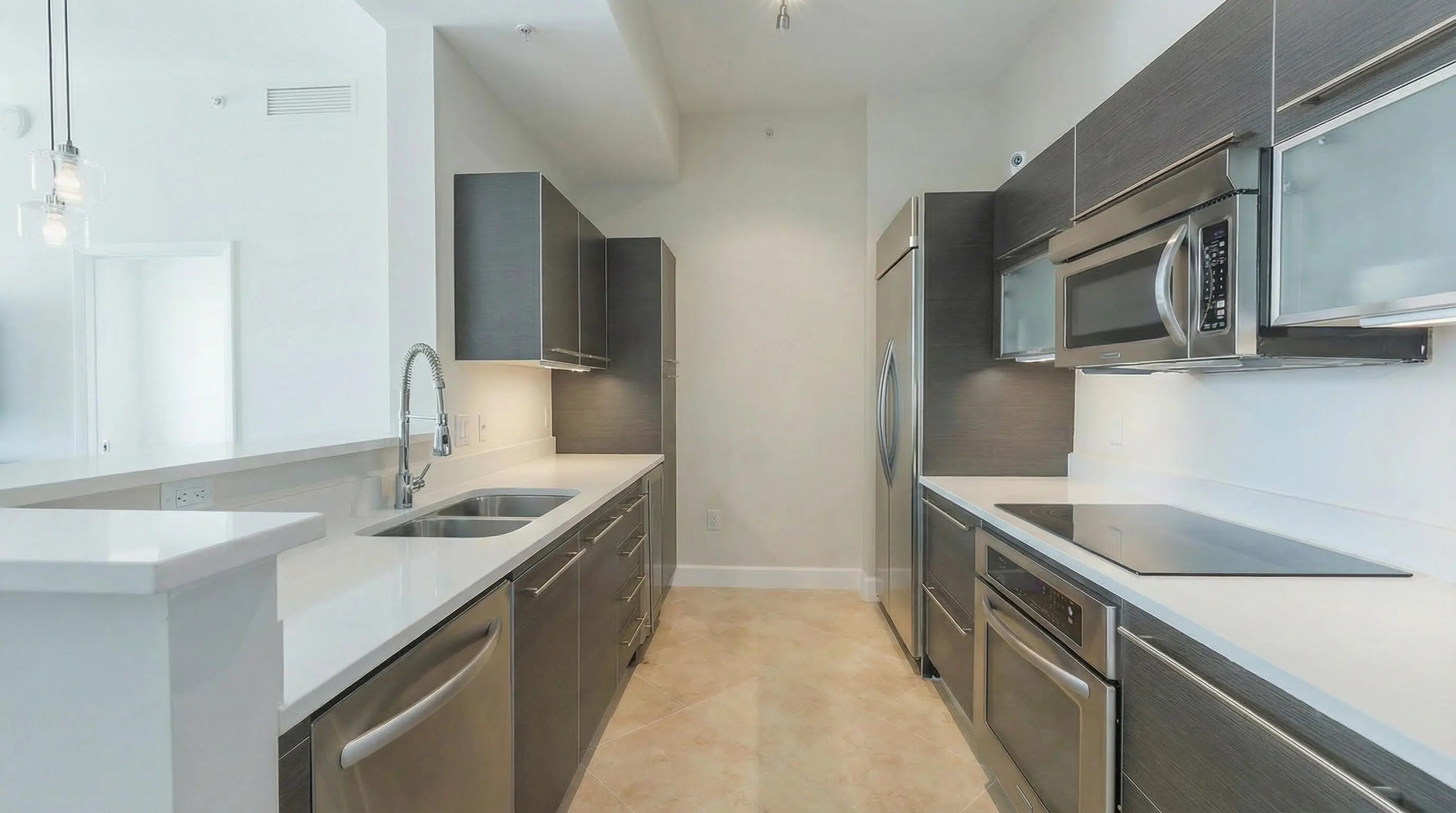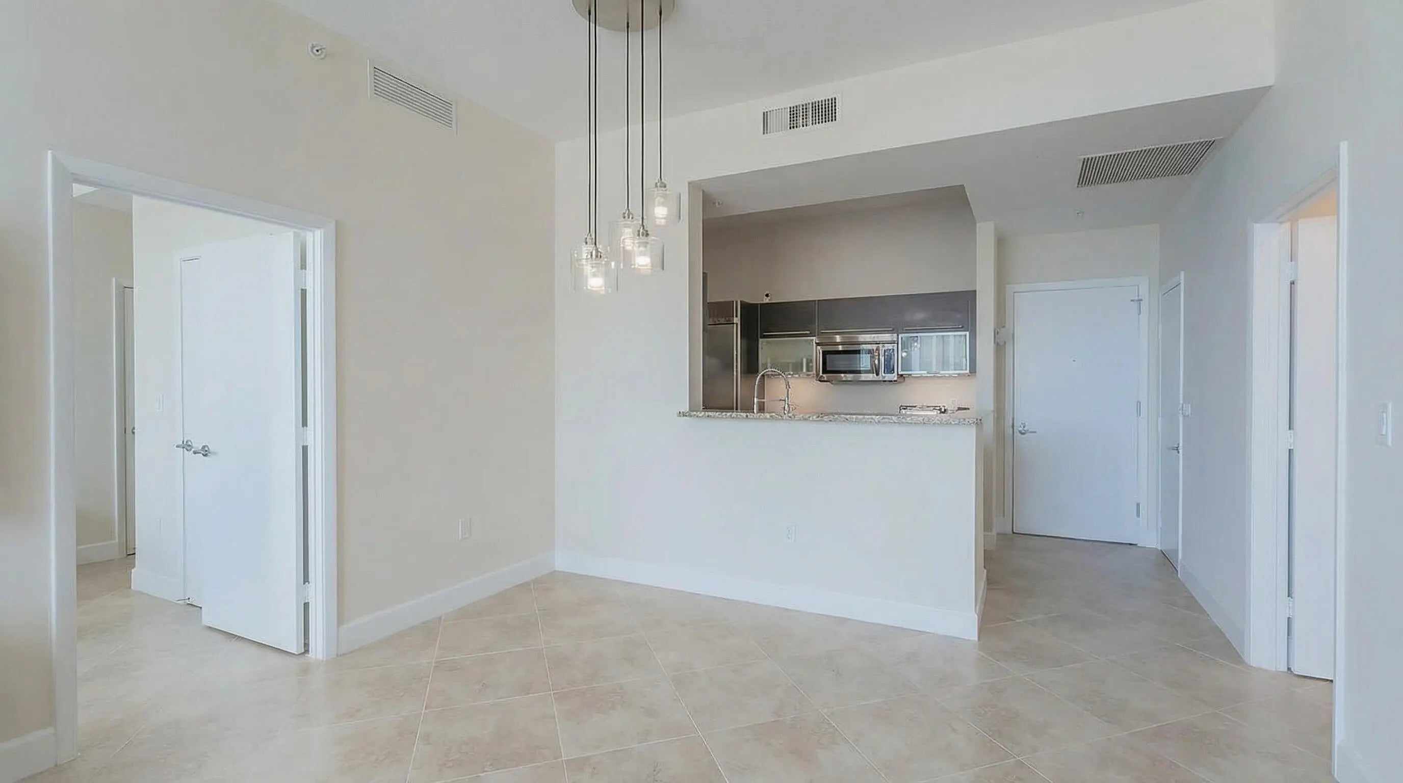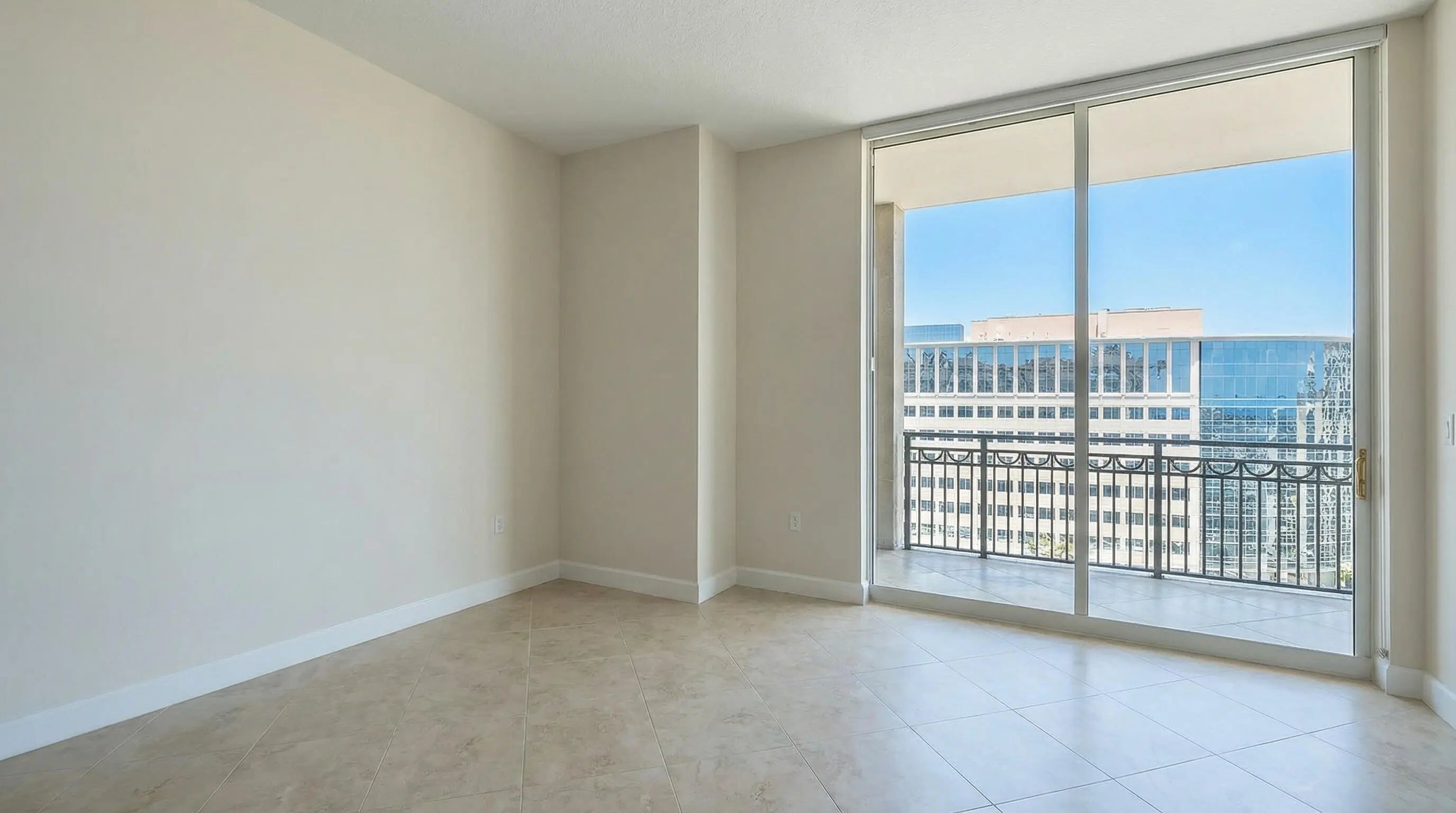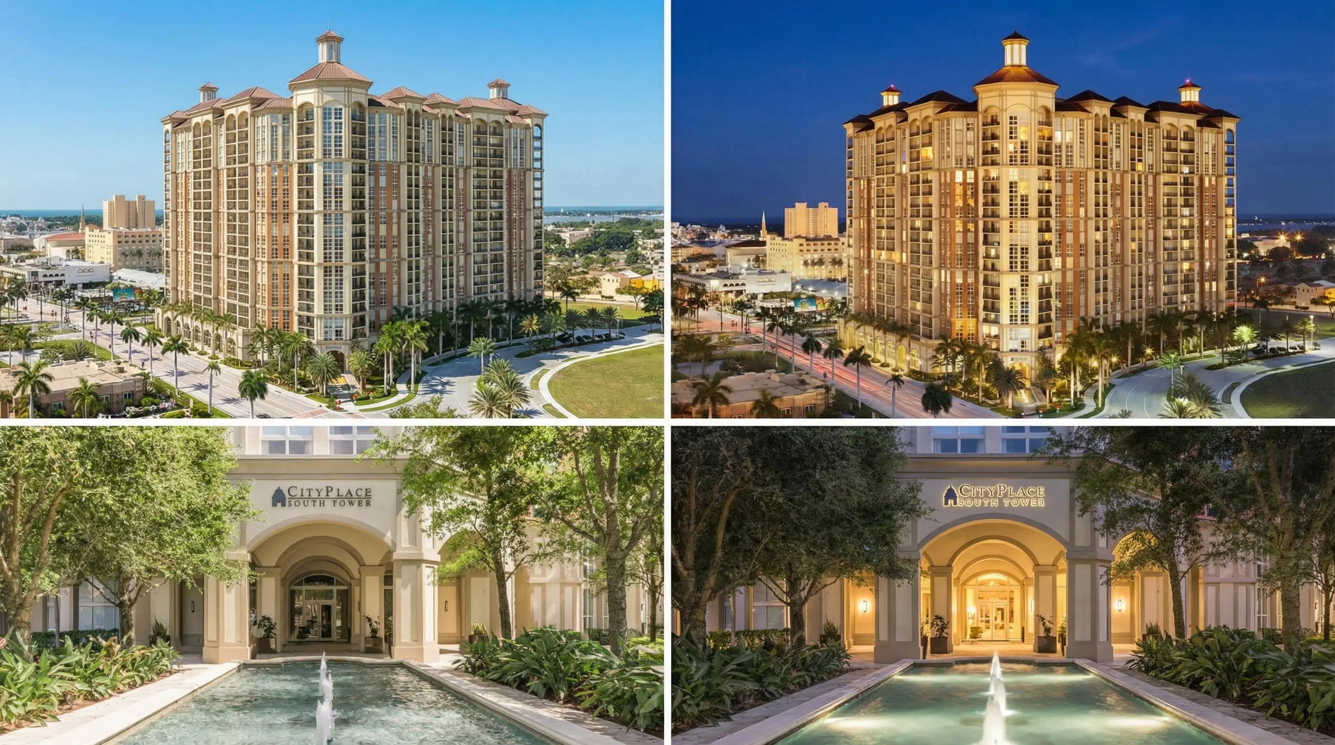 Experience luxury penthouse living in this rare Top-Floor 2BD/2BA corner residence at CityPlace South Tower. Featuring 10-ft ceilings, floor-to-ceiling impact glass, and expansive tile flooring throughout, this upper penthouse is filled with natural light and panoramic city and Intracoastal views from every room.Enjoy a modern open layout with a sleek designer kitchen, premium stainless-steel appliances, and custom cabinetry. The spacious primary suite includes balcony access, large picture windows, and a spa-style bathroom with dual vanities and frameless glass shower.