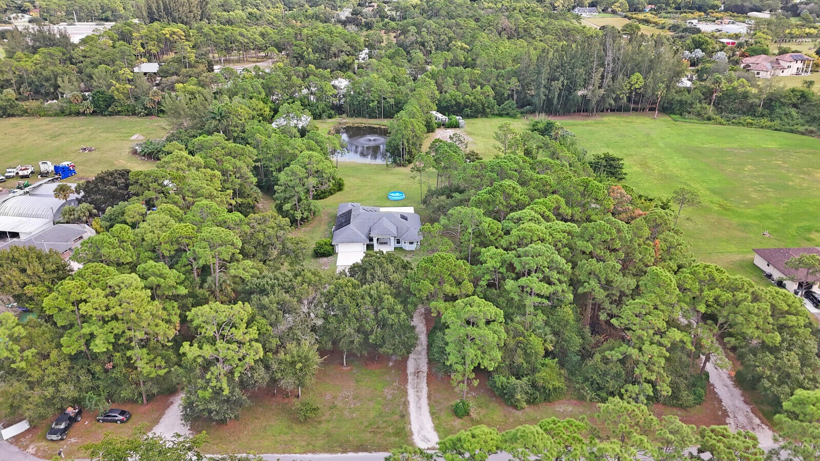 Modern elegance meets wide-open freedom, welcome to your private sanctuary!Nestled within the equestrian enclave of El Rancho Waite, this newer construction home rests on 5.44 acres of high and dry land along a paved road with NO HOA; offering the perfect balance of luxury and serenity. Every detail of this 4-bedroom, 3-bath home/PLUS A DEN was designed for both comfort and sophistication. This gem features impact windows and doors, plantation shutters, and tile flooring throughout creating a timeless aesthetic that's as durable as it is beautiful. The open, sunlit floor plan invites effortless flow from the stylish kitchen to the expansive living and dining spaces, while the split-bedroom layout provides privacy for the primary suite and ensuite with HUGE shower!At the heart of the home, the bright modern kitchen shines with upgraded stainless-steel appliances, 42-inch cabinetry complete with crown molding and quartz countertops. The design flows seamlessly making it ideal for gatherings, holidays, and everyday moments alike. Step outside and the possibilities unfold. A 60 × 40 pole barn stands ready; complete with a concrete pad, water, and 100-amp service, plus dual 50-amp utility hookups for added convenience. Whether you envision a future pool, guest house, RV hookups or the ultimate equestrian setup, this property offers the freedom to create it all. The possibilities are truly endless! The thoughtful upgrades continue with a reverse osmosis water system, a screened-in lanai, and a private pond equipped with a soothing fountain that turns every evening into a moment of calm! A new two-tier 16 kW solar system keeps energy costs low while adding an eco-conscious touch of innovation. Property has water and electric hookups on both north and south sides of the property along with private access service roads/driveways on both sides. This Loxahatchee gem has it all and is nestled just minutes from the vibrant City of Westlake! You'll enjoy easy access to top-rated schools, dining, shopping and fitness without ever sacrificing the peace and privacy of acreage living.