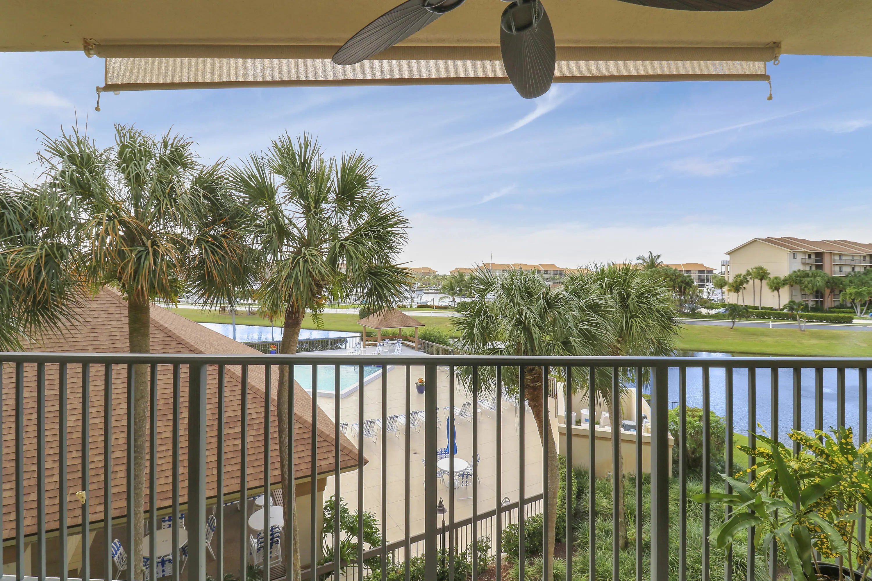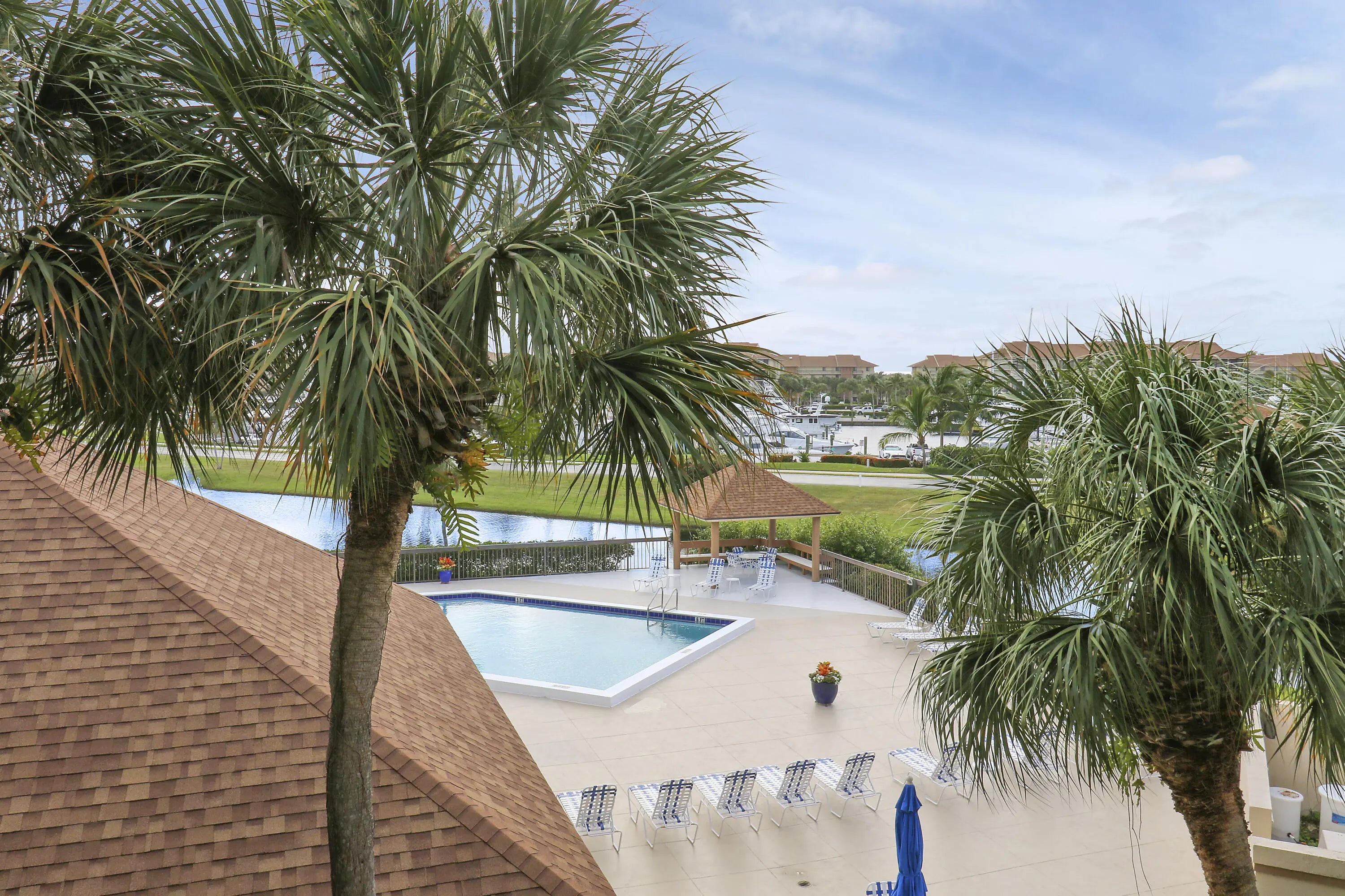 Come see this RARELY available CORNER UNIT condo in the Marina at the Bluffs! This 2 bedroom, 2 bathroom condo has AMAZING VIEWS of the pool, lake AND Marina. Hurricane impact windows and sliding glass doors. Recent updates include: luxury vinyl flooring in the main living areas & bedrooms and A/C replaced in 2021. Roof replaced in 2022. Condo fee includes exterior insurance, cable TV, Internet, water, sewer, and common areas. The extended outdoor balcony is an ideal spot to enjoy your morning coffee and beautiful sunsets in the evening! The Marina at the Bluffs offers residents 4 heated pools, tennis courts, and bocce ball. The Marina at the Bluffs is located less than a mile from some of the best beaches in South Florida, great restaurants, shopping, world-class golf courses and only 30
