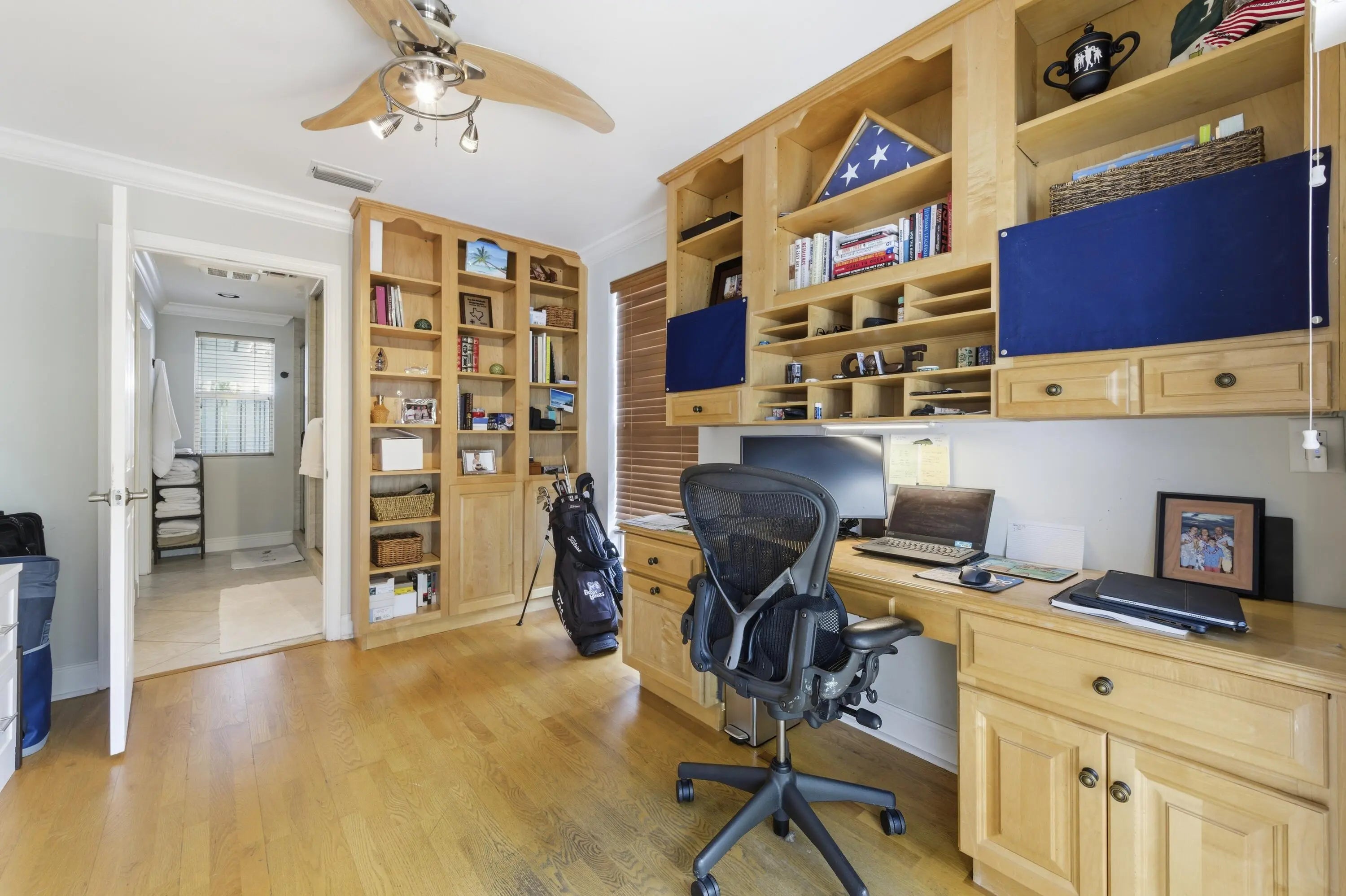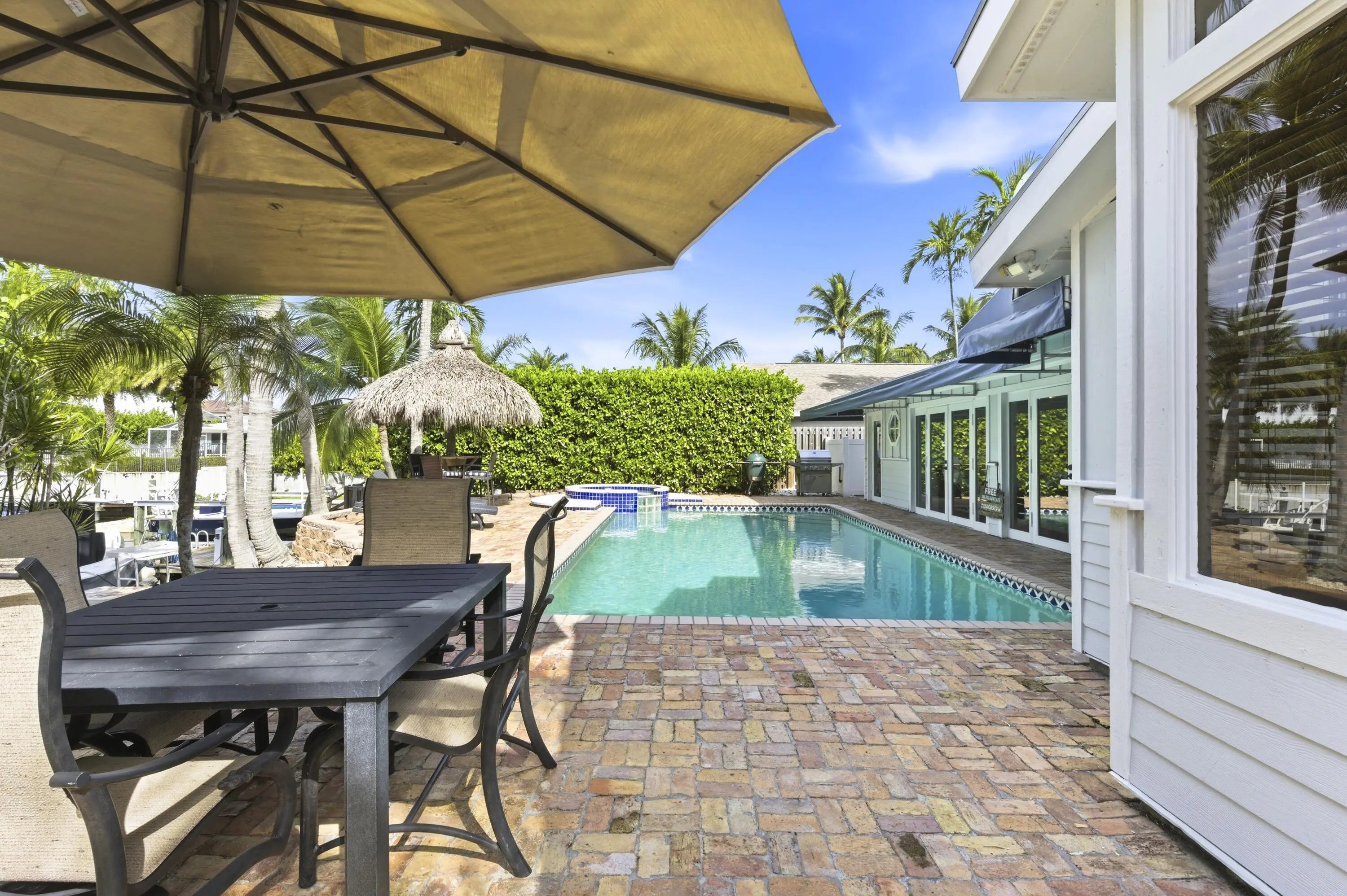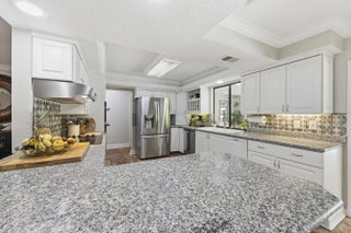 Located in the desirable Village of North Palm Beach, this waterfront residence blends coastal appeal with thoughtful design. The property features partial impact-rated windows, a metal roof, and a private dock with fish-cleaning station, offering direct canal access with fixed bridges leading to the Intracoastal Waterway and Atlantic Ocean. Inside, the home welcomes you with engineered hardwood flooring, recessed lighting, and crown molding throughout the main living areas. The open dining area connects to a well-appointed kitchen featuring granite countertops, a full tile backsplash, stainless-steel appliances. A breakfast nook and enclosed Florida room provide inviting spaces for dining or relaxation, complemented by a built-in cabinetry and reach in pantry.