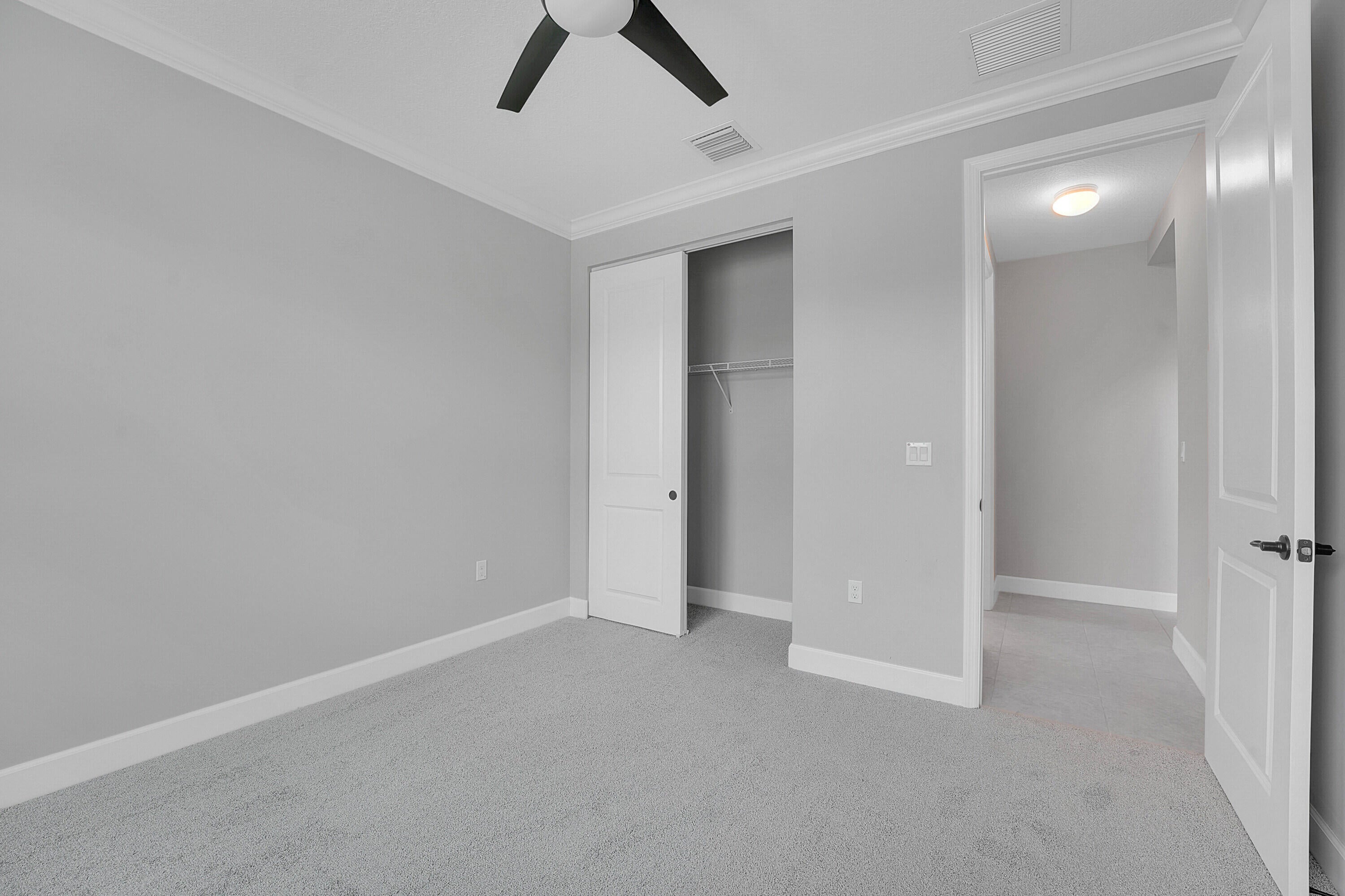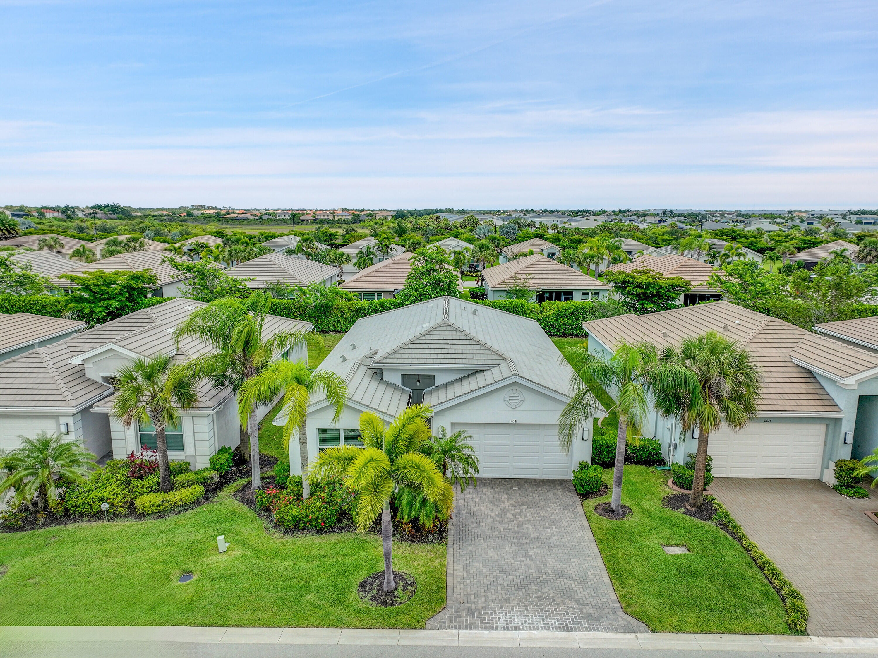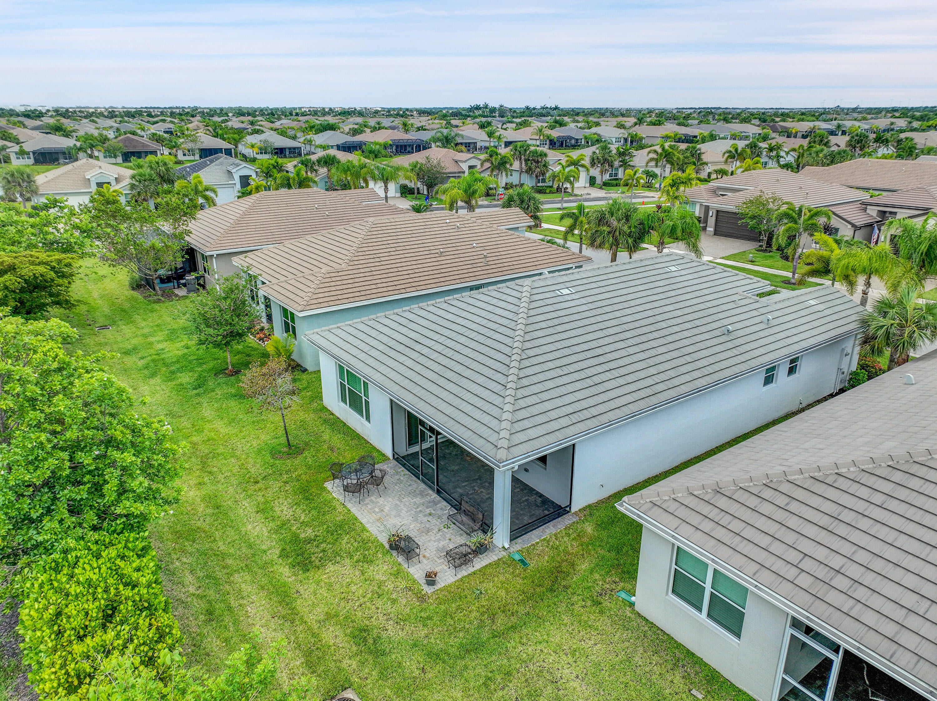Move-In Ready Heron Model in Valencia Cay! Live the resort lifestyle in this beautifully maintained 2-bedroom + den, 2-bath Heron model located in the sought-after 55+ community of Valencia Cay. Designed for comfort and style, this home blends luxury finishes with low maintenance living, featuring new bedroom carpet, tile flooring in main areas, and crown molding throughout. The gourmet kitchen shines with upgraded stainless steel appliances and a natural gas stove, opening to a bright living area with plantation shutters, tray ceiling, and elegant details that make every day feel special. The primary suite includes pocket doors for privacy and a serene layout for ultimate relaxation. Unlike many homes in Valencia Cay, this one does not back up to a lake, offering rare privacy and peaceful surroundings. Enjoy quiet mornings or breezy evenings on the extended screened patio and lanai, no noise echoing from the lake, just tranquility. The phantom screen front door invites in the fresh air for perfect cross ventilation. Additional perks include: Impact windows, Tankless water heater, Sealed garage floor, Ceiling fans and window treatments included.Perfectly located near I-95, shopping, dining, medical centers, and Tradition, with the Valencia Cay clubhouse just minutes awayoffering resort-style pools, pickleball, fitness center, and endless activities. Turnkey and move-in ready everything's done for you. Act now, and you can still close before the end of the year to secure your Florida Homestead Exemption! Come see it today and experience the quiet comfort, privacy, and effortless living that make this Heron model a standout!