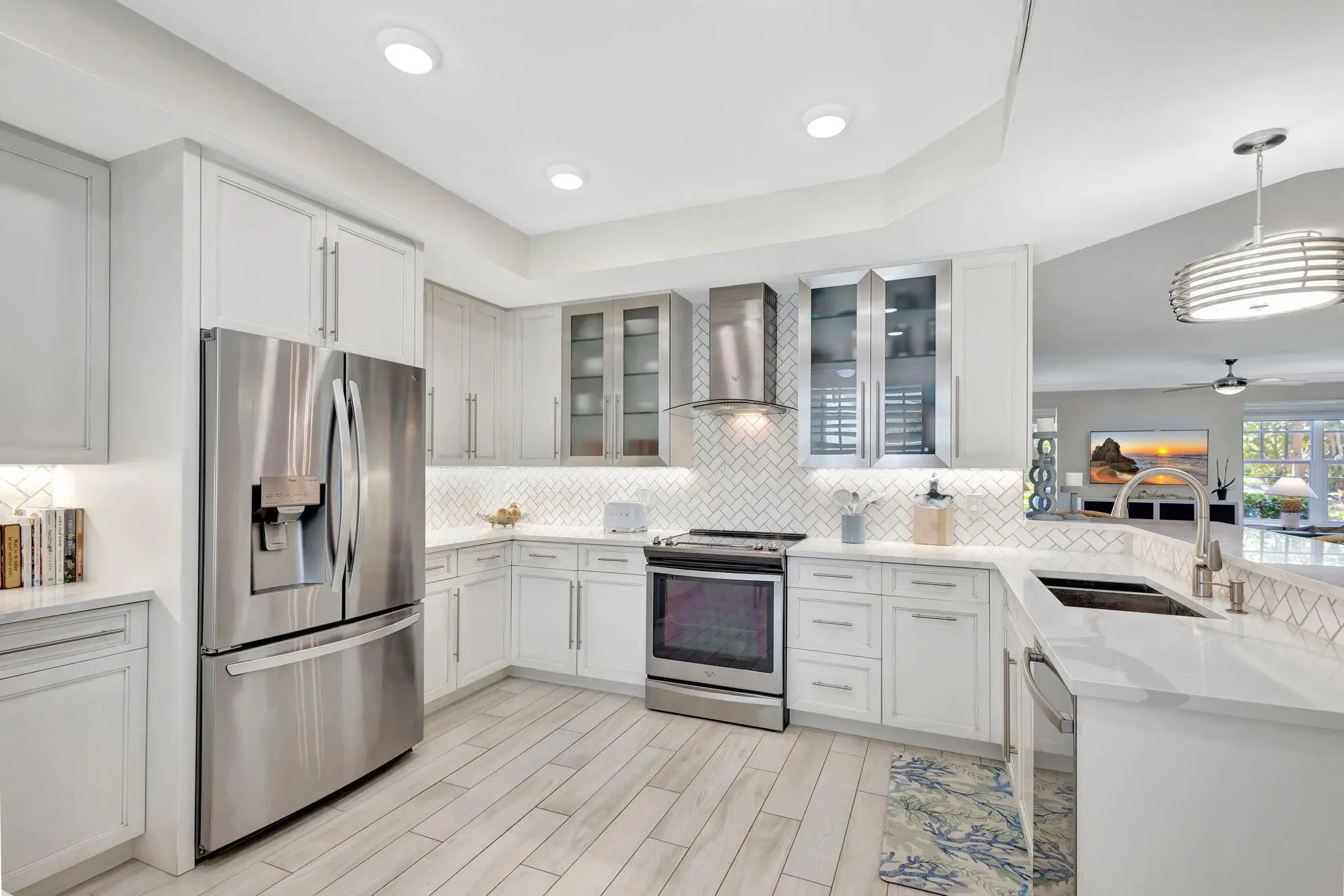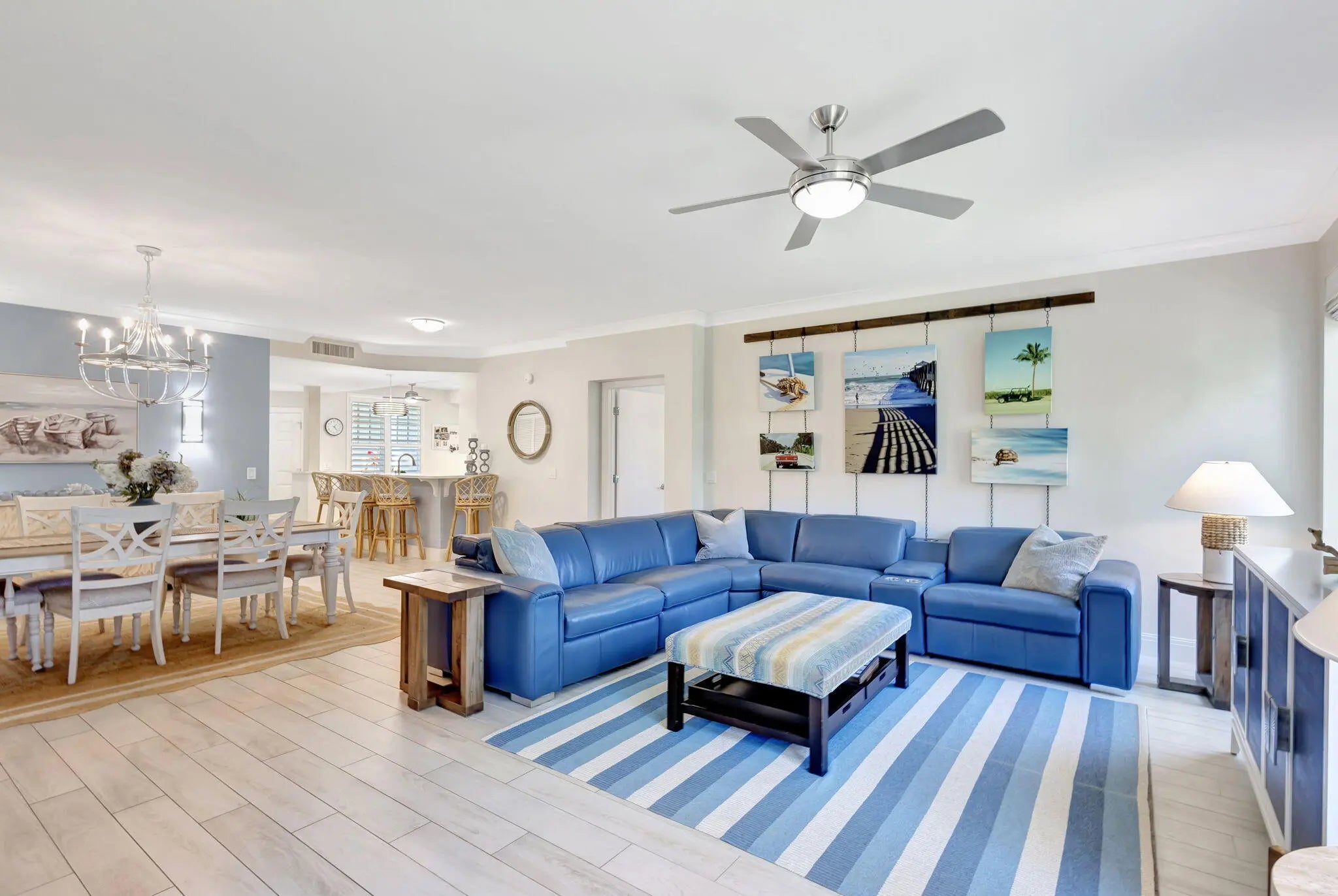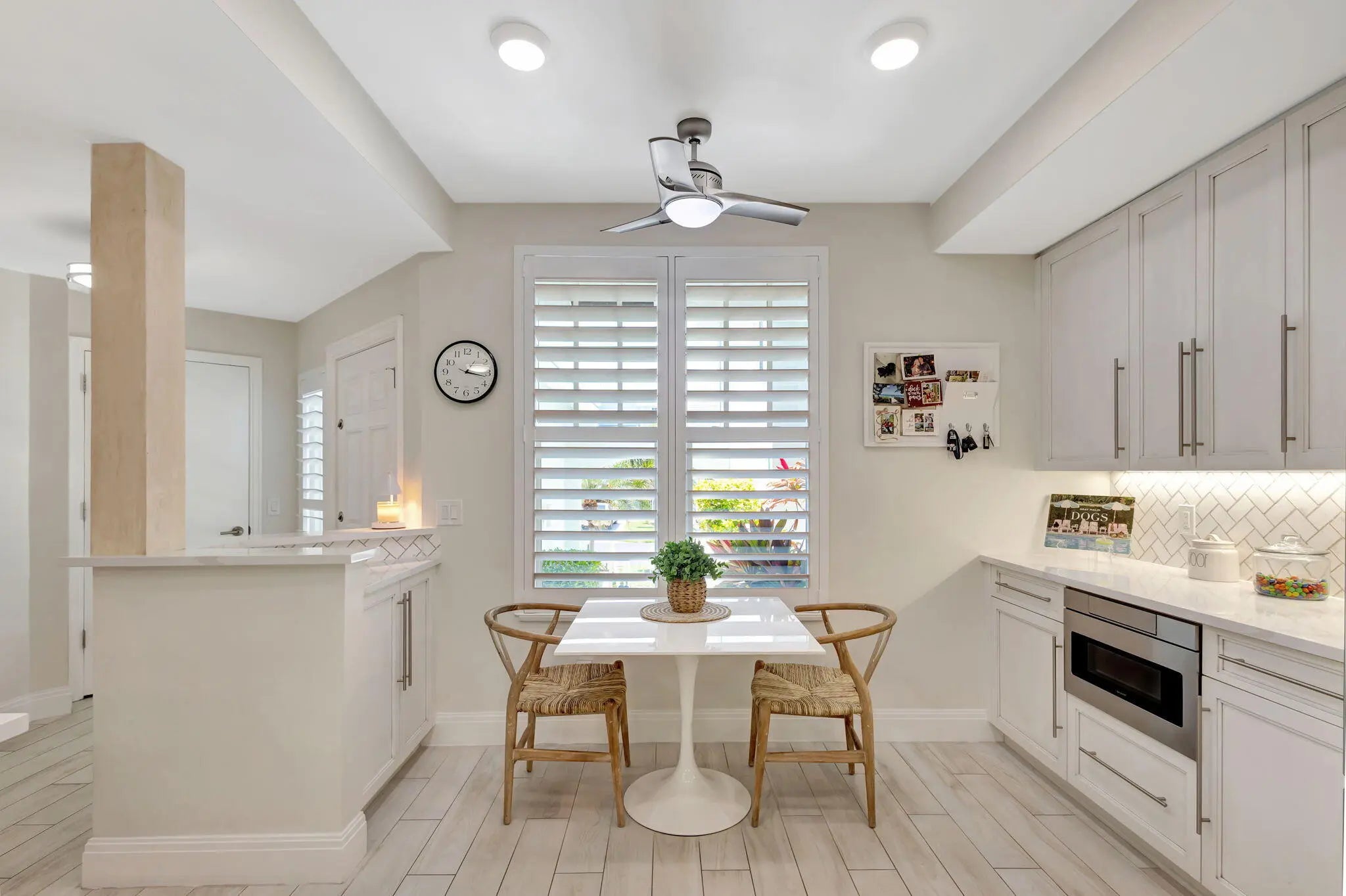 Discover paradise in this rarely available 3-bedroom, 3-bathroom beachside condo, renovated in Winter 2024 and just steps from Jupiter's pristine beach. Located in the dog-friendly community of Sea Colony, this single-story condo offers 1,822 square feet of living space--NO STAIRS! It features a 1-car garage and two screened lanais, perfect for relaxing to the sound of the waves while overlooking lush tropical landscaping. Bright and airy, the condo boasts high-end finishes, including a marble backsplash, quartz countertops, and tile throughout.Upon entering, you're welcomed into a spacious kitchen with counter seating, seamlessly flowing into the open dining and living area, which extends to a screened-in lanai.The split-bedroom floor plan ensures privacy: