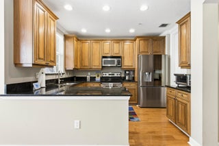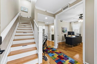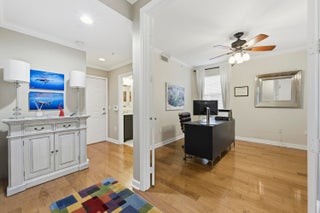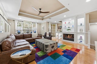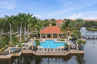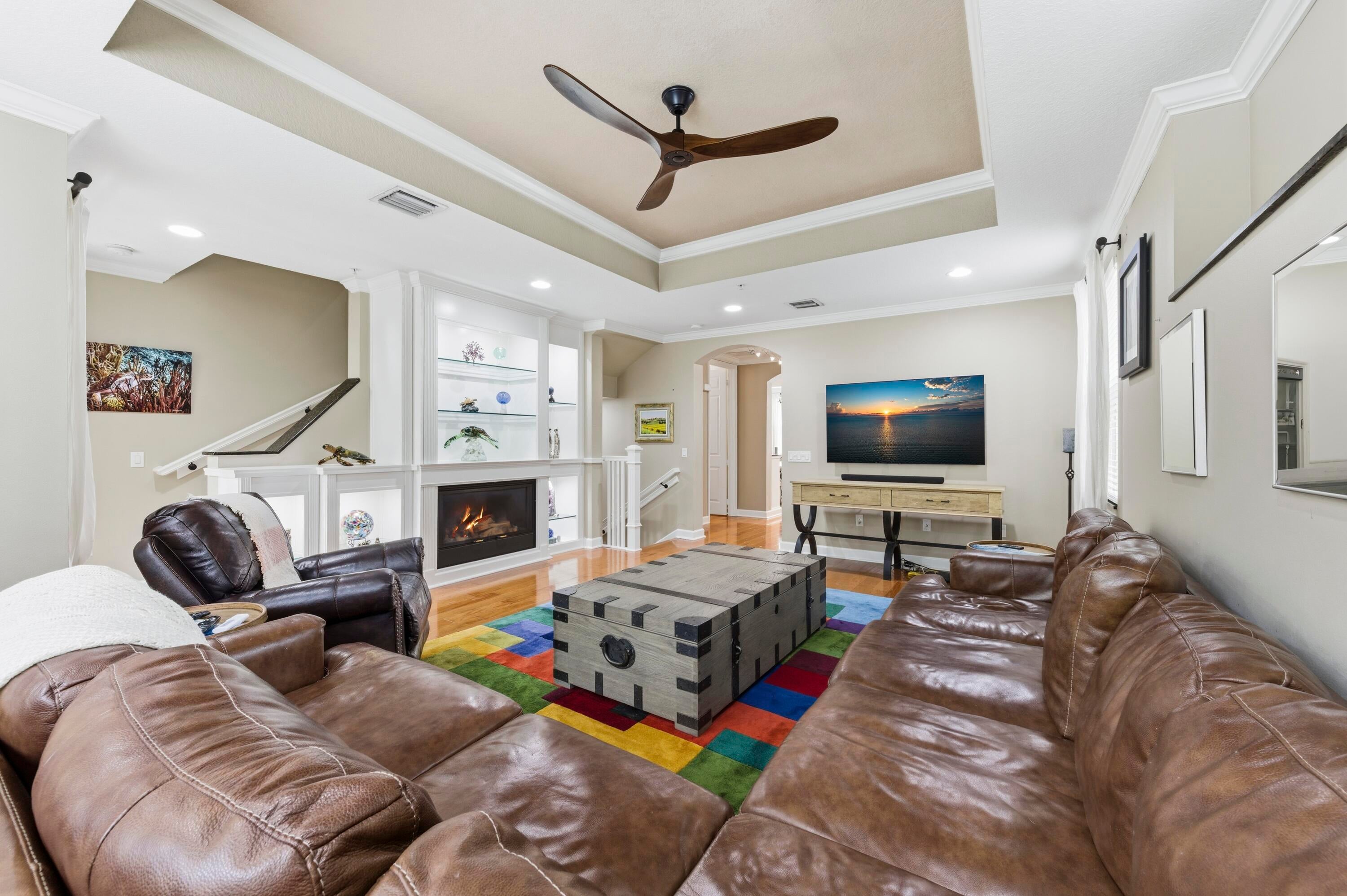 This beautifully updated 3-story townhouse offers a desirable end-unit location with exceptional privacy and serene views of a lush, landscaped pedestrian courtyard. Featuring 3 bedrooms, a den/office (which can easily serve as a 4th bedroom with an en-suite bath), and 3.5 bathrooms, this Barcelona model also includes a spacious 2-car garage. All main living areas are located on the second floor, where rich hardwood flooring and an open layout create a warm and inviting atmosphere. The living room features a built-in electric fireplace with custom cabinetry, while a built-in bar seamlessly connects the living, dining, and kitchen space ideal for entertaining and everyday comfort.The kitchen offers a walk in pantry, and a covered balcony.The third floor is dedicated to the home's private quarters, featuring all bedrooms and full bathrooms, providing separation and convenience for guests. Residents enjoy a gated community setting with access to a pool, fitness center, clubhouse, and playgroundoffering the perfect balance of comfort, style, and convenience in a prime location.
