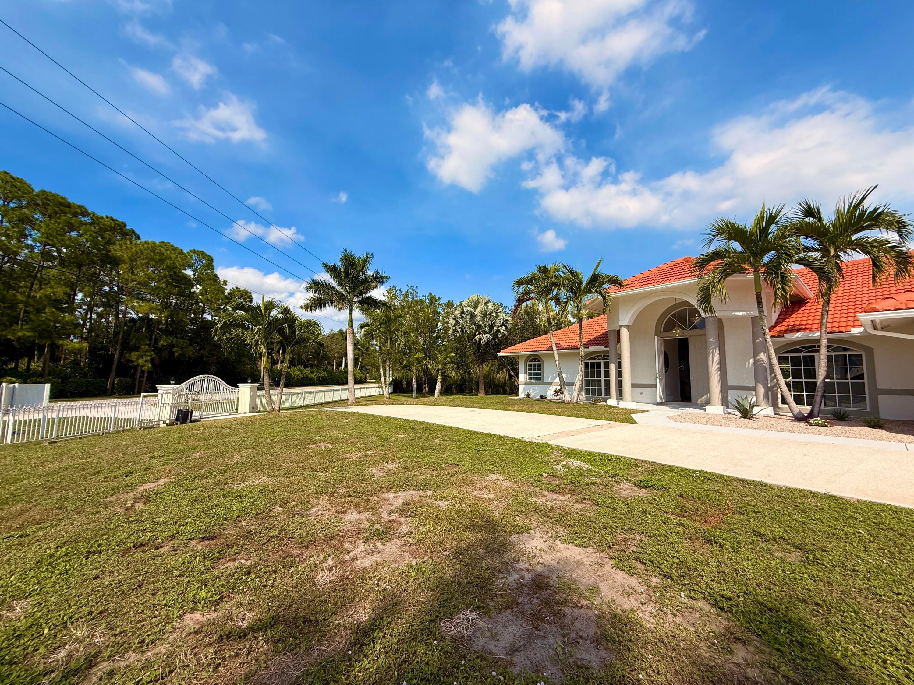 Look !!! Very Rare Find !!! Location ** Location ** Location **. 1.39 acres !! NO HOA !! 4 BEDROOM 3 BATHROOM 2 CAR GARAGE SCREENED POOL HOME IN LOXAHATCHEE !!!! DISCOVER modern country living at its best in this beautifully Renovated 4 bedroom 3 bathroom home on 1.39 acres- Fully fenced and exotic mature fruiting fruit trees in Desirable Loxahatchee Florida !!! Everything is New- Designer kitchen with huge quartz Island, updated Bathrooms, Luxury imported Italian 48x48 tile flooring, new light fixtures, Newer AC, New water system, New Paint IN/OUT **. ENJOY A BRIGHT OPEN FLOOR PLAN, SPACIOUS LIVING AREAS, AND A MODERN KITCHEN FEATURING SHAKER CABINETRY, QUARTZ COUNTERS, AND ALL NEW STAINLESS STEEL APPLIANCES **.CORNER LOT ** Step outside to your private gated property with endless space for Boats, RVs, work Trucks, Horses, or a Future Guest House or Workshop **. Rare find on a Paved Road with great access- yet Tucked away for Peace and Privacy **. No Hoa - BRING YOUR TOYS, ANIMALS, AND LIFESTYLE **. Move-in ready, beautifully finished, and Priced to sell . Dont Miss this renovated acreage home- NOTHING ELSE LIKE IT ON THE MARKET ***. with these upgrades !!! Circular driveway- can hold up to 12 cars !!! Minutes to shopping, schools, gas, NEW Westlake ER, Beaches !!! Schedule your private showing today for 17477 69th street N, Loxahatchee Florida 33470. !!! Perfect for All !!! Large screened Patio under roof -freshly painted - ideal for gatherings, enjoying the beautiful scenery ***. NO HOA *** CORNER LOT *** 1.39 acres ***.