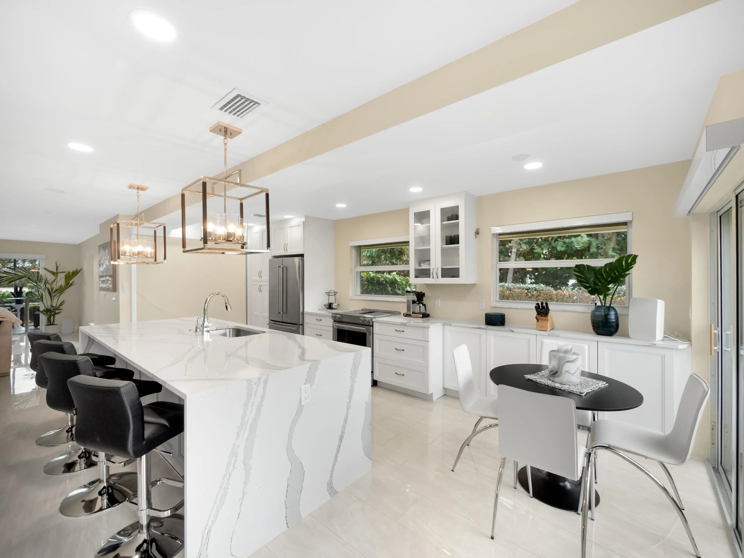 OCEAN View!! Gorgeous, completely renovated 2 Bed/2 Bath/Garage with stunning views of the ocean and Juno Pier! The best location, RARELY available, in the popular seaside community of Beachcomber. Completely renovated, move-in ready with an abundance of upgrades! NEW windows & doors! NEW Large open kitchen w/ quartz countertops. Bright open, corner unit floor plan surrounded by windows, sliding doors & natural light. NEW automated screens to extend living space. NEW Master Bath w/ quartz countertops & walk-in closet w/ NEW custom closet shelving. NEW A/C, NEW tankless hot water heater. Relax on screened patio while listening to the waves crashing on the beach! Prime location walking distance to beaches, restaurants & grocery store. One of kind in the Jupiter Beach area & a must see!