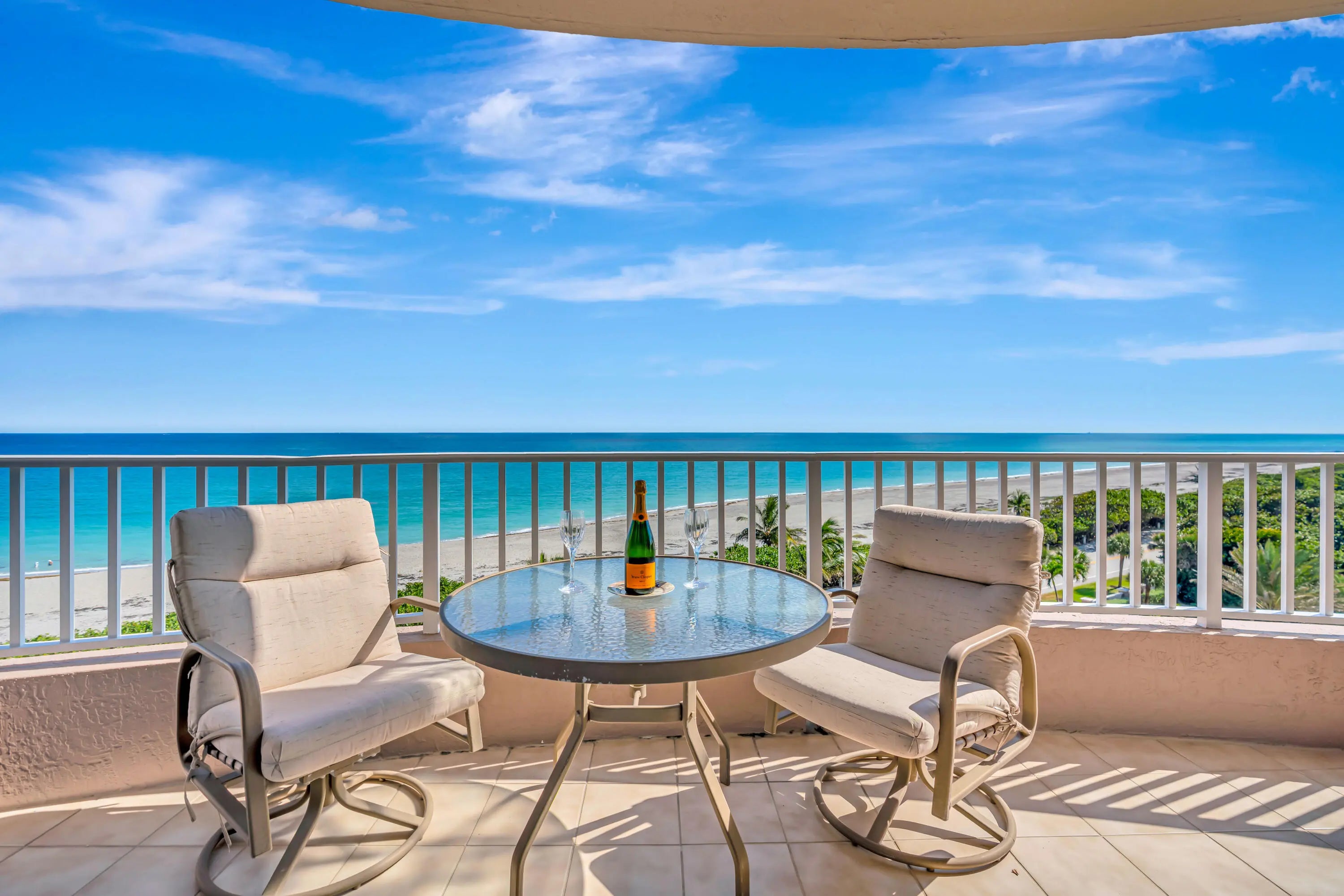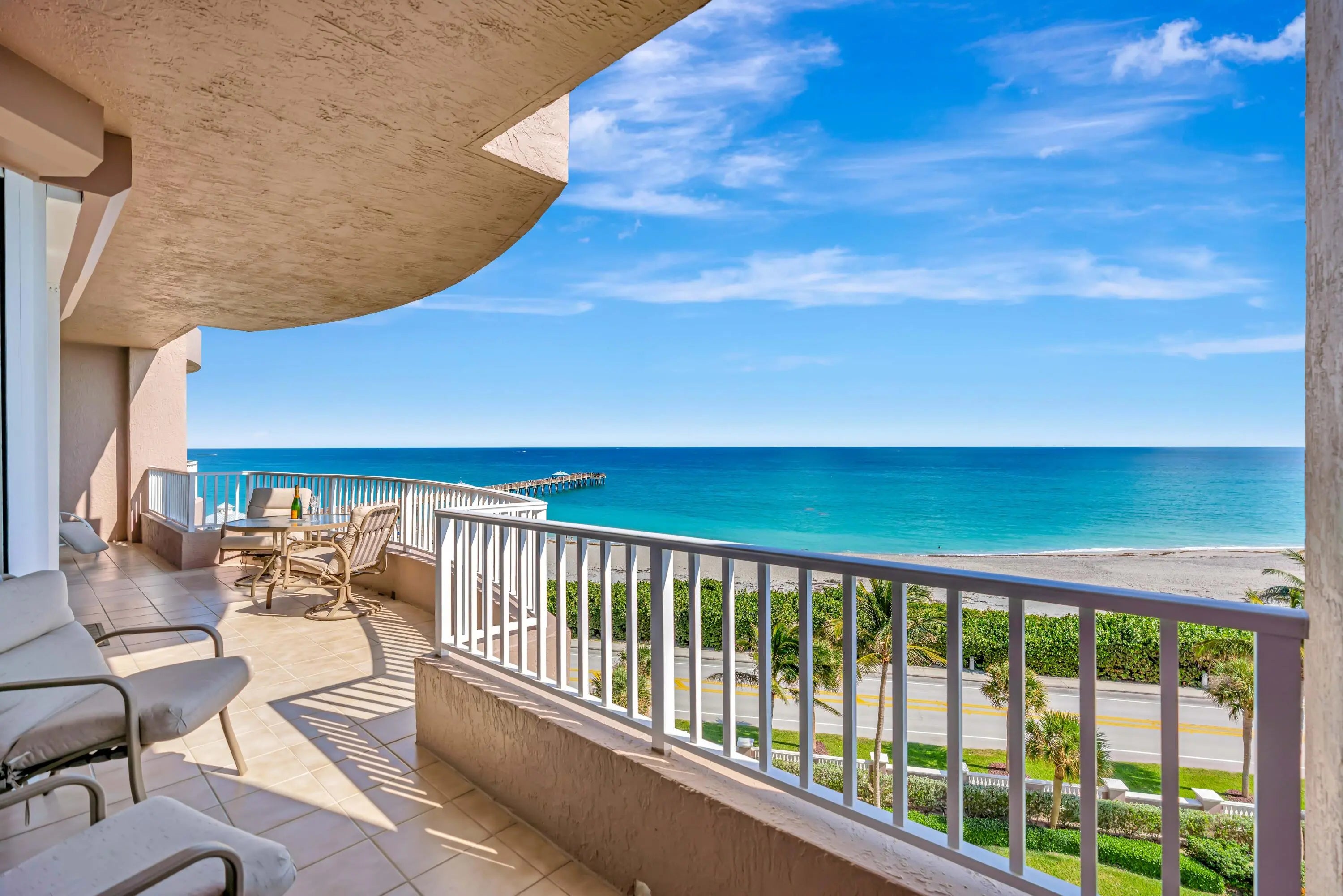 Rarely available direct Oceanfront Caspian model in the finest concierge building in Juno Beach! This condo is perfectly situated on the 6th floor overlooking the Juno Beach pier with incredible views. The unit lives like a home with an expansive floor plan. Personal elevator to private solo lobby of the unit. Lavish 575 sq. ft. total balconies..east and west side of the condo for you and your guests to experience the glorious sunrise and sunsets. Freshly painted for move in. New W/Dryer, S/S Refrigerator/ovens within 4 yrs new.Amenities:Two underground deeded parking spots, tennis, pickleball, bocce, lap pool, locker rooms w/saunas, hot tub, library, fitness center, theatre, community rooms, concierge, full time security, gated. Most luxury condo on the Juno Beach market.