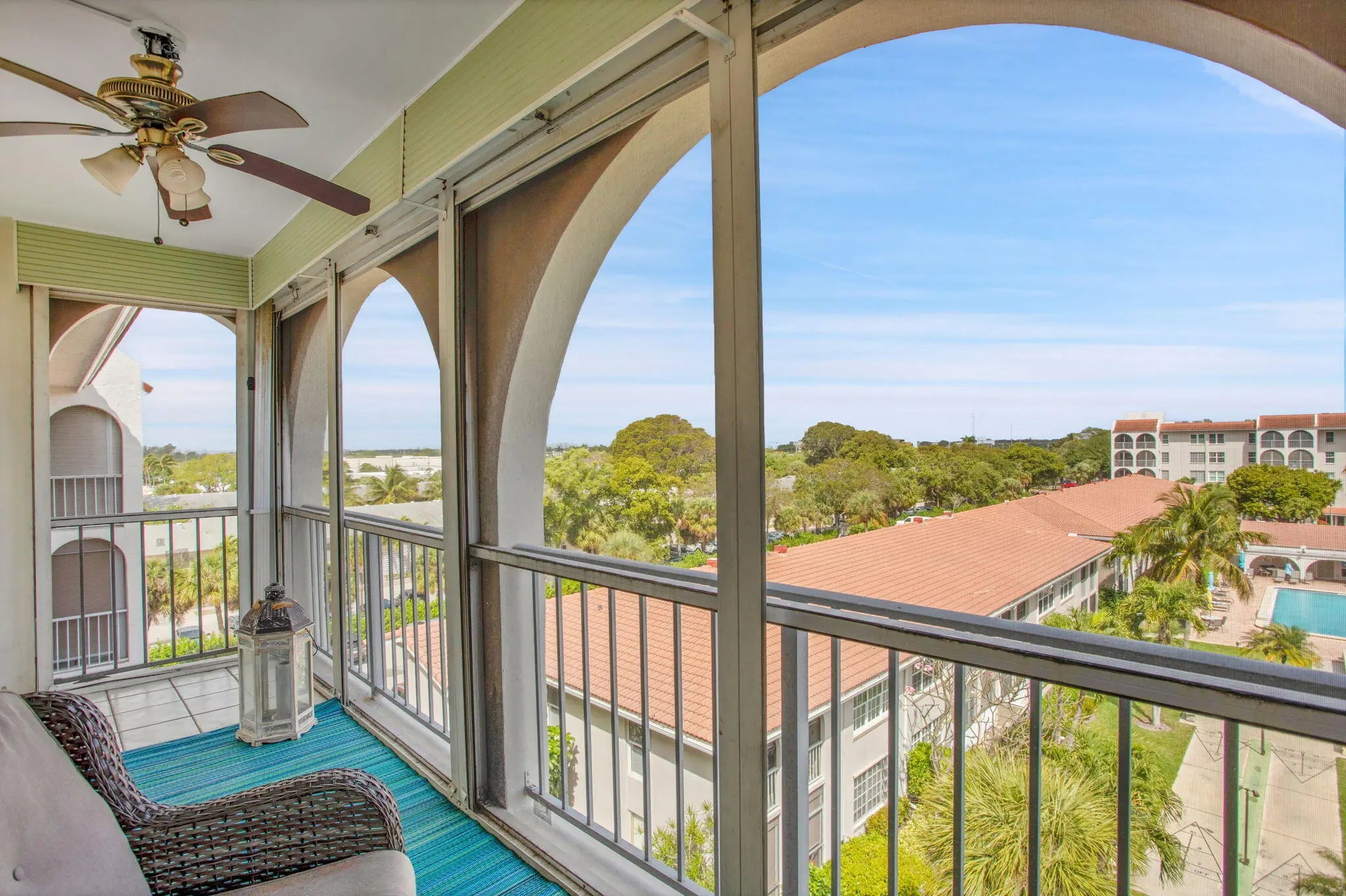 Discover this charming 2-bedroom, 2-bathroom condo with a warm and inviting open-concept living space. Enjoy the tranquil courtyard oasis and stunning pool views from your screened balcony. One of the home's most unique features is the veranda--offering views of Cape Canaveral rocket launches, FAU drone shows, and fireworks along the Intracoastal throughout the year. Conveniently located near restaurants, shopping, and beaches. This unit features a new water heater, a replaced electrical panel box from 2019, and regular HVAC maintenance. The dwelling is well maintained. This listing is subject to error, omission, and change without notice - all sizes are approximate and subject to error, all information must be confirmed by Buyer. Virtually staged photos for conceptual purposes only.