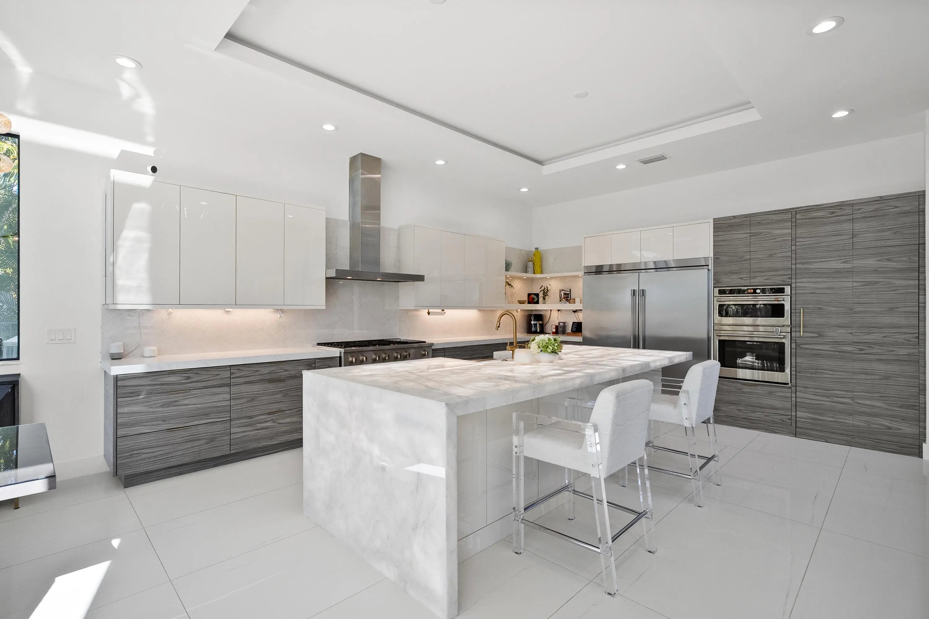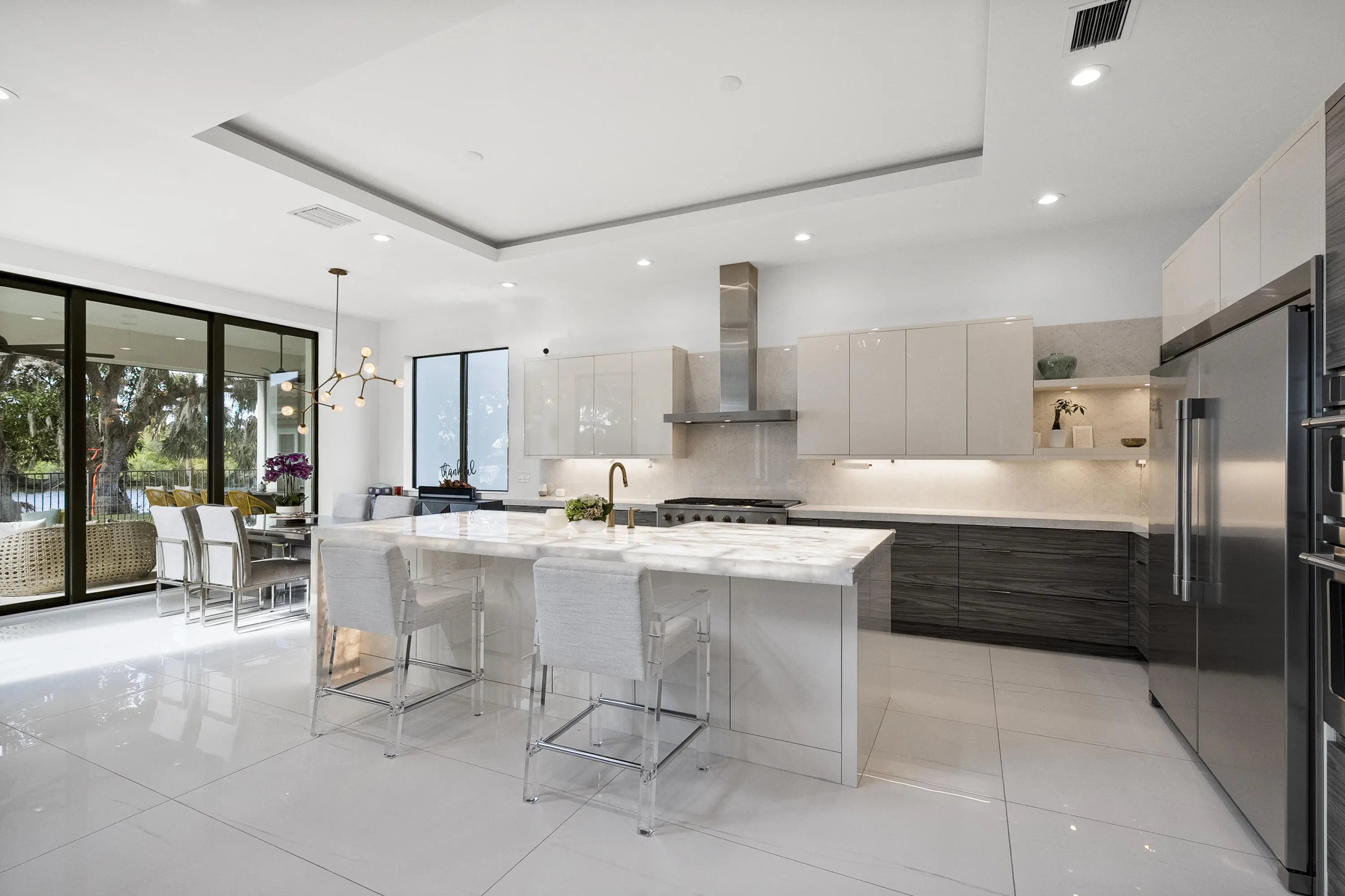 Experience modern waterfront luxury in this stunning contemporary masterpiece with impressive open floor plan and designer upgrades and finishes! This custom-built home showcases a sleek European kitchen with an illuminated quartz island, extra-large Frigidaire refrigeration, and premium finishes throughout. Luxurious master bedroom suite overlooking the water! Indulge in spa-quality details like the illuminated agate shell bathroom countertop and beautifully designed custom closets. With complete impact glass, a striking modern facade, whole-home water softener, and seamless indoor-outdoor living enhanced by roll-down patio screens, comfort meets style at every turn. The backyard is a true boater's paradise-featuring a 20,000 lb lift, 9,000 lb lift, 1,500 lb jet ski lift.