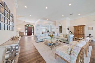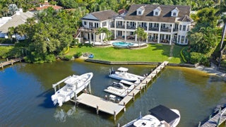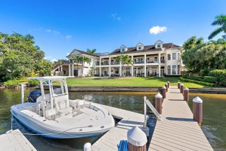 Discover this magnificent custom estate on the Loxahatchee River, featuring stunning waterfront views and breathtaking sunsets. With 7,900 sq. ft. of luxurious living space across three levels, this home boasts 6 bedrooms, 7.1 baths, and a private guest suite, complete with an elevator for your convenience. Step into the grand foyer with a floating staircase, leading to elegant formal living and dining rooms, a gourmet kitchen with a butler's pantry, and a family room with a stylish bar. Enjoy leisure time in the billiard room or serene moments in the study/library. This estate showcases exceptional craftsmanship, including an exquisite remodel of the primary suite and bath, featuring an opulent custom dressing suite. The newly updated garage includes a gymnasium with water views,