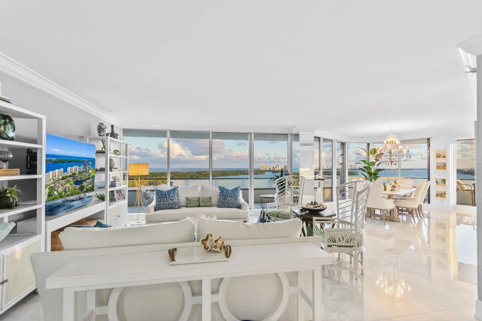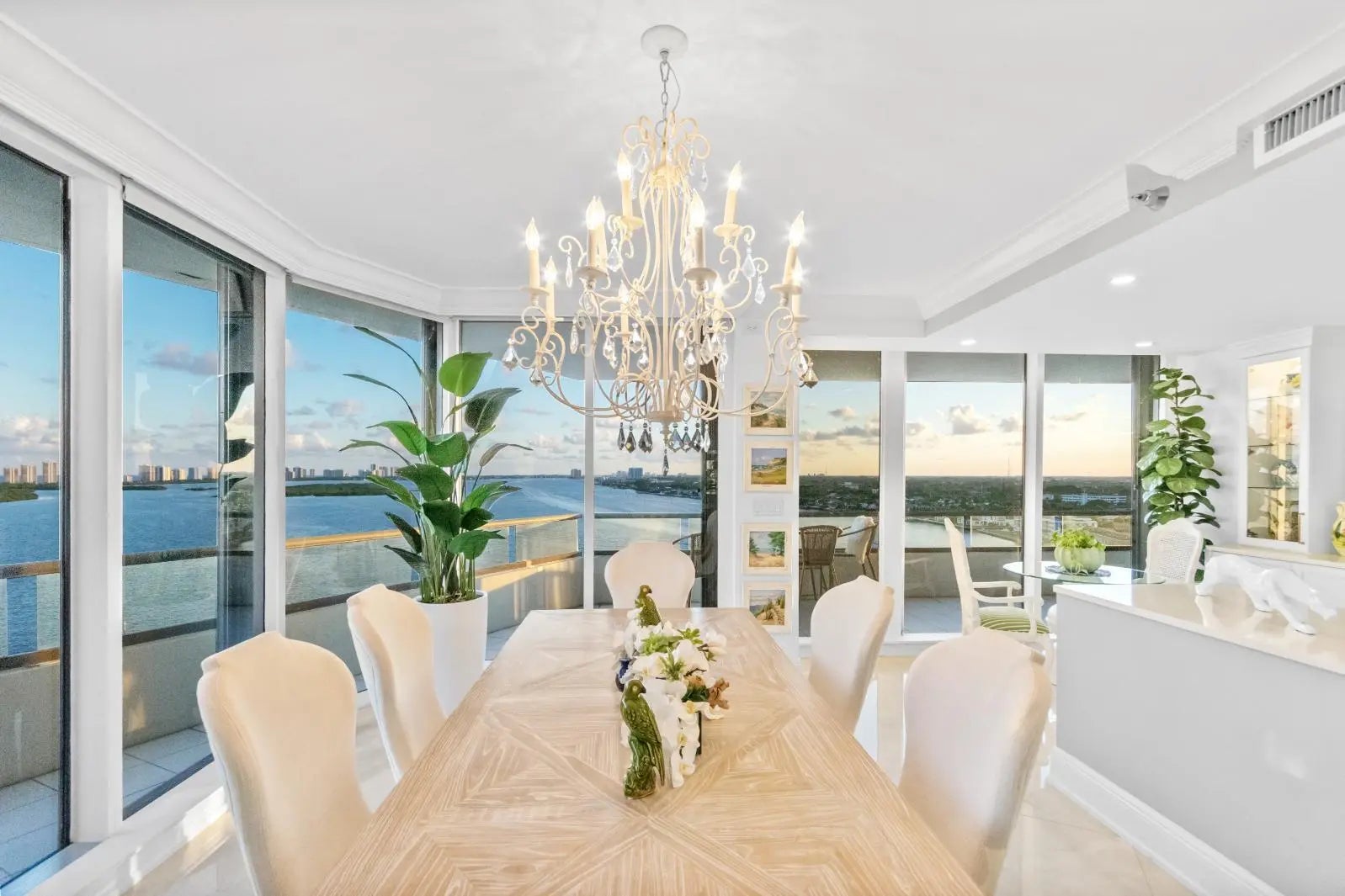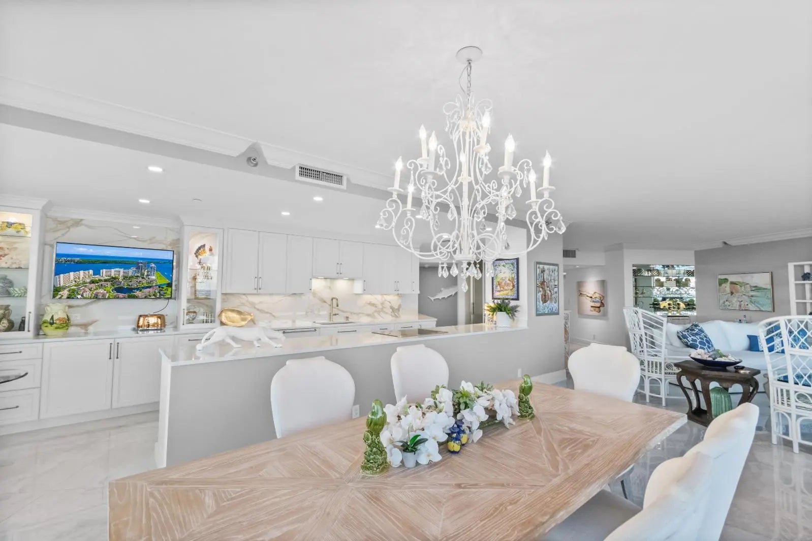 Step into luxury living in this beautifully renovated 14th-floor residence, showcasing unobstructed southeast waterfront views from every main room. This spacious 3-bedroom condo features three private en-suite bathrooms plus a powder room, offering comfort and convenience for both residents and guests.A magazine-worthy chef's kitchen serves as the heart of the condo, complete with Sub-Zero refrigeration, Monogram cooktop, premium cabinetry, and abundant counter space. The kitchen opens seamlessly to the elegant formal dining area, as well as a cozy breakfast nook and bar seating, perfect for casual mornings or entertaining on a grand scale.The expansive living area has views of the Atlantic Ocean and Singer Island, creating a truly breathtaking backdrop.