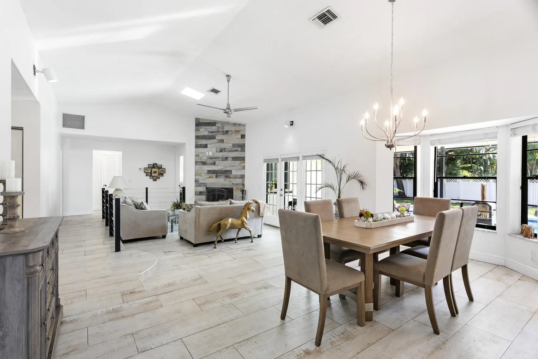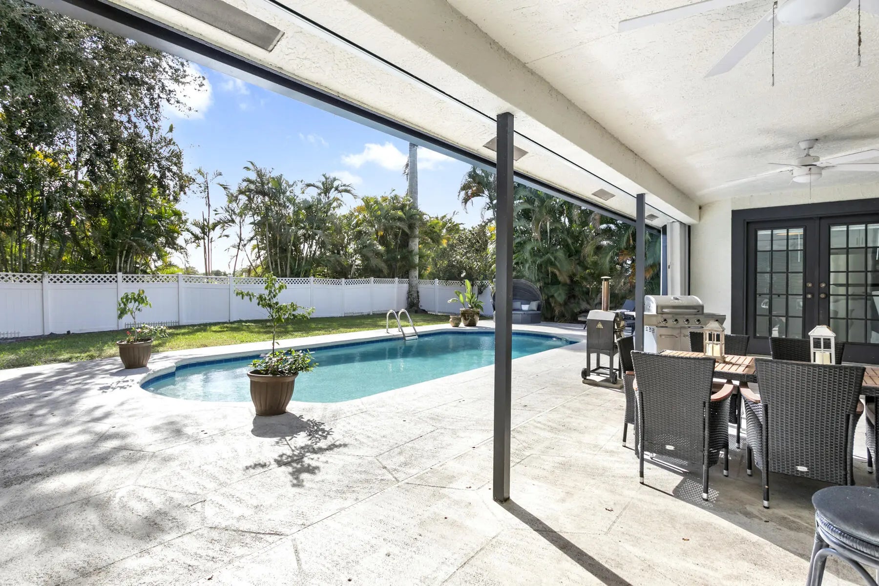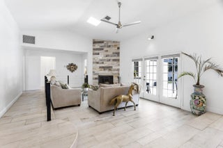 Bright and beautifully inviting, this 3-bedroom, 2.5-bath single-story pool home sits just minutes from Wellington's world-class equestrian venues!Nestled just north of Appaloosa Trail, this residence offers over 2,200 sq. ft. of light-filled living space, a fully fenced and generously sized backyard, and a coveted corner lot with a spacious dual driveway and a rare double-sided garage--perfect for effortless drive-through convenience.Step inside to an elegant foyer that unfolds into soaring vaulted ceilings, a stunning floor-to-ceiling log fireplace, and an open-concept living and dining area. Large windows frame serene views of the expansive covered patio, sparkling pool, and lush backyardideal for laid-back Florida living. The attractively updated kitchen features ...