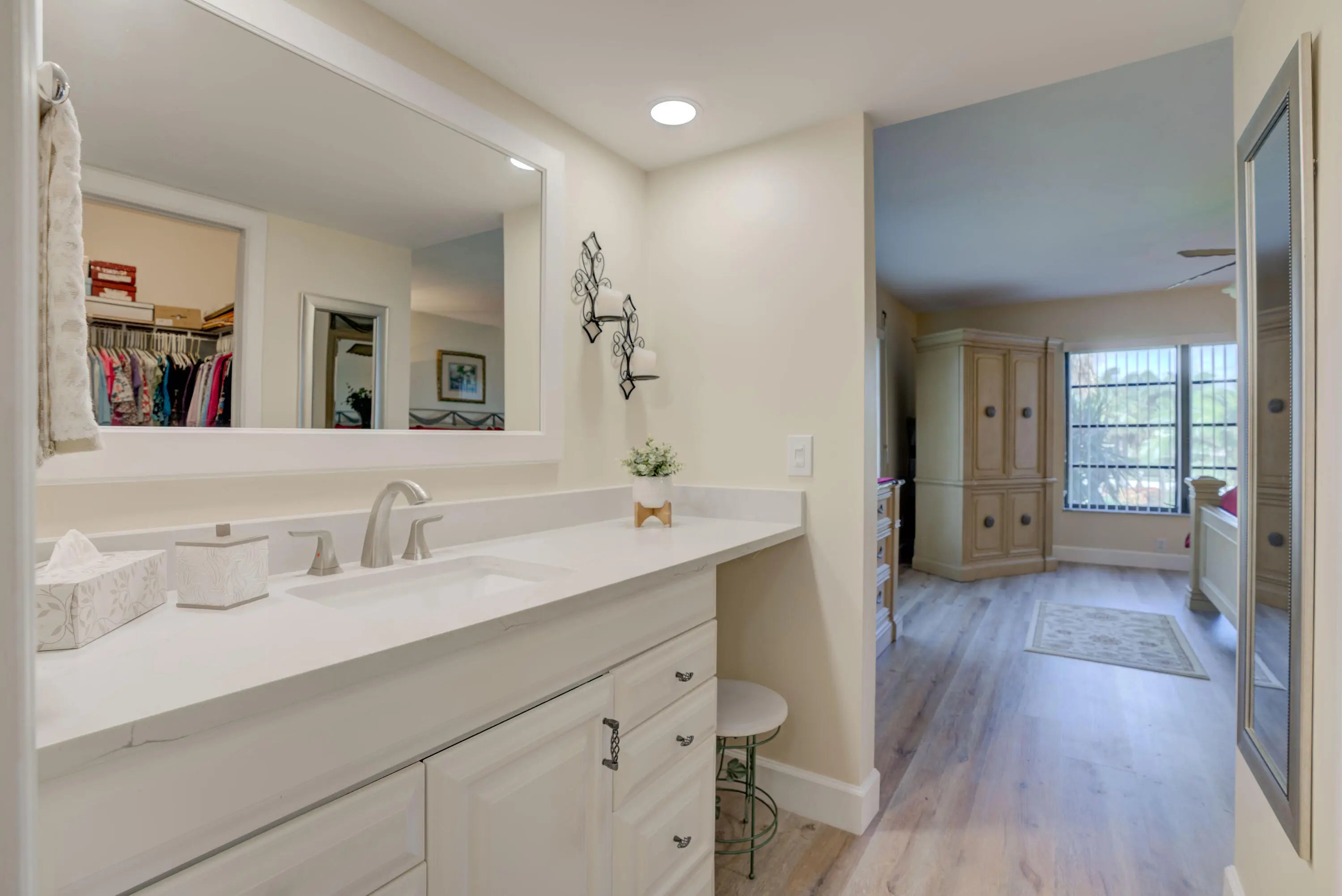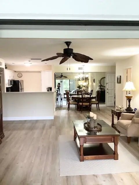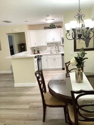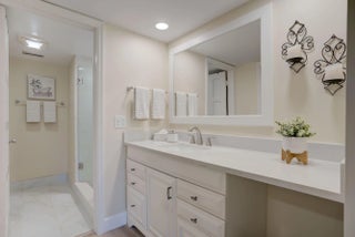 BEAUTIFUL REMODELED UNIT! Professionally installed roll down shutters over all windows! NEW KITCHEN, NEW BATHS, NEW FLOORING! This unit faces east overlooking the pond/lighted fountain. The hot water tank is three years old and the AC is five years old. A private carport is assigned to this unit, as well as a large storage unit. New elevator installed in 2023. There are two clubhouses with heated pools. OCEAN PARKS is pet-friendly and conveniently located near the beach, Jupiter Inlet, golf courses, restaurants and one block from the Harborside for watching the Christmas Boat Parade.