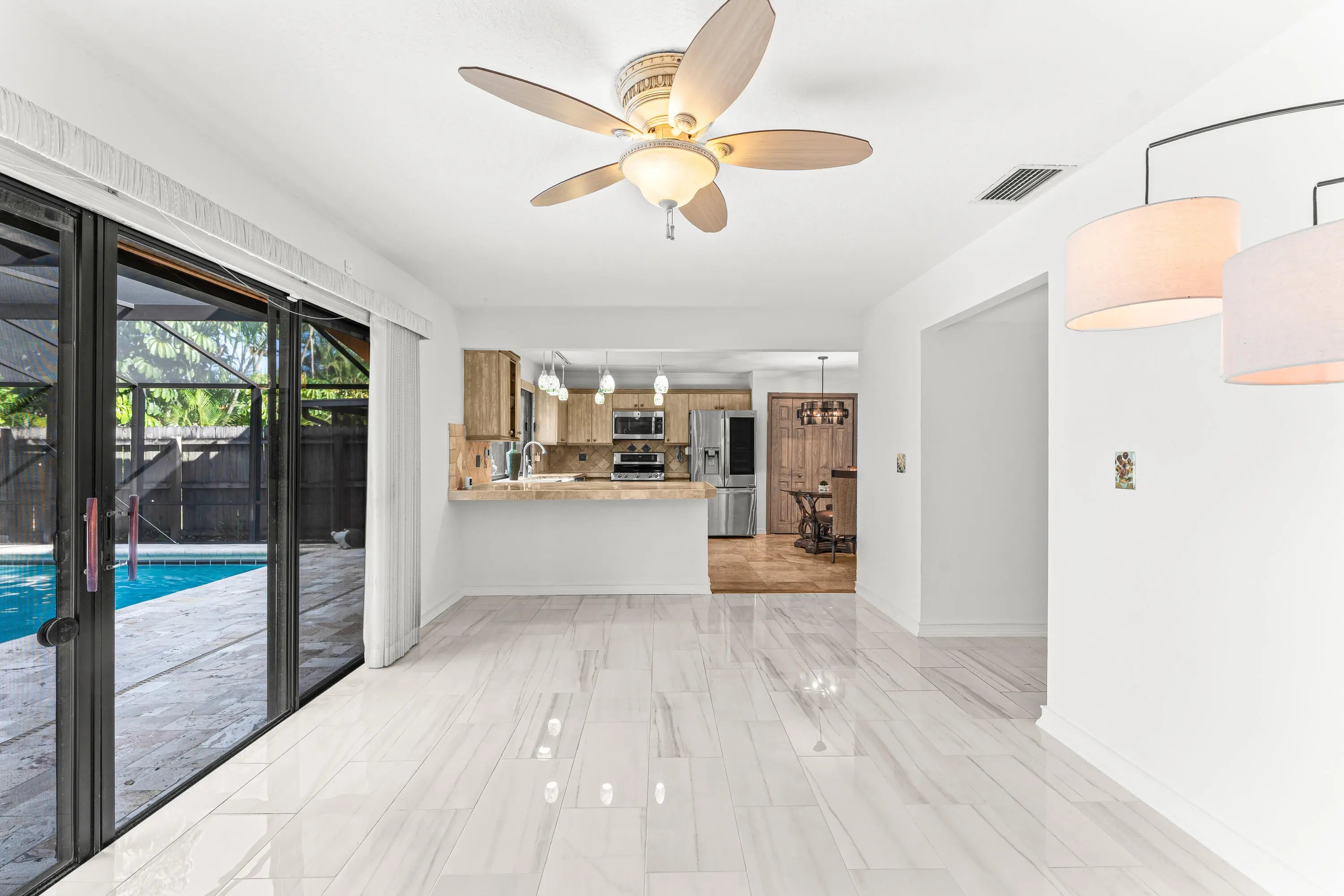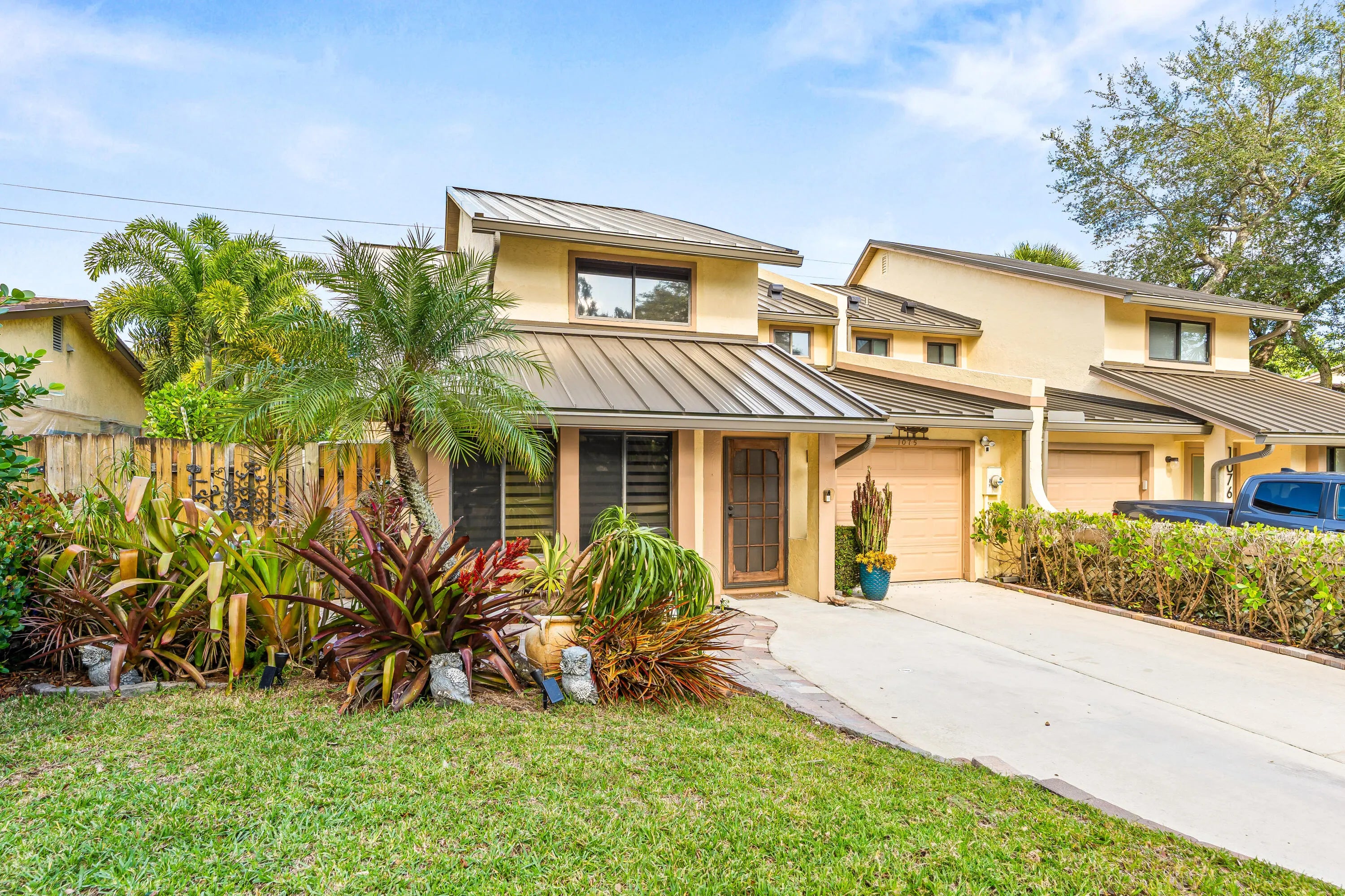 Welcome to this beautifully updated spacious townhouse, nestled in the heart of Palm Beach Gardens. You will be enchanted by the recent upgrades- a brand new extra heavy gauge metal roof, sleek white porcelain flooring, electric blinds, all freshly painted. All new appliances. The revamped kitchen shines with new lighting and a wide farmhouse sink. The exterior has new hardie plank exterior and stucco, new travertine pool deck, UV tinted windows, new screen enclosure, and beautiful landscaping -this one has it all! The community has VERY low HOA fees that include cable, wifi, landscaping and it is located close to everything you'll ever need. A short drive to the beach, world class shopping and fine dining, hospital and library. Come home to relax in your own private pool and sanctuary!