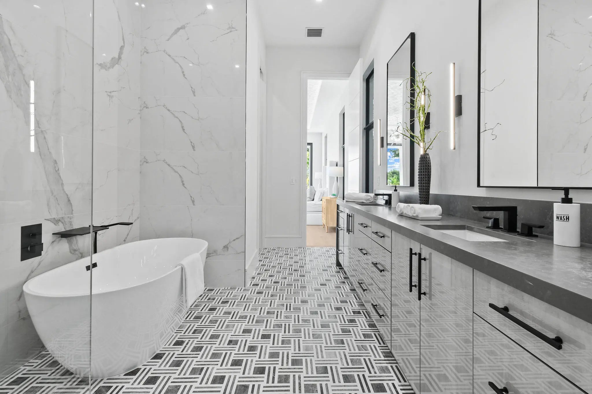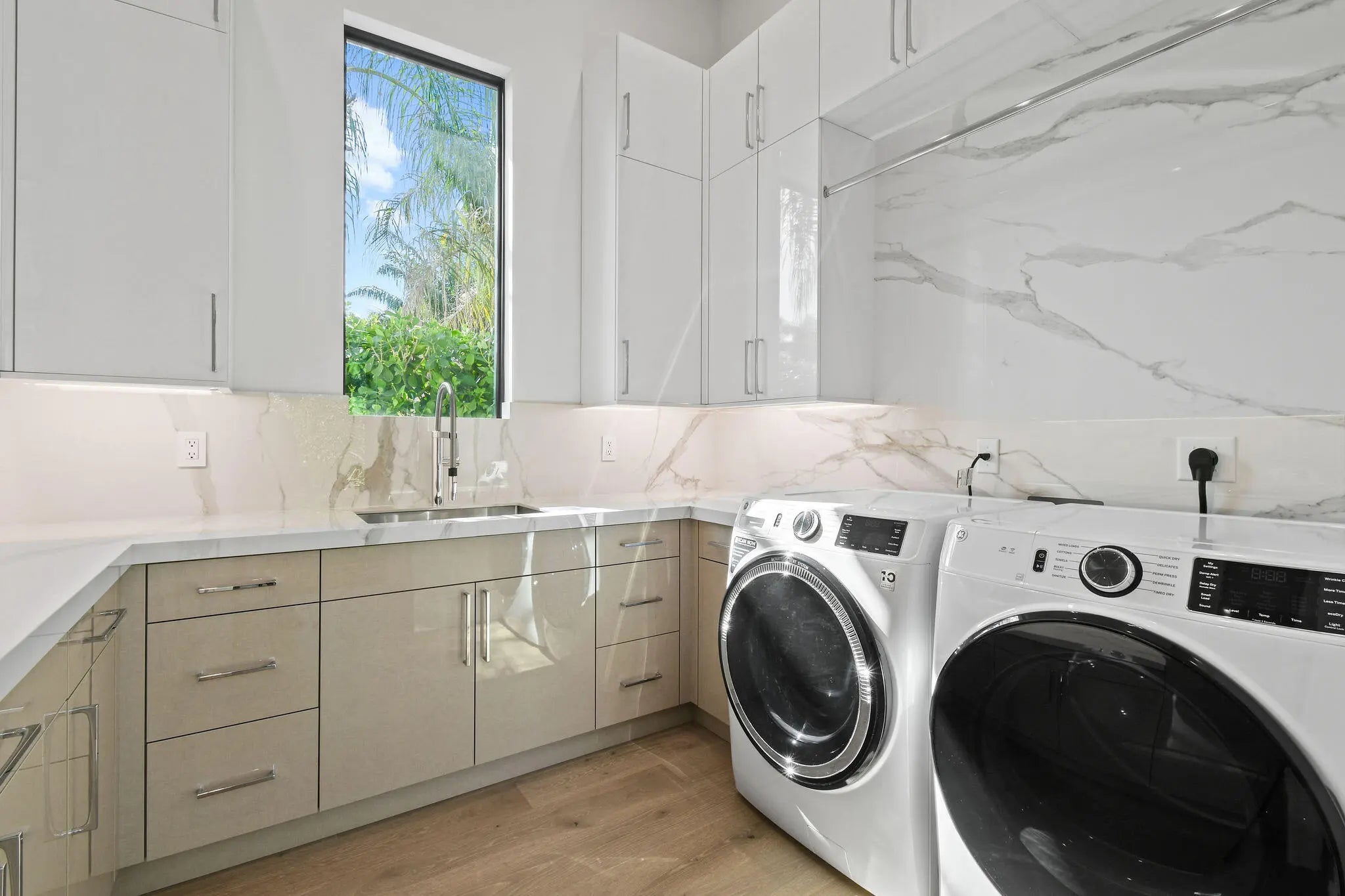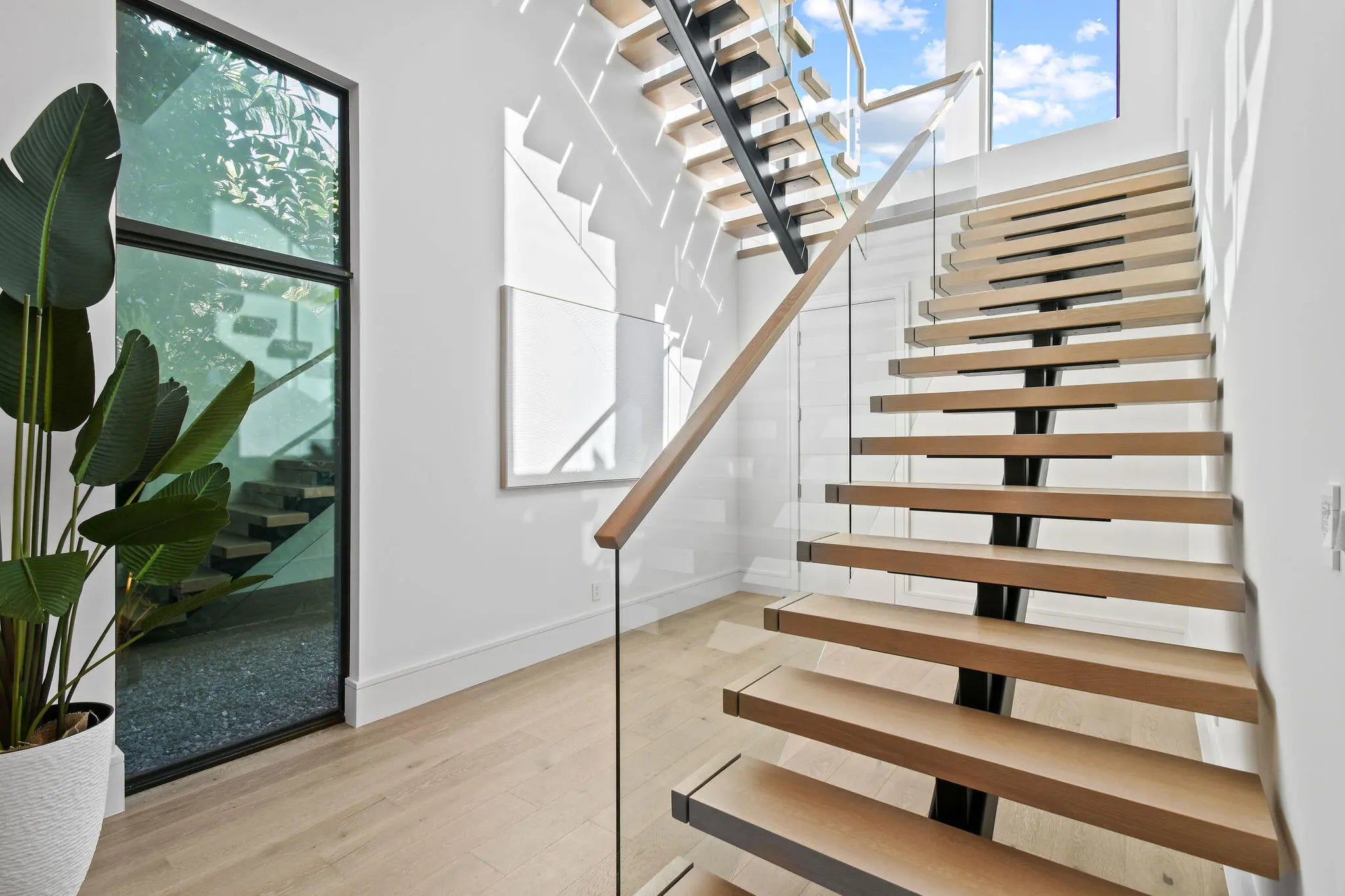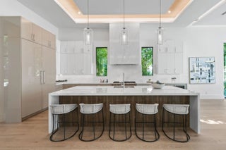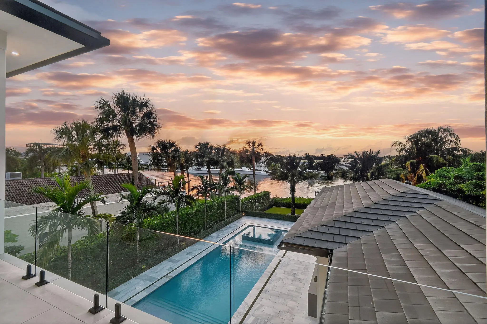 Newly built Intracoastal estate positioned on over half an acre along the direct Intracoastal. This privately gated modern estate embodies uncompromising craftsmanship and refined contemporary living. Completed with a structural integrity seldom seen in residential construction, the home and pool are supported by 106 helical piles, establishing a foundation built for permanence and peace of mind. Thoughtfully designed to merge the architecture with its waterfront surroundings, the residence showcases clean lines, expansive glass, and seamless indoor-outdoor living. A spacious motor court and gated entry offer complete privacy upon arrival, framed by illuminated, meticulously designed landscaping, turf grounds, and custom hardscape inlays. Inside, the home reveals 12-foot ceilings with