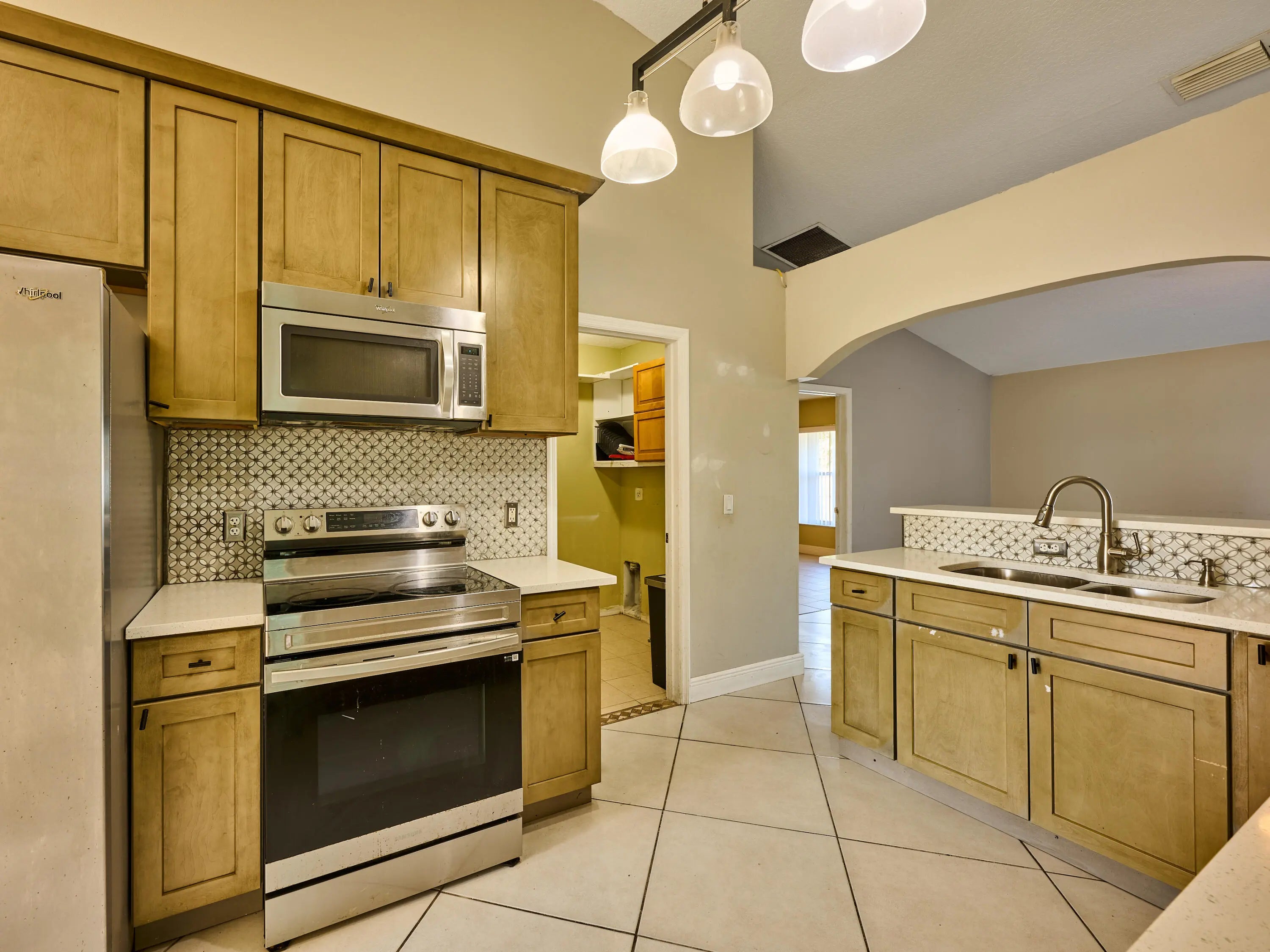 Some photos have been virtually staged to illustrate the home's potential. This beautifully renovated 3-bedroom, 2-bathroom home offering comfort, space, and modern updates in a convenient location.This move-in-ready residence features an open and inviting layout with tile flooring throughout the main living areas, creating a bright and airy atmosphere. The updated kitchen offers ample cabinet and counter space, stainless steel appliances, and a functional design that flows seamlessly into the living and dining areas, making it ideal for both everyday living and entertaining.The home includes three well-proportioned bedrooms and two full bathrooms, providing flexibility for families, guests, or a home office. Step outside to enjoy a large backyard, perfect for outdoor gatherings