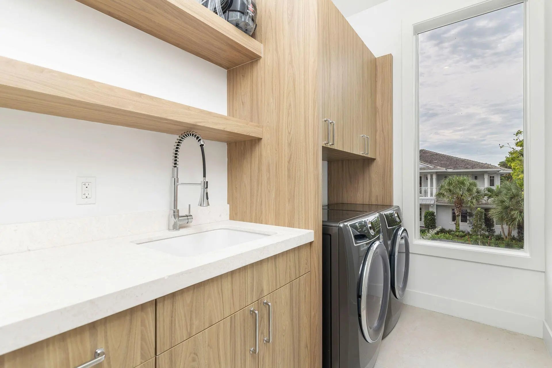 Experience refined modern living in this impeccable new-construction home featuring four bedrooms, four and a half bathrooms, a large two-car garage, and a resort-style pool. Sunlit interiors with lofty ceilings showcase designer-selected finishes, from the custom wall coverings to the chef's kitchen appointed with premier appliances. Each ensuite bedroom offers a serene retreat with spa-inspired baths. Expansive walls of windows seamlessly connect the interiors to the lush outdoor surroundings, creating a tranquil, sanctuary-like atmosphere throughout.