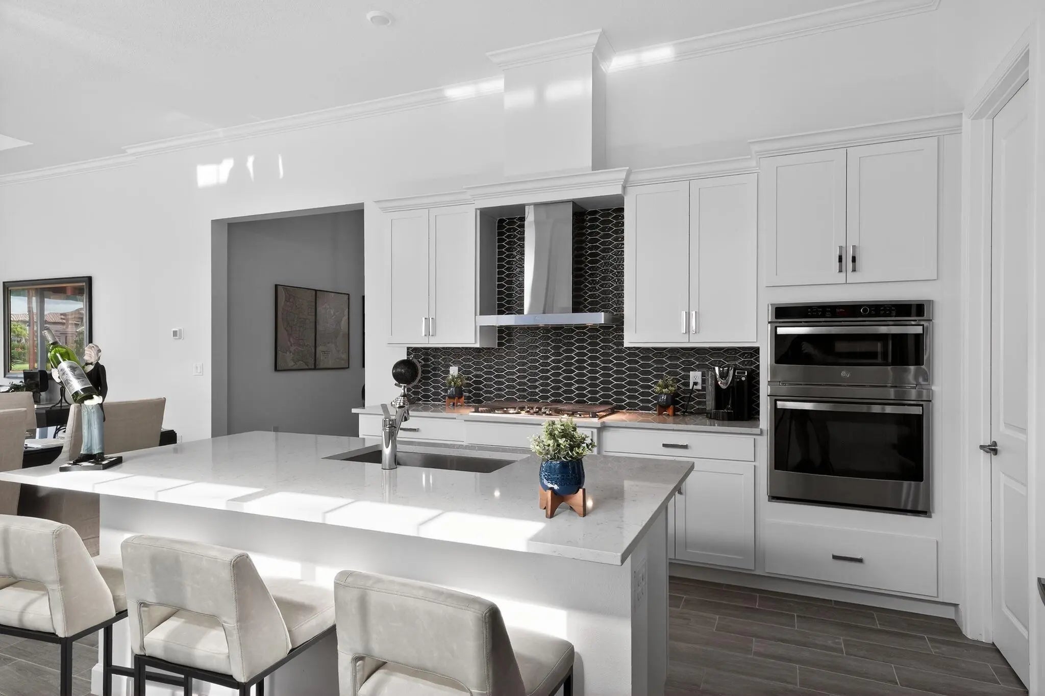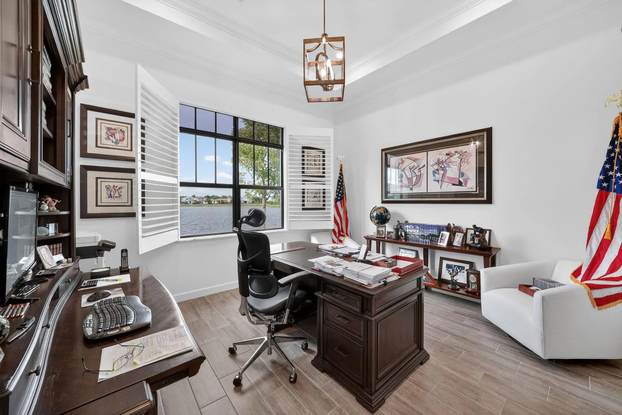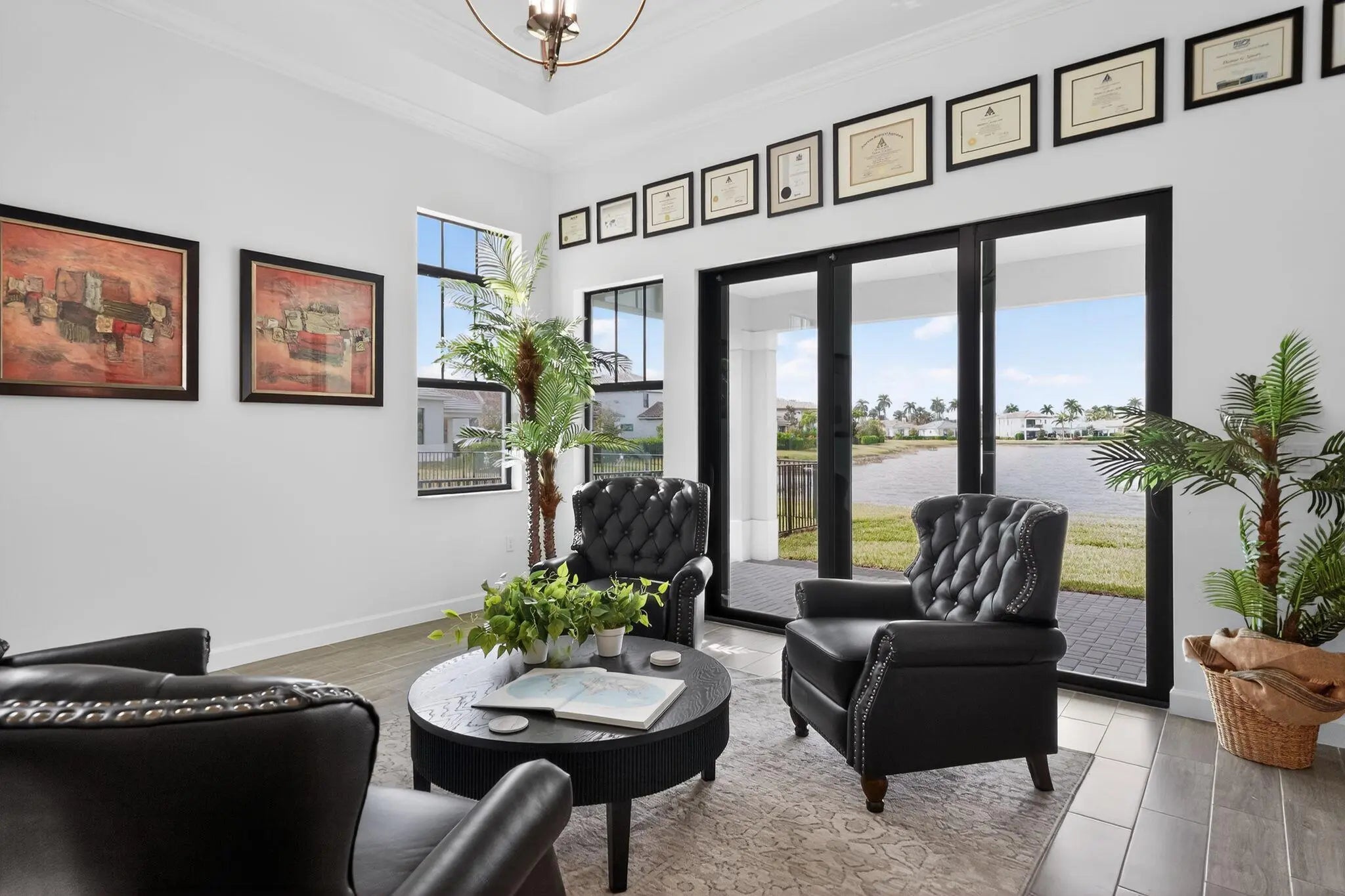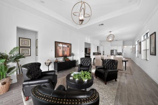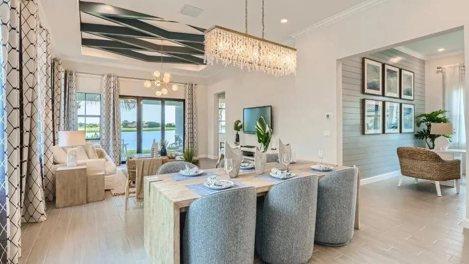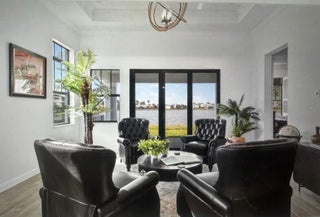 Nestled within a prestigious gated golf community, this beautifully upgraded Giulia model offers the perfect blend of luxury, comfort, and lifestyle. Overlooking a serene lake with breathtaking sunset views, the home features expansive glass sliders that open to a covered terrace, ideal for indoor-outdoor living and entertaining. Designed with an open and spacious floor plan, the residence includes 3 bedrooms, 2 full bathrooms, and a convenient half bath, along with a dedicated laundry room and double garage. A versatile flex space/den provides the ideal setting for a home office or additional living area. Thoughtfully enhanced with $39,000 in upgrades plus an additional $15,000 in custom window treatments and designer lighting, this home is truly move-in ready.