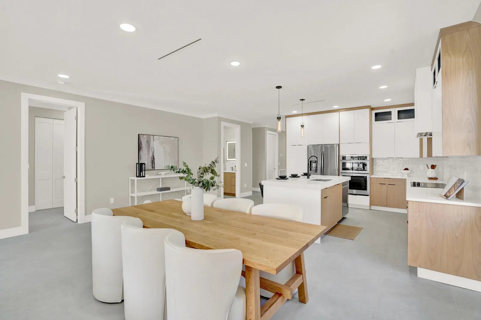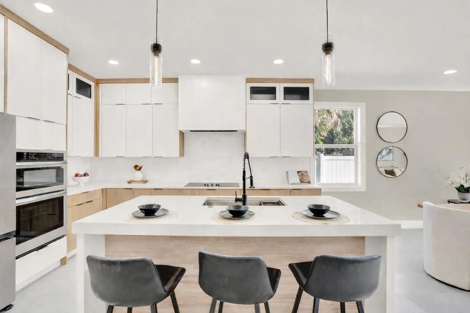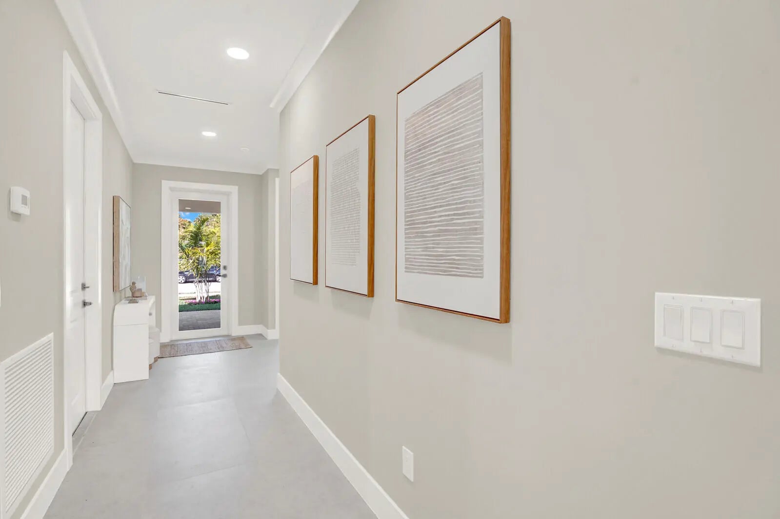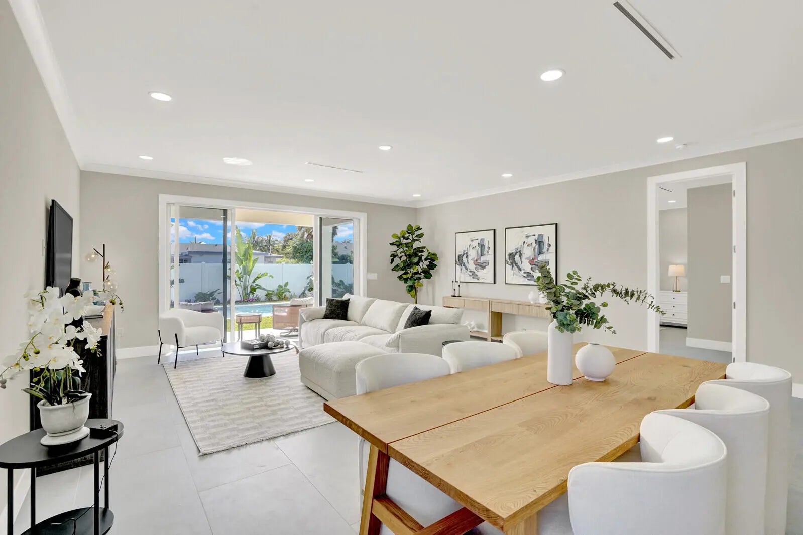 Just completed in December 2025, this exceptional new construction residence delivers refined modern living on an oversized lot within minutes from Delray Beach's pristine shoreline, and blocks from Sundy Village and vibrant Atlantic Avenue in downtown Delray Beach. Thoughtfully designed and impeccably finished, the four-bedroom, three-bath home blends style, comfort, and functionality in one of East Delray's most desirable locations offering effortless access to the beach, dining, and entertainment.Upon entry, the home immediately impresses with a light-filled open-concept design, where the great room and dining area flow effortlessly to the backyard and resort-style pool. Elevated ceiling heights enhance volume and architectural presence, while oversized tile flooring creates a