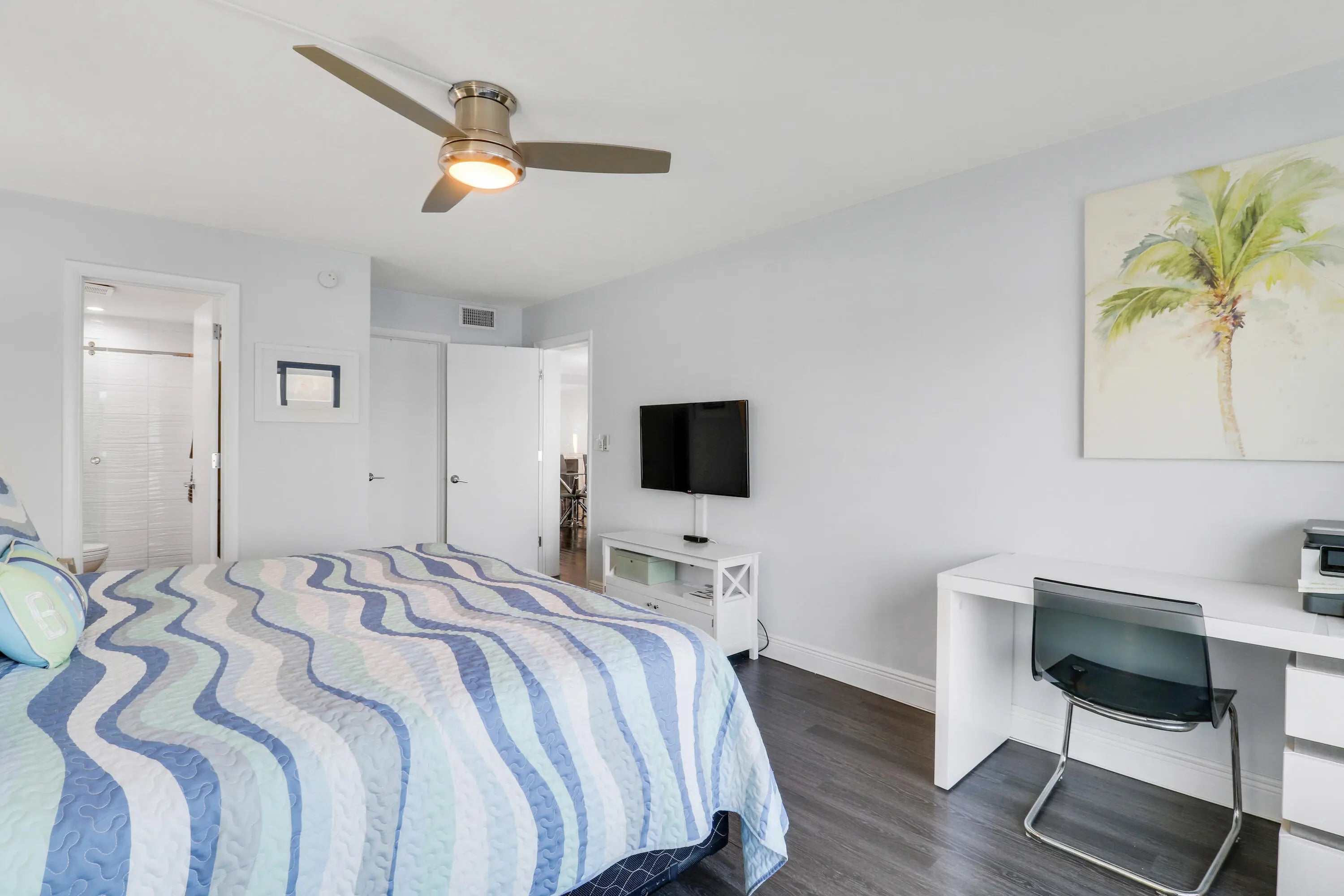 Step into luxury with this stunning top-floor condo boasting impeccable renovations and full impact windows. Spanning 1,130 square feet, this beautifully updated residence exudes Florida charm at every turn with sweeping intracoastal views. The bright, airy interior welcomes you with modern design touches throughout. The kitchen is a chef's dream, featuring crisp white cabinetry paired with elegant quartz countertops. The spacious primary suite offers breathtaking sunrise and water views, along with a walk-in closet and a beautifully renovated bathroom. Located in the highly desirable Landings East, a 55+ community in North Palm Beach, this exceptional property is just minutes from the beach, acclaimed dining, and premier golf courses.