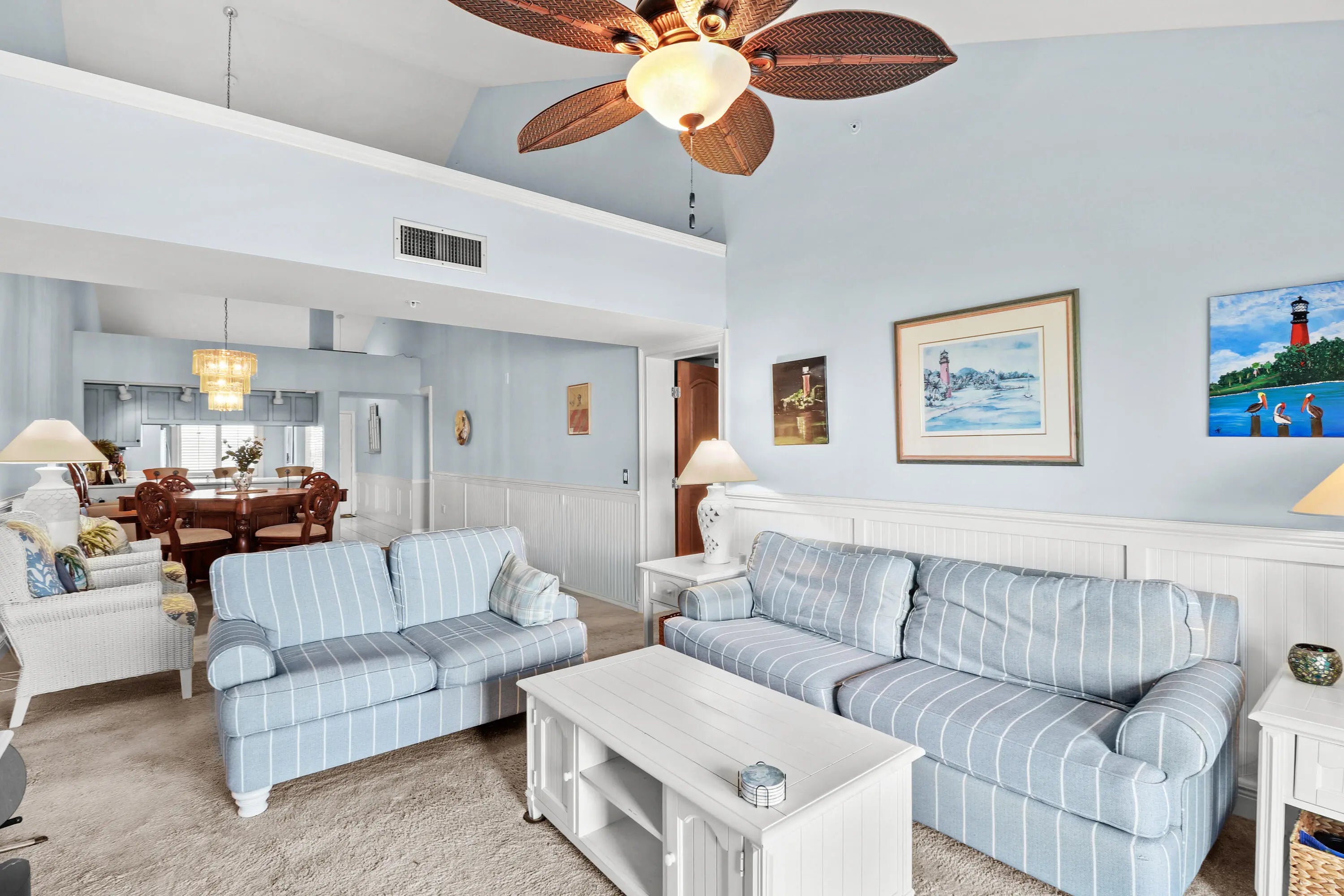 Enjoy this most desired Bluffs Marina penthouse offering expansive marina views. Nautically designed with soaring vaulted ceilings throughout creating an open and airy ambiance that sets it apart from lower-floor units. A spacious bonus room provides versatile options for an third bedroom, office, storage, or hobby space. Wake up to breathtaking sunrises and sunsets over the marina! Enjoy 4 heated swimming pools, tennis/pickleball and bocce ball. Pets under 20lbs are welcome. Full service Marina with ocean access on site! Walking or biking distance to Jupiter Beaches, shopping and restaurants. Embrace the best of Jupiter living.