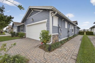 Modern like new villa in the highly sought after Arden community. This space has 3 bedrooms, 2 full bats and a 2 car garage with an epoxy floor. Owners suite has custom closets and a spit vanity. All impacts glass and natural gas and a screened in patio overlooking green space.Stove is gas and the countertops are quartz and EXTRA cabinets throughout. Arden has resort style amenities that include 3 resort style pools, hot tub, cabana and a clubhouse. Pickleball.basketball and tennis courts. A boat launch and new volleyball courts. A soccer field and 5 playgrounds. A 5 acre working farm and 20 miles of fitness trails. A walking path around the lake that is approximately 2.2 miles for walkers/runners or bike enthusiasts.A+ rated NEW elementary school within walking distance.