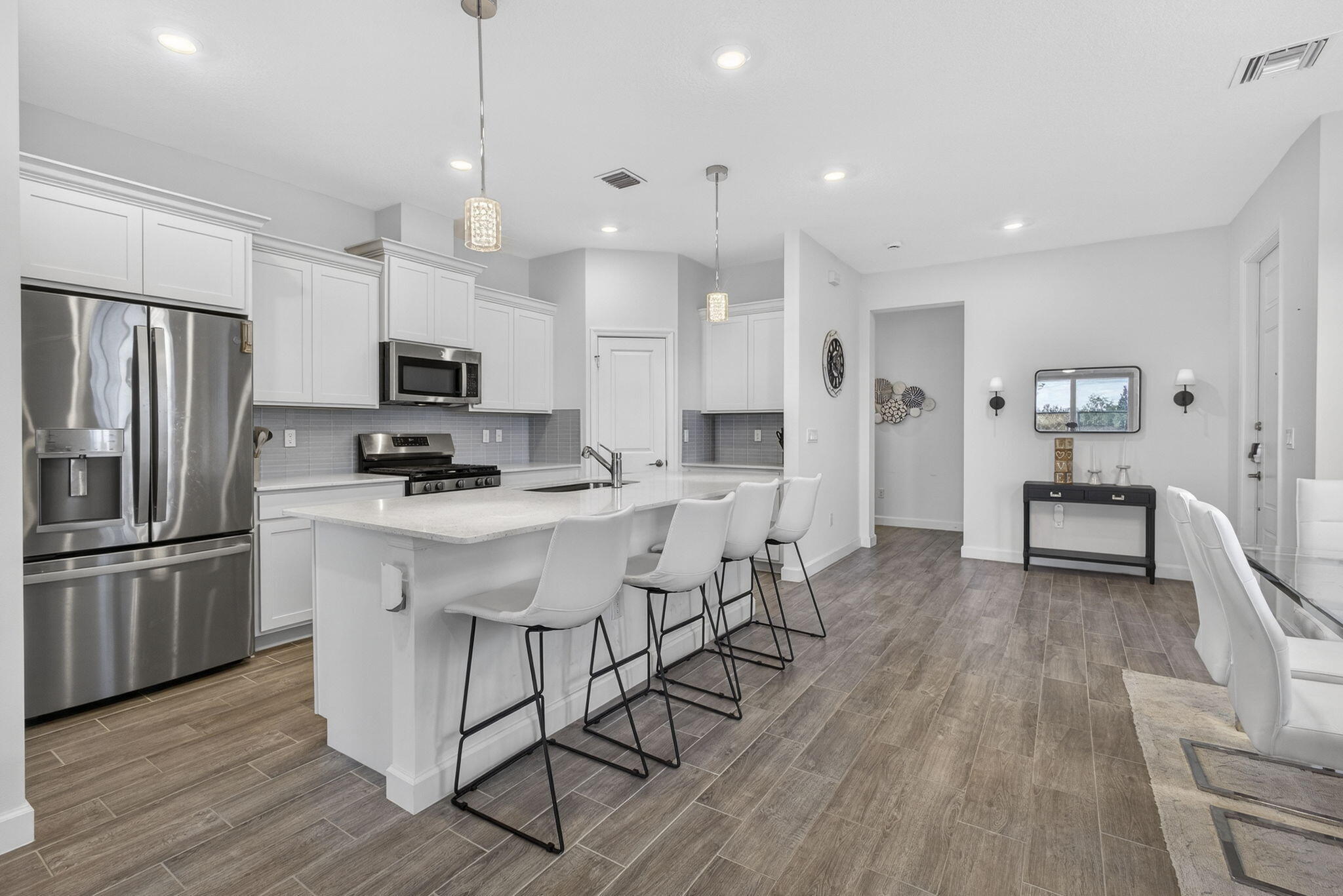 This gorgeous 3 bed,2 full bath villa is available now!Located in the highly sought after Arden community.This home has upgraded floors, appliances and bathrooms.White kitchen, with quartz countertops and pendent lights. Split floor plan with a dinning area and flex space.Gas stove and dryer. Furniture is negotiable.All impact glass and partially fenced. Arden offers resort style amenities which include 3 pools, hot tub, cabana and clubhouse. Pickleball, basketball and tennis courts. A new skate park and 5 playgrounds. A 5 acre working farm and 20 miles of fitness trails. Saddle View elementary school has opened and is in walking distance.