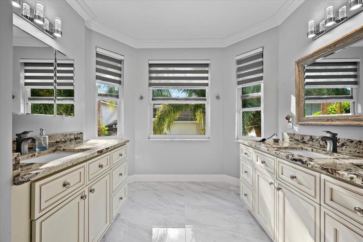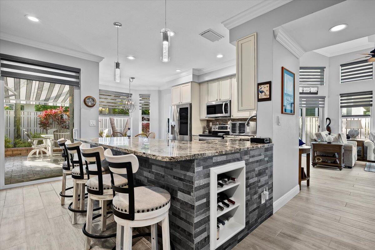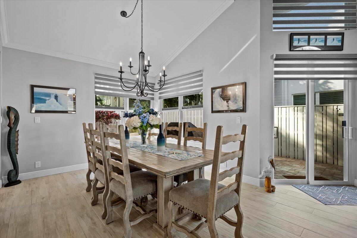 Luxury beachside living awaits in this impeccably completely renovated residence within the exclusive, gated community of Sea Colony. Just steps from Jupiter's pristine, pet-friendly beaches, this elegant 3-bedroom, 2.5-bath home plus cabana bath offers soaring vaulted ceilings, abundant natural light w/all impact windows & doors, and seamless indoor-outdoor living. Completely renovated in early 2020, the open-concept design showcases a chef-inspired kitchen w/granite countertops & breakfast nook flowing effortlessly into refined living and dining spaces. The upper level features a serene primary suite with en-suite bath & 2 walk-in closets, complemented by 2 beautifully updated guest beds & bath. Designer finishes include crown molding throughout, marble-tiled master bath, engineered hardwood upstairs, porcelain wood look flooring on main level, & custom zebra window treatments. The home has been extensively upgraded with a new roof (2020), new gutters (2020), new pavers in the driveway, back and side yard (2020) & a new fence (2020). All impact windows and doors installed in 2017, along with a new impact-rated garage door (2017), providing peace of mind and long-term value. Enjoy a private, fully paved L-shaped patio with outdoor shower ideal for entertaining after a day at the beach. An attached 2 car garage completes this exceptional offering. Sea Colony delivers resort-style amenities including 24-hour gated security, private beach access, heated and cooled pool and spa, tennis and pickleball courts, fitness center, and a fully funded entrance renovation currently underway with no assessments due for town. Experience the ultimate Jupiter lifestyle with world-class golf, waterfront dining, boating, fishing, and boutique shopping just moments away.