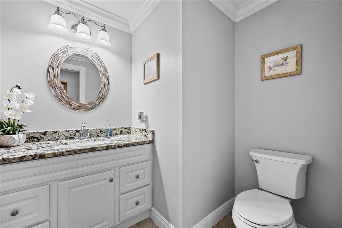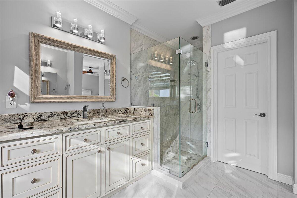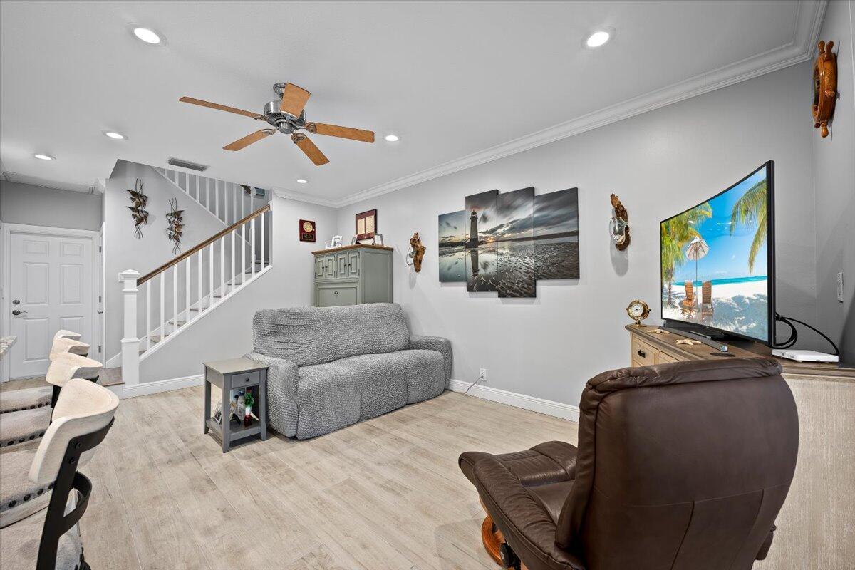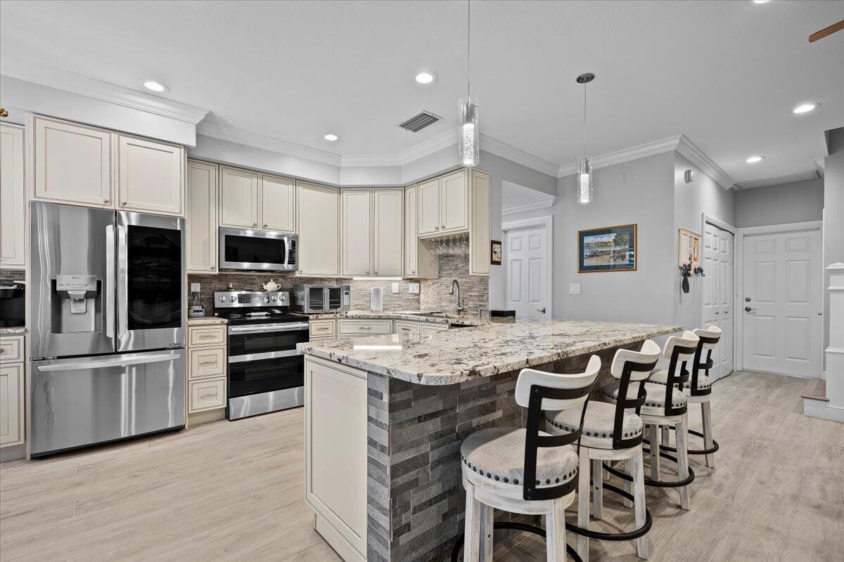 Luxury beachside living awaits in this impeccably completely renovated residence within the exclusive, gated community of Sea Colony. Just steps from Jupiter's pristine, pet-friendly beaches, this elegant 3-bedroom, 2.5-bath home plus cabana bath offers soaring vaulted ceilings, abundant natural light w/all impact windows & doors, and seamless indoor-outdoor living. Completely renovated in early 2020, the open-concept design showcases a chef-inspired kitchen w/granite countertops & breakfast nook flowing effortlessly into refined living and dining spaces. The upper level features a serene primary suite with en-suite bath & 2 walk-in closets, complemented by 2 beautifully updated guest beds & bath. Designer finishes include crown molding throughout, marble-tiled master bath, engineered hardwood upstairs, porcelain wood look flooring on main level, & custom zebra window treatments. The home has been extensively upgraded with a new roof (2020), new gutters (2020), new pavers in the driveway, back and side yard (2020) & a new fence (2020). All impact windows and doors installed in 2017, along with a new impact-rated garage door (2017), providing peace of mind and long-term value. Enjoy a private, fully paved L-shaped patio with outdoor shower ideal for entertaining after a day at the beach. An attached 2 car garage completes this exceptional offering. Sea Colony delivers resort-style amenities including 24-hour gated security, private beach access, heated and cooled pool and spa, tennis and pickleball courts, fitness center, and a fully funded entrance renovation currently underway with no assessments due for town. Experience the ultimate Jupiter lifestyle with world-class golf, waterfront dining, boating, fishing, and boutique shopping just moments away.