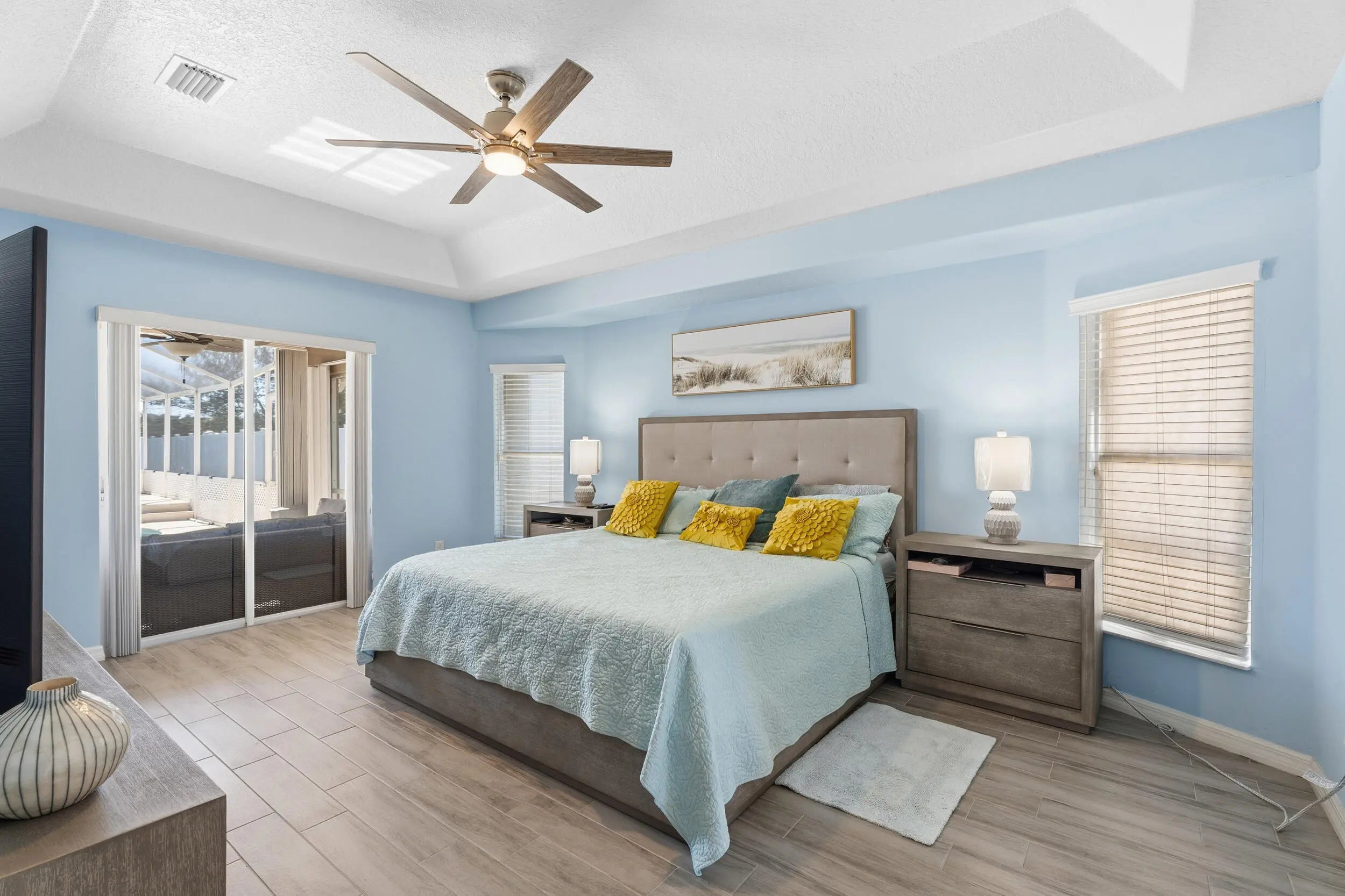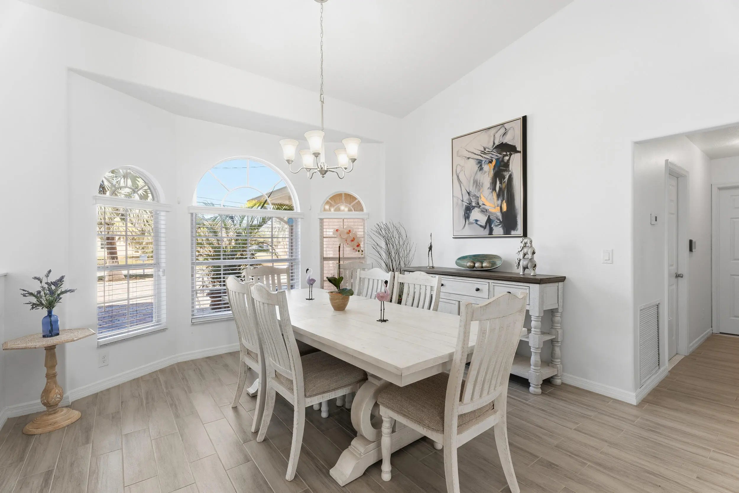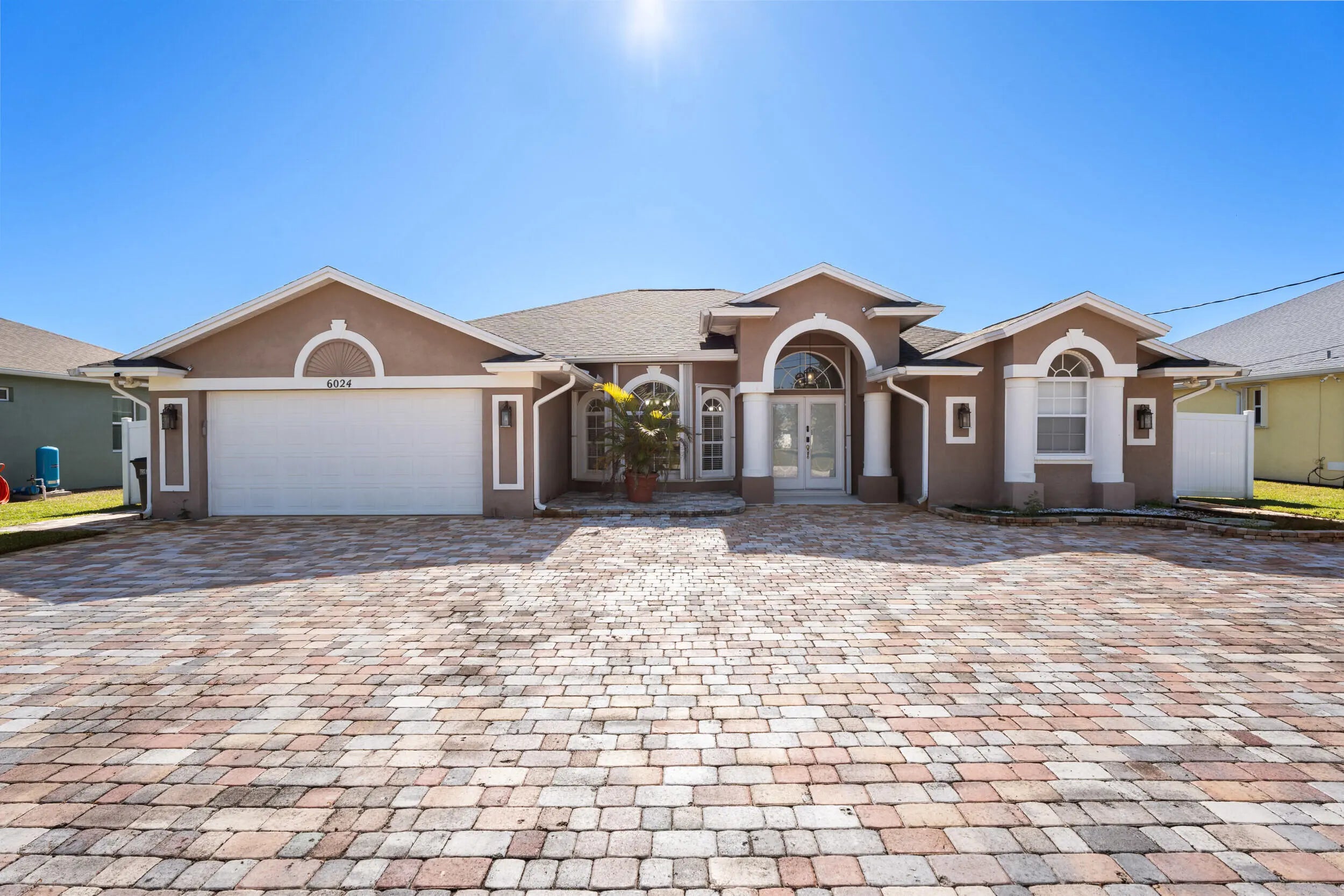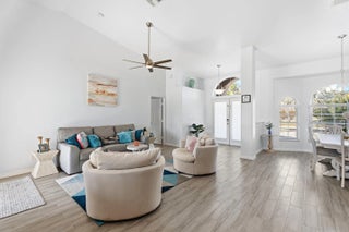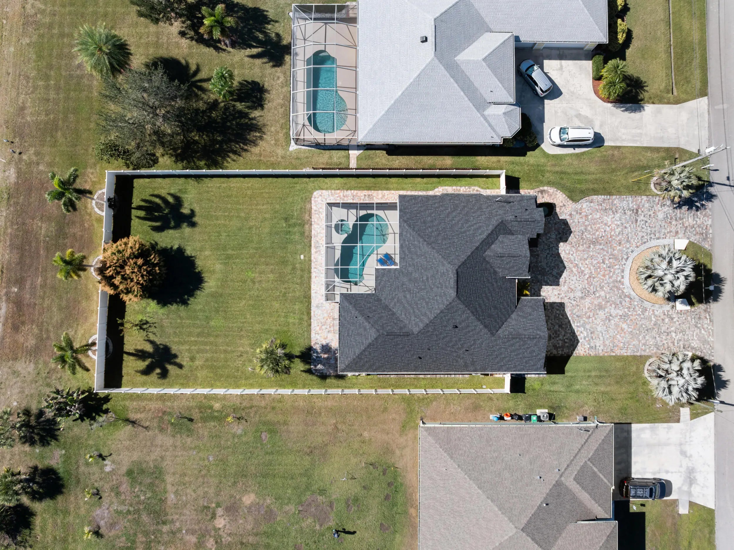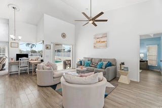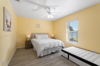 This gorgeous 4 bedroom, 3 bathroom home is move in ready and truly has it all! Large circular paver driveway with room for boat or RV. Rare, oversized lot (.38 acres) with a fully fenced backyard. Screened in pool and spa. 2024 roof. Newer AC. Full accordion shutters. Inside is tastefully redone with tile flooring throughout. Remodeled kitchen with white wood cabinets, quartz counters and large center island. Thoughtfully designed split floor plan. Master suite has been completely remodeled. Two guest bedrooms share an updated guest bathroom. Fourth bedroom is down a hallway and near its own cabana bath that goes out to the pool which would be great for multi-generational living or a renter. Screened in pool and spa area offers private views of the oversized yard. NO HOA!