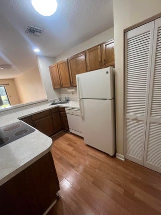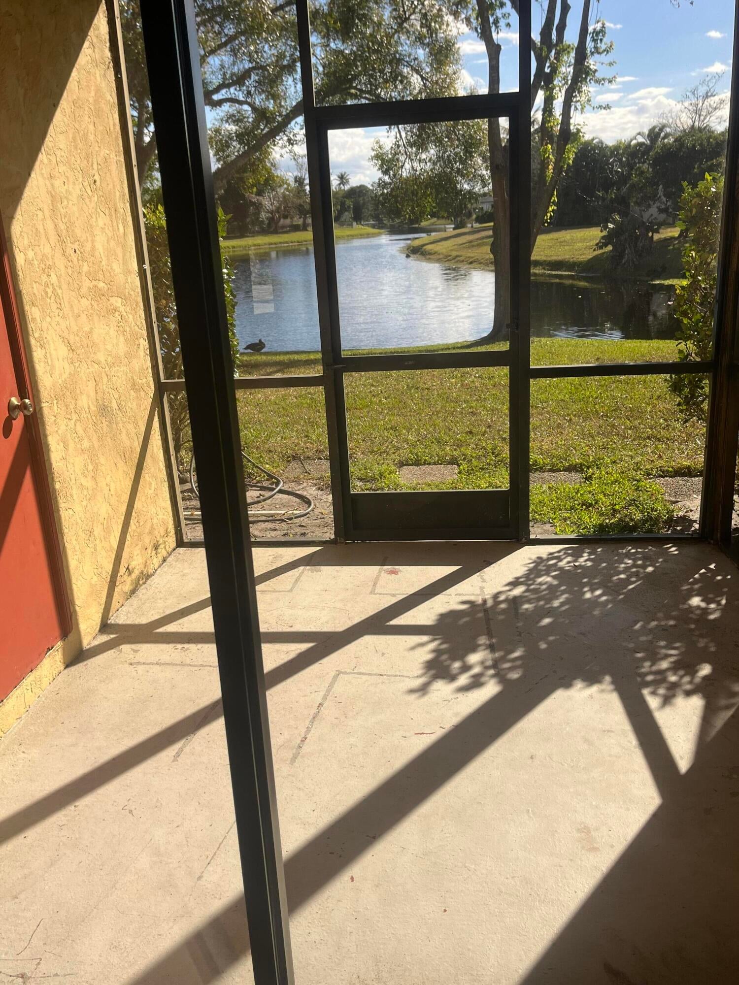 Rarely available 2 story beautiful lakefront property. Both bedrooms on 2nd floor . One shared full bath on second floor and a half bath on first floor. Small galley kitchen screened patio with small storage closet. First and security if credit score is over 700. Tenant occupied .Across from Publix and McDonalds walk to high school, shopping plaza's restaurant and more .