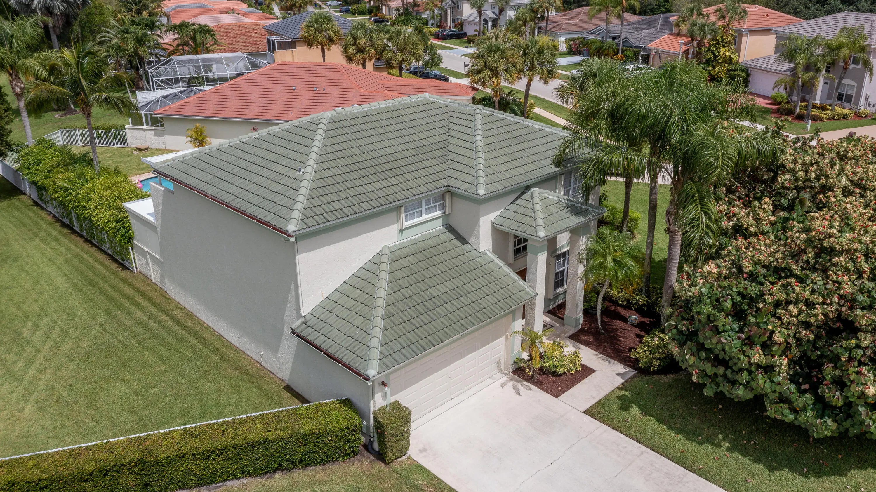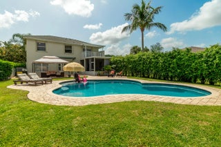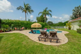 Welcome to this fantastic 4 bedroom 2.5 bathroom pool home situated on a premium corner lot with fantastic lake views! Well maintained large yard with beautiful pool, oversized pool deck, covered screened patio, lush landscaping and fenced for privacy. Property has new water heater, newer roof (2022), hurricane shutters for quick and easy storm protection, newer kitchen appliances and quartz countertop, newer paint inside and out, window and sliding door plantation shutters, tile and luxury vinyl flooring throughout, no carpet! Master bedroom has a covered balcony for extra outdoor space and beautiful view of the lake. Lakefield North is a well maintained gated community zoned for excellent schools and just a golf cart ride away to equestrian activities, polo and several golf courses