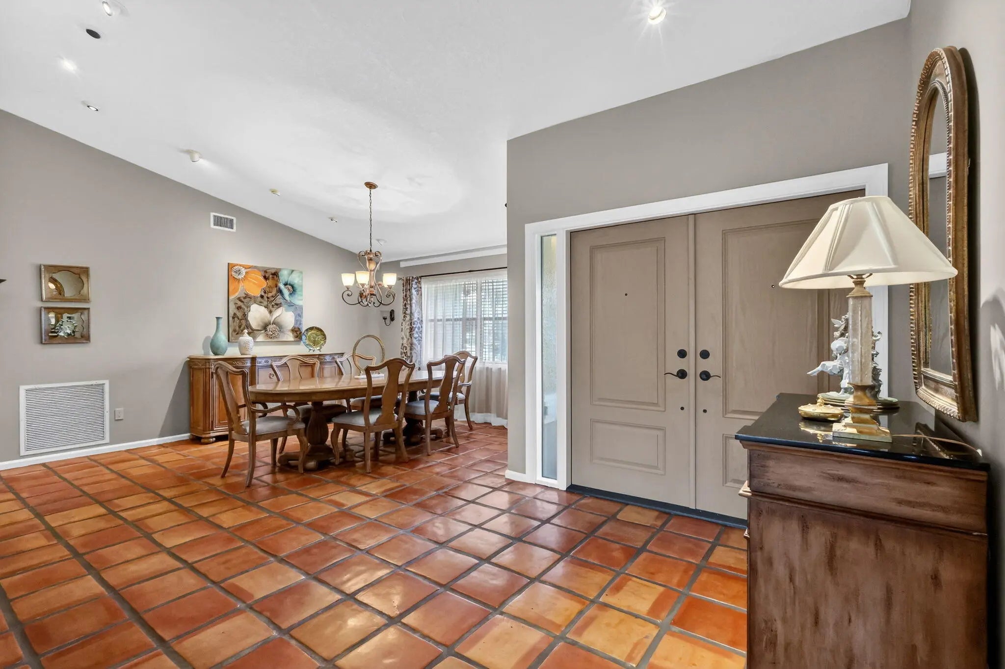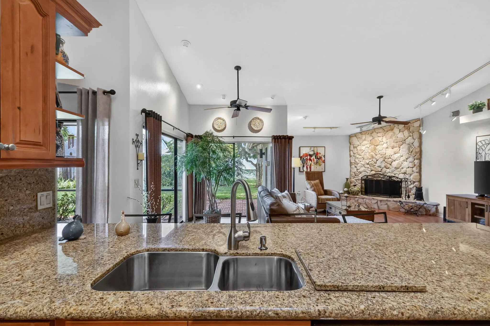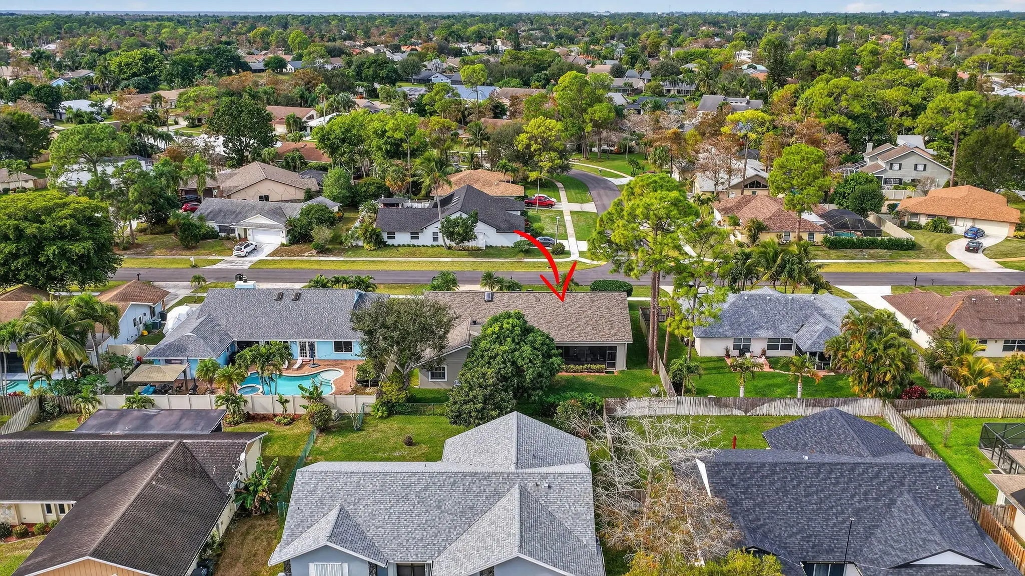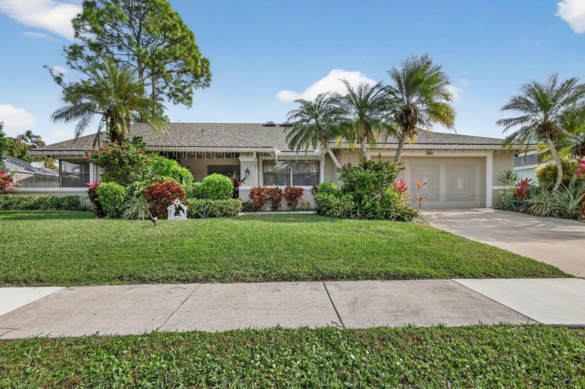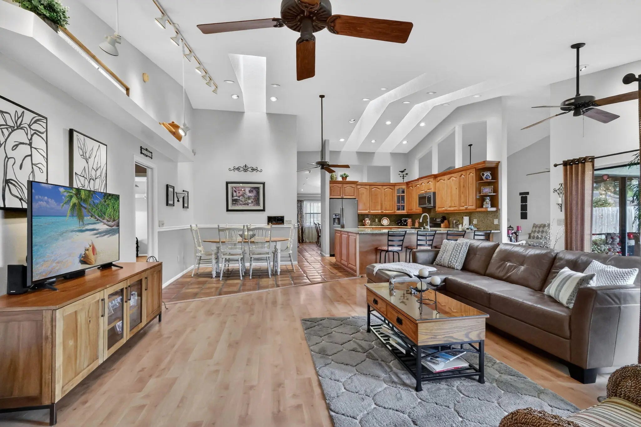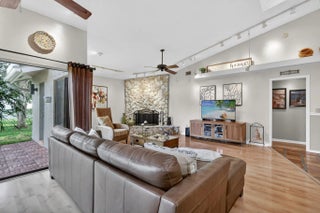 Move right into this beautifully updated home! NO HOA-REMODELED kitchen and bathrooms-NEW ROOF 2025-Hurricane rated front door 2023-Water heater 2023--A/C 2021-Garage opener 2025-Recently repainted exterior & driveway-Light & bright w/cathedral ceilings, skylights and recessed lighting-EZ to maintain Saltillo tile floors in main living areas & wood laminate in bedrooms & hallway-Separate Living & Dining Rooms for formal entertaining-Kick back in large Family Room with fireplace & gather around the large breakfast bar & remodeled kitchen w/granite counters-Separate breakfast room for everyday meals-Guest bathroom opens to covered screened patio perfect for future backyard pool-Conveniently located to restaurants, shopping, hospitals, equestrian events & A-rated schools-All meas.approx
