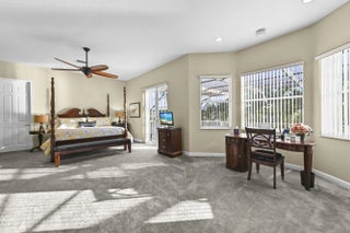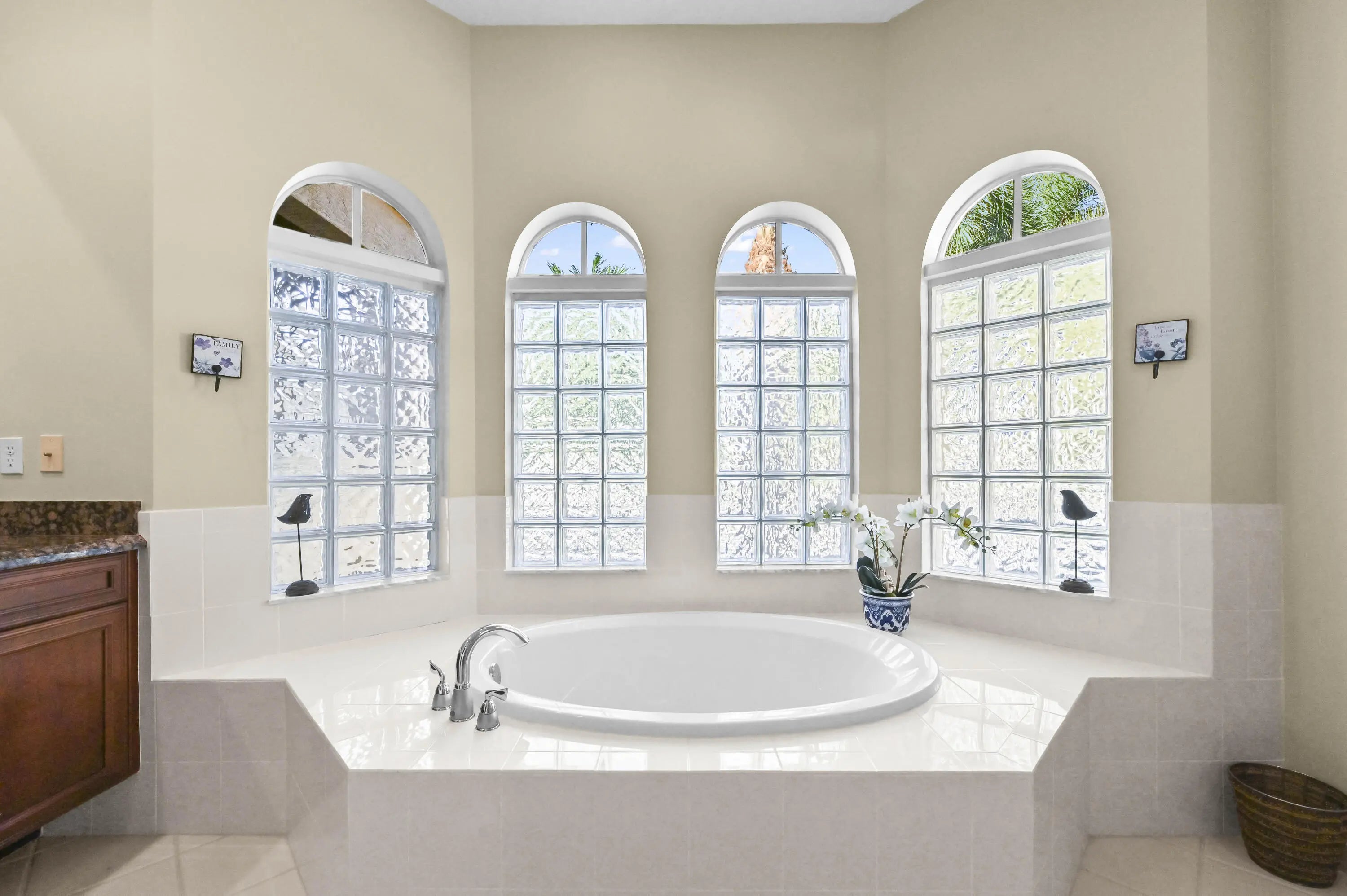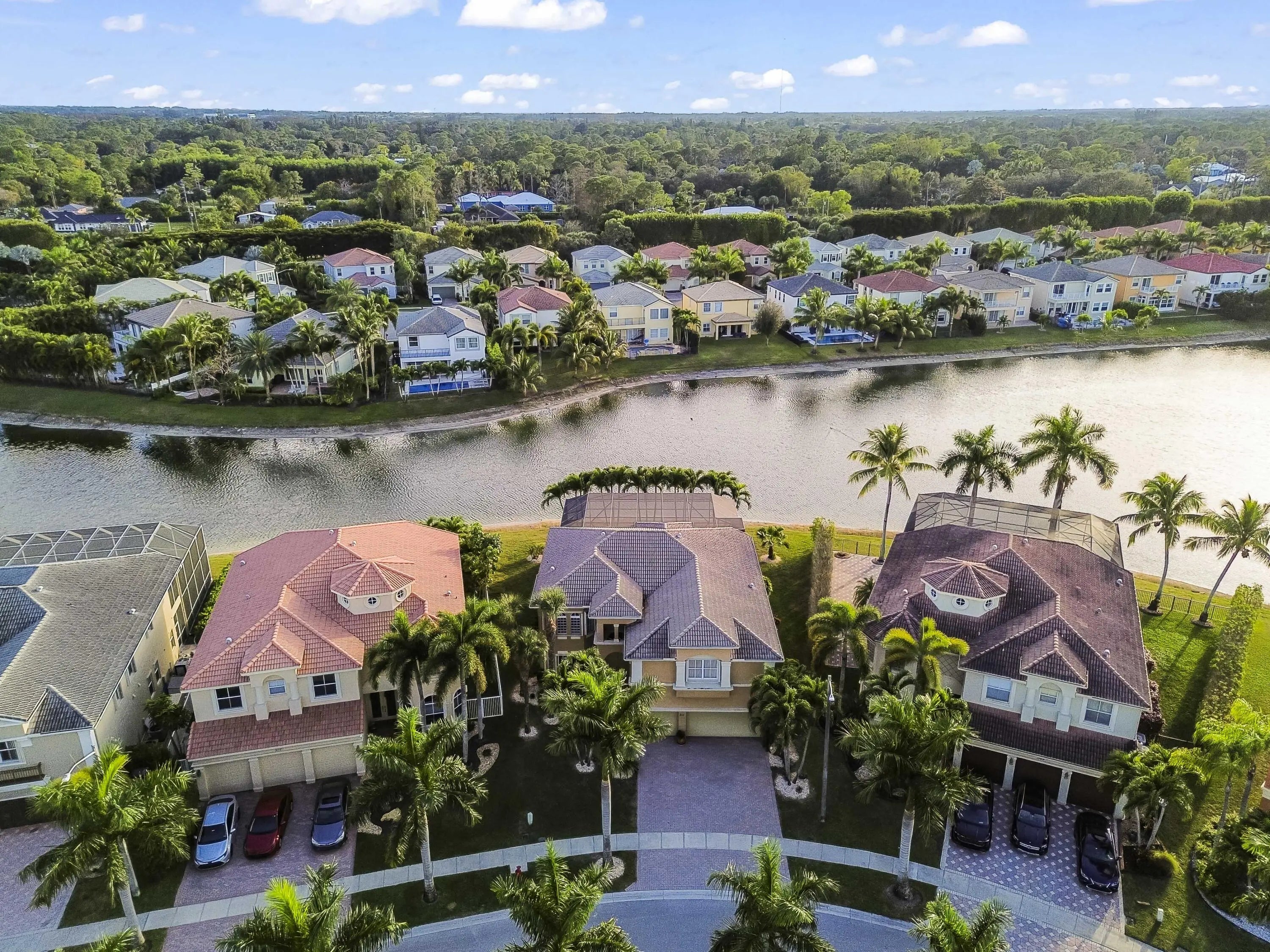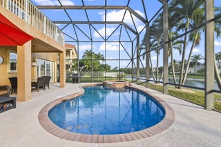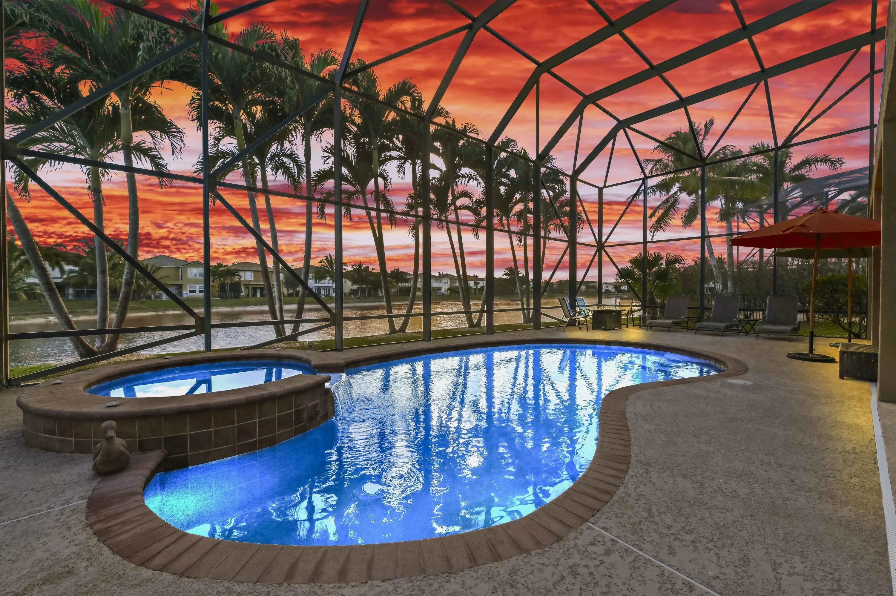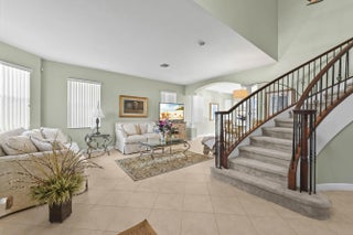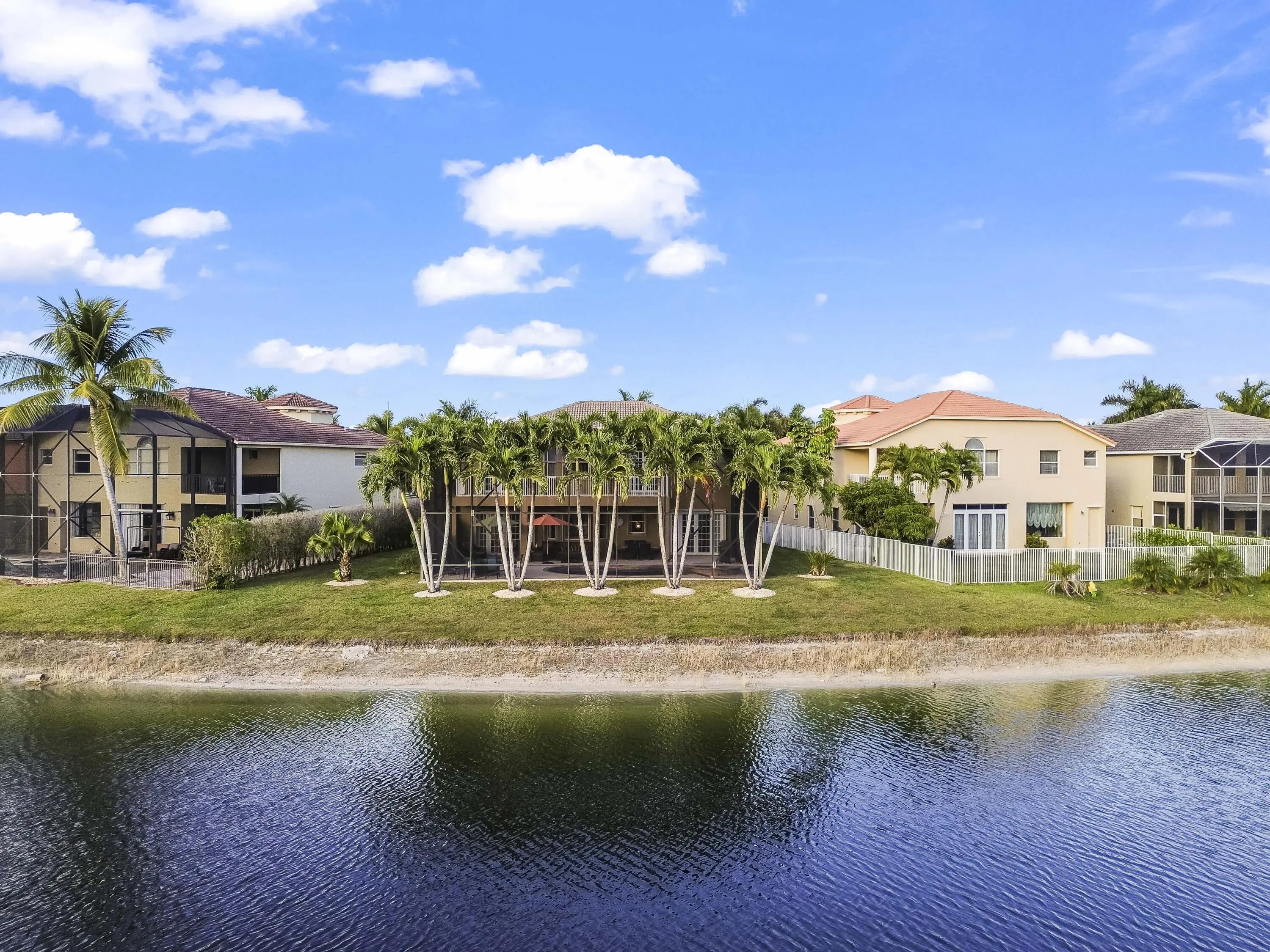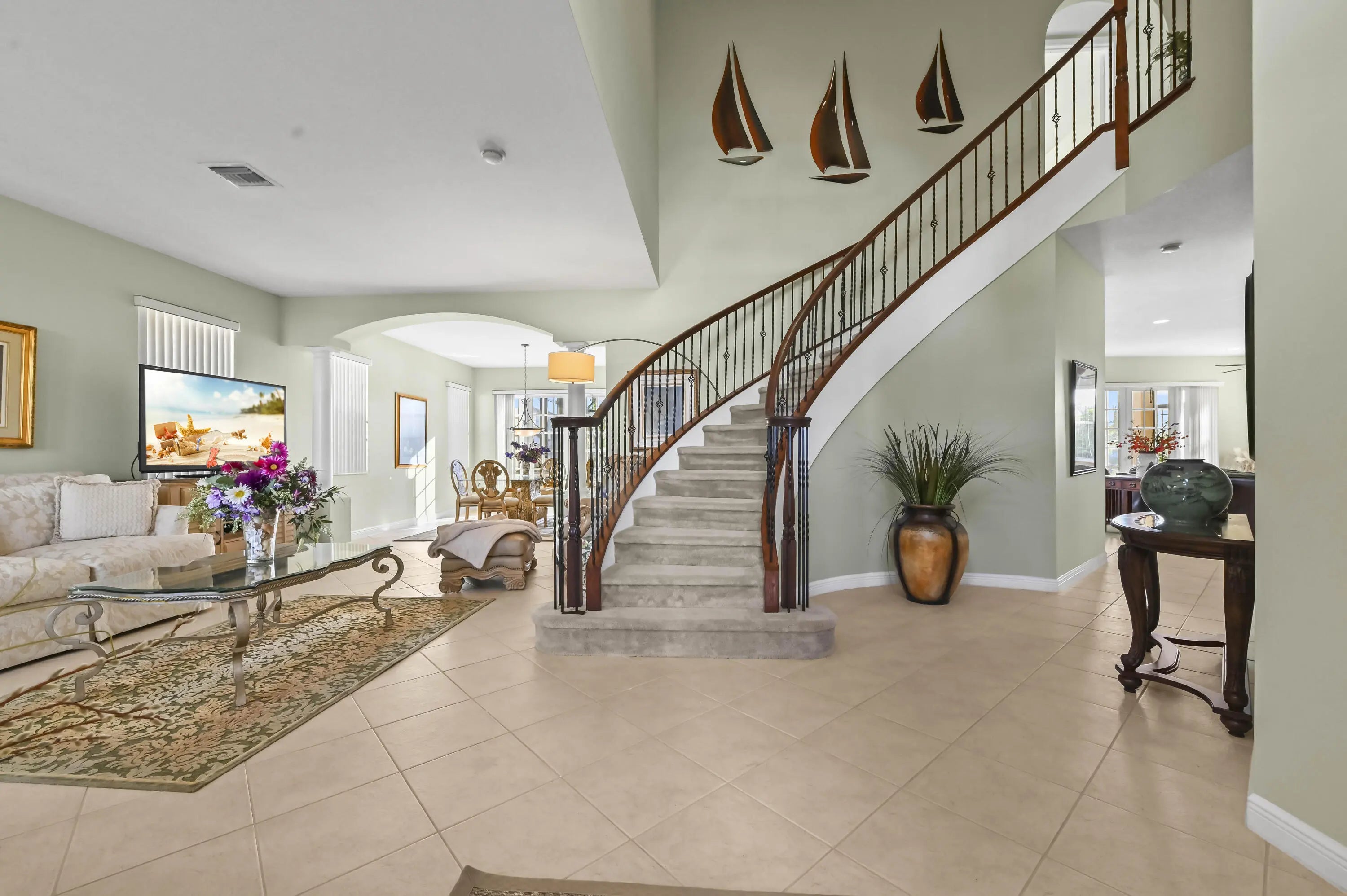 Step into a world of refined elegance in this stunning waterfront estate with a private saltwater pool, perfectly situated in the highly sought-after Olympia community of Wellington. A grand double-door entrance sets the tone, unveiling a light-filled interior highlighted by soaring volume ceilings and a dramatic sweeping staircase that serves as the home's architectural centerpiece. The open-concept layout is ideal for both sophisticated entertaining and everyday comfort, featuring expansive formal living and dining areas enhanced by large windows that frame tranquil outdoor and water views.