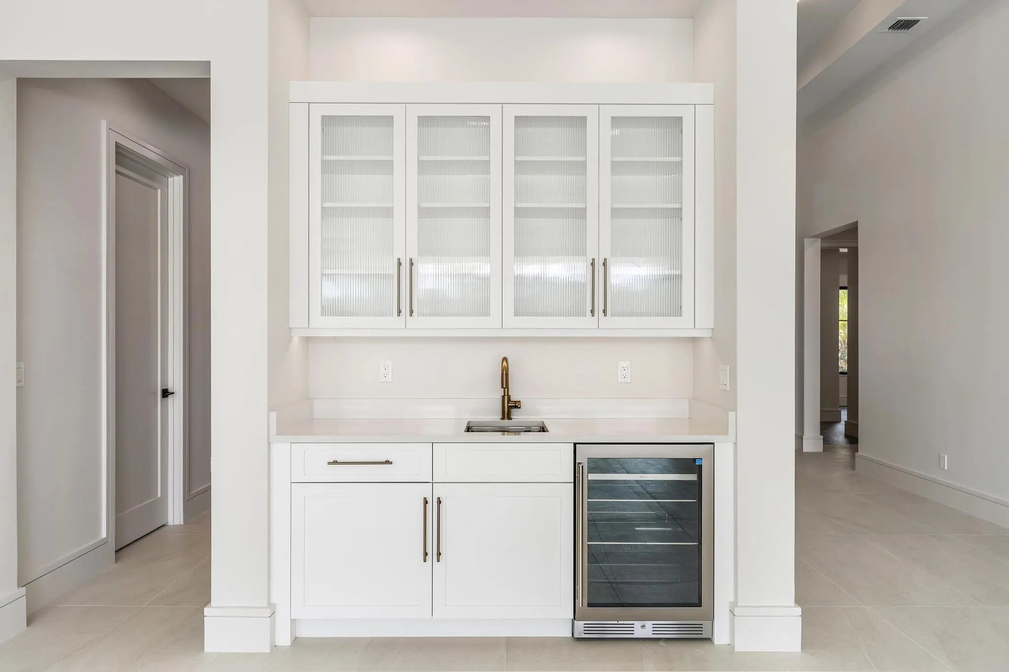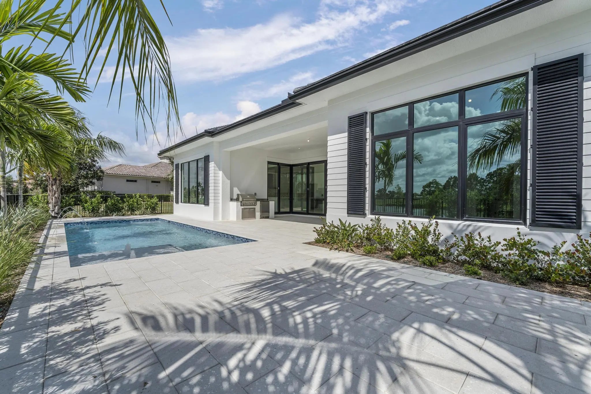 Discover luxury living at its finest in this move-in ready Augusta Custom Pool Home by Ecclestone Signature Homes, located in the highly desirable Tesoro Club. This Coastal Modern, single-story residence offers spectacular water views and an expansive layout with four bedrooms, four-and-a-half baths, a wet bar, and a walk-in pantry. The open floor plan is ideal for entertaining, featuring seamless indoor-outdoor living with a covered patio and summer kitchen. The gourmet kitchen boasts Thermador appliances, an oversized island with back-to-back cabinetry, quartz countertops, a full backsplash, and striking cabinetry. Thoughtfully upgraded and ready for immediate move-in, this exceptional home is not to be missed.