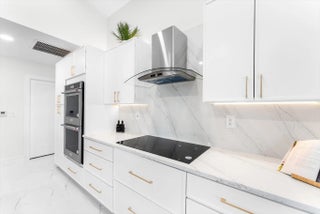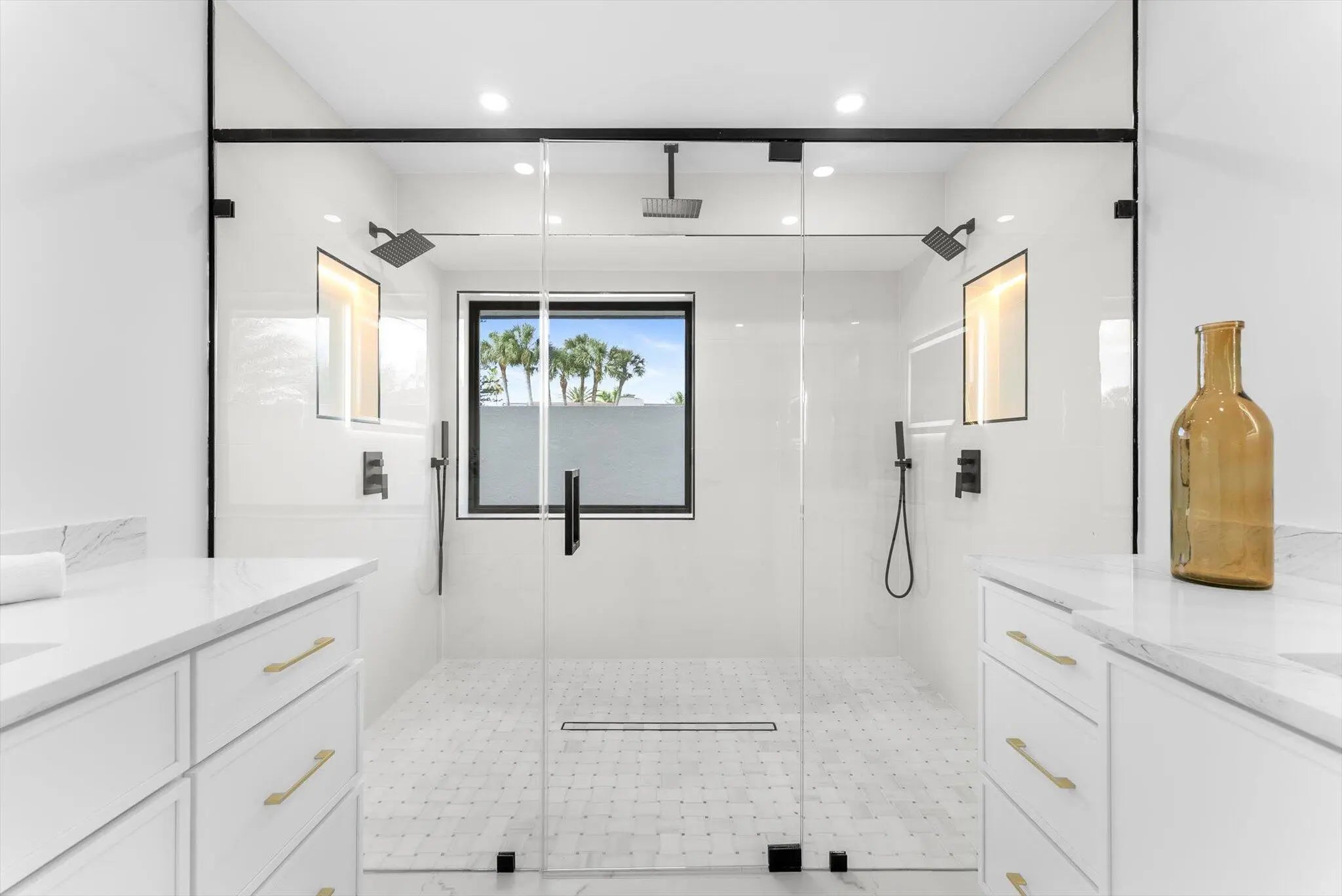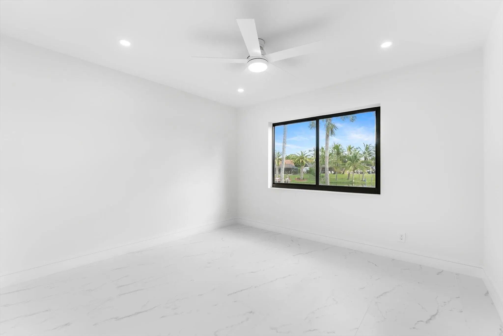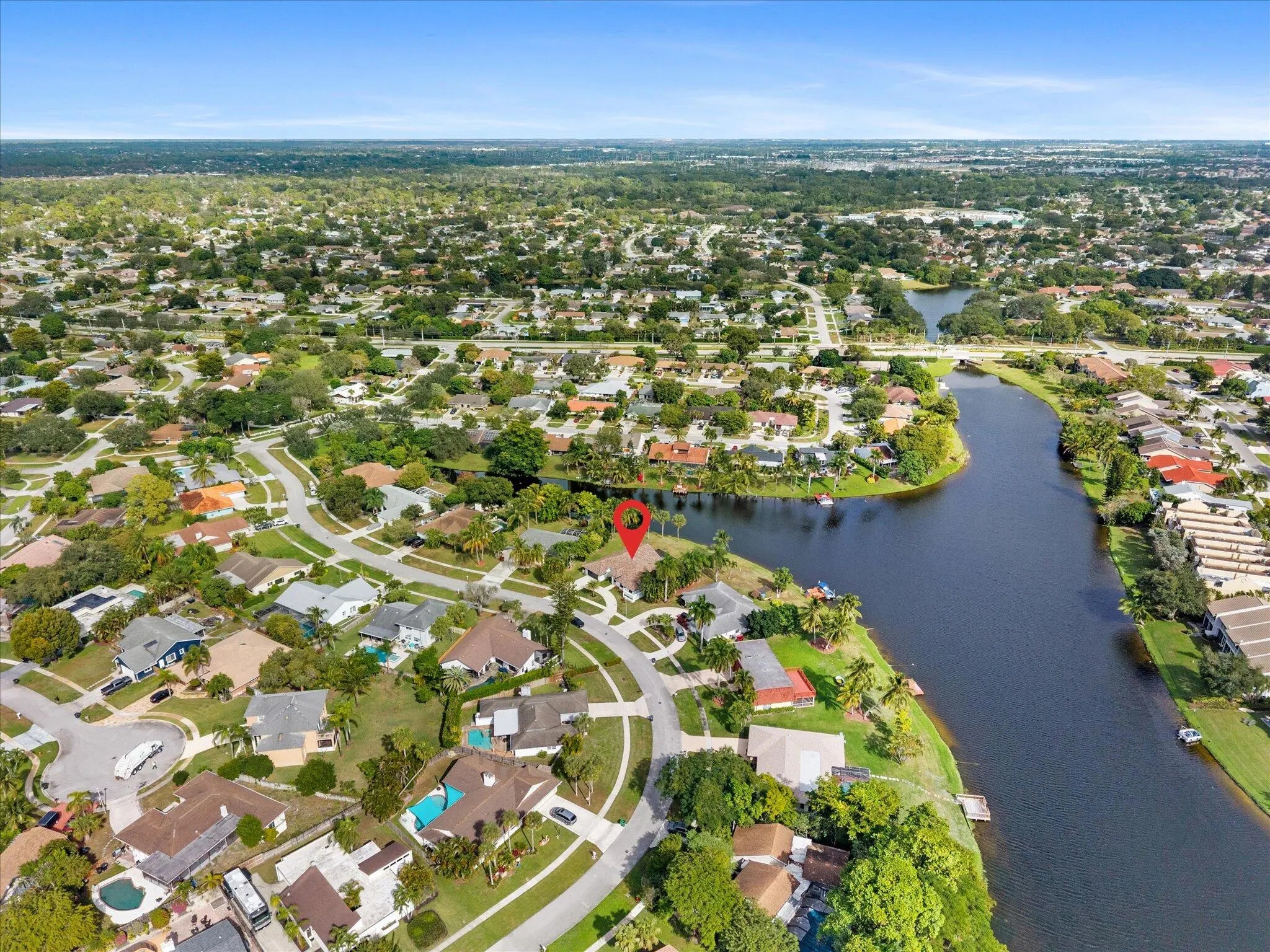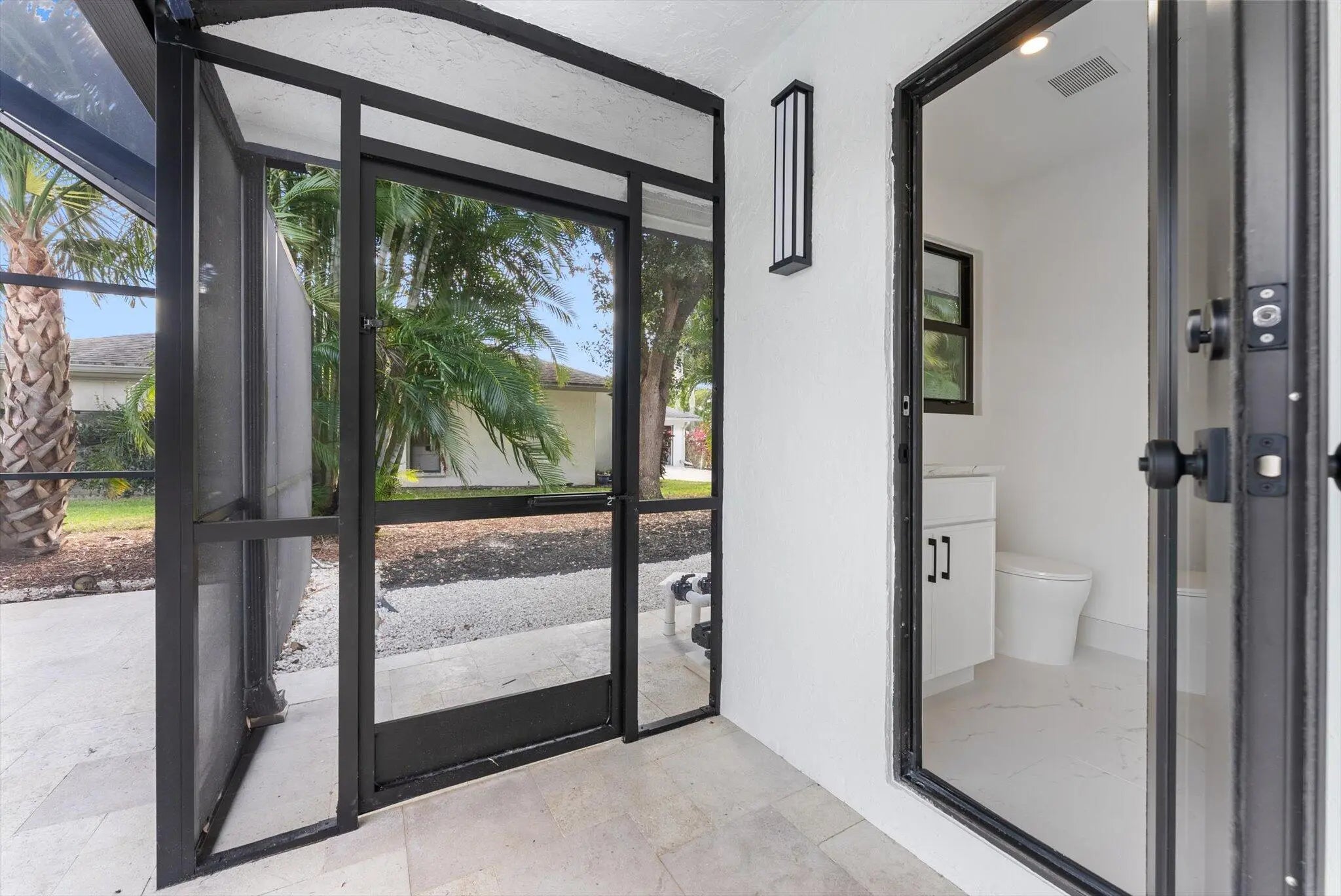 Stunning modern 4BR/2.5BA lakefront pool residence showcasing refined architectural details throughout. Porcelain tile flooring, vaulted ceilings, and crisp white designer finishes that create a bright, sophisticated ambiance. The chef's kitchen offers quartz counters, warm wood accents, gold-style hardware, and premium appliances including dual wall ovens, a sleek cooktop with programmable vent hood, dishwasher, and abundant storage. The spa-inspired primary suite features dual vanities, LED mirrors, and a large walk-in shower with triple heads. Outdoor living includes a screened free-form pool and spa, cabana bath access, covered patio, circular drive, garage and, serene lake views, plus a 3-year-old barrel tile roof, impact glass, CBS construction, and an oversized 13,519 SF Lot.