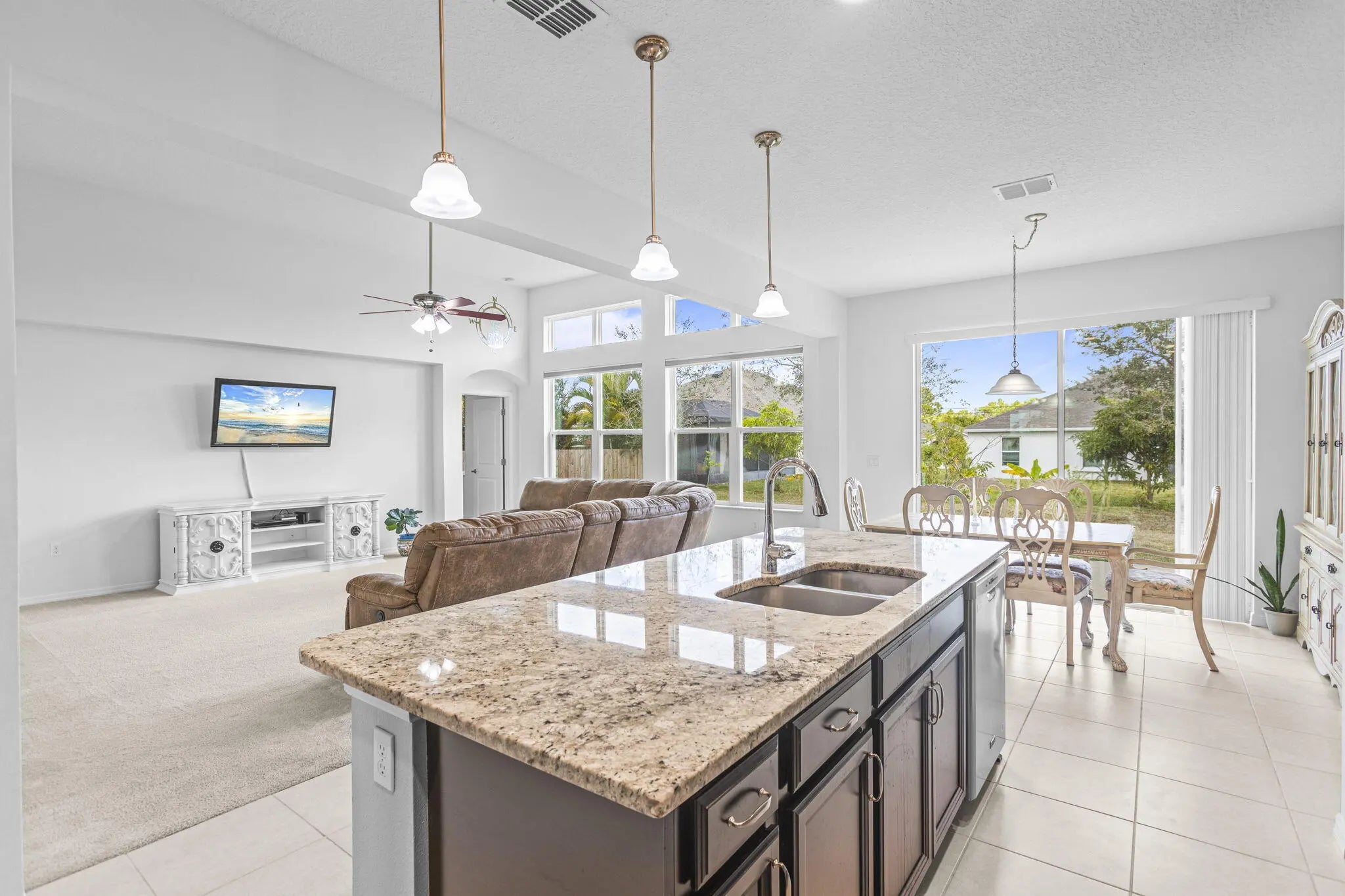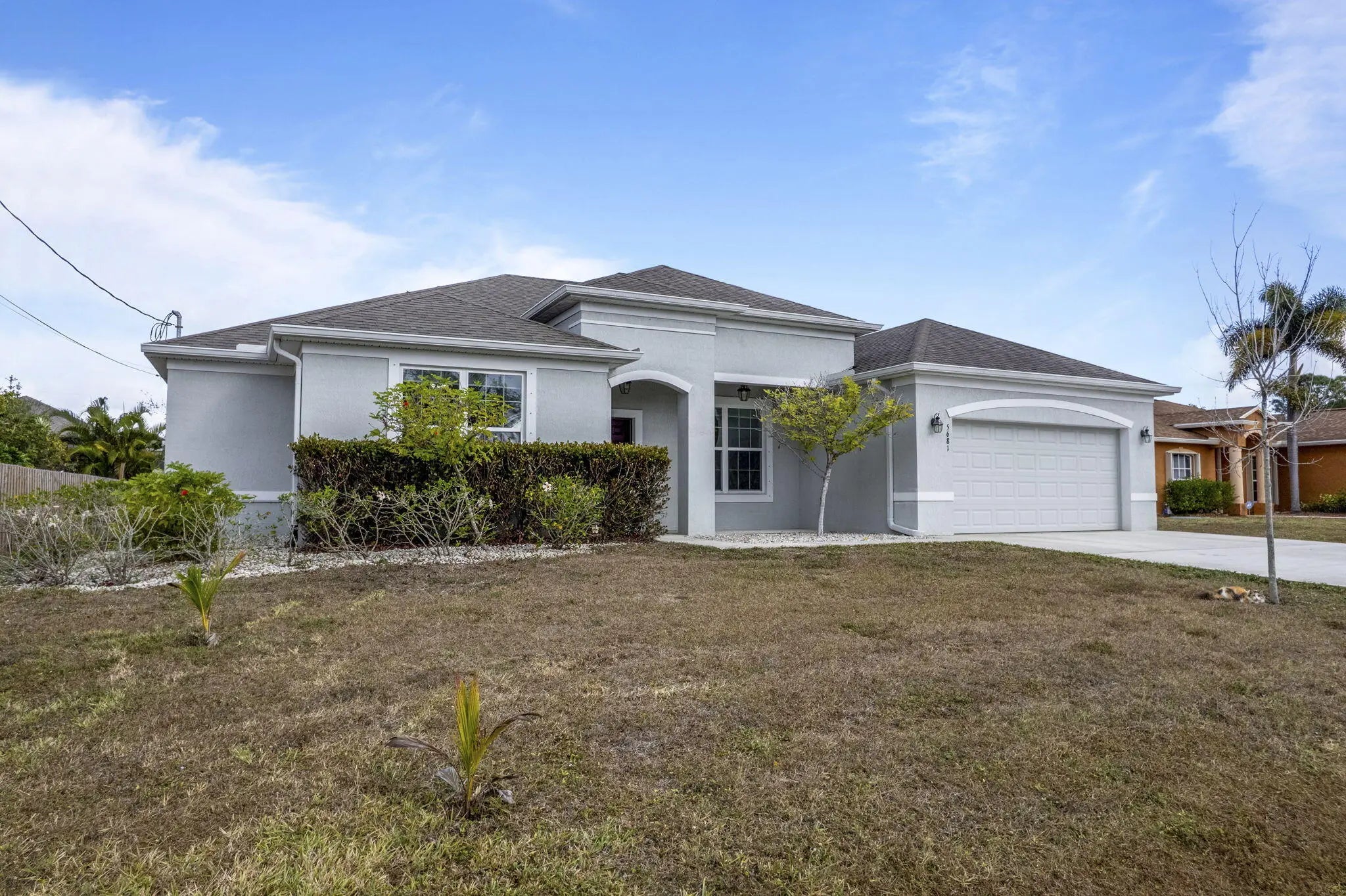 Spacious, bright, and designed for today's family living. This newer-build home offers 9-12 ft ceilings, abundant natural light, and a desirable split floorplan. Featuring 4 bedrooms, 3 baths, plus a flex room with a closet--perfect for a home office, playroom, or 5th bedroom. A private wing includes a bedroom and full bath, offering ideal separation for guests or multigenerational living. Enjoy a large kitchen with granite, SS appliances, and an island giving an open concept layout. This home has freshly painted interiors, an oversized 2 car garage (4ft more), wider driveway fits many cars & toys (RV Boat), and a generous backyard. Solar panels keep the power bill around $45/month. Close to shopping and dining options in St. Lucie West. Short drive to Fort Pierce beach. Ideal location!