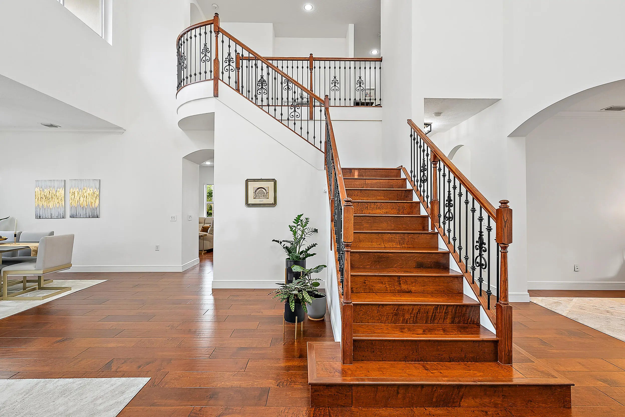 Welcome to this beautifully updated residence located in the Audubon Signature Sanctuary community of Evergrene in Palm Beach Gardens. Offering three spacious bedrooms, three full baths, and a thoughtfully designed layout, the home is ideal for both everyday living and entertaining. Upon entry, soaring cathedral ceilings and abundant natural light highlight two distinct living areas and an elegant formal dining space, while a versatile main-level den or home office provides flexibility for remote work or a quiet retreat. The chef's kitchen serves as the heart of the home, featuring a Thermador gas cooktop and refrigerator, a 50+ bottle wine refrigerator, and a generous center island with ample counter space - perfect for gathering with family and friends.