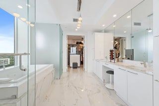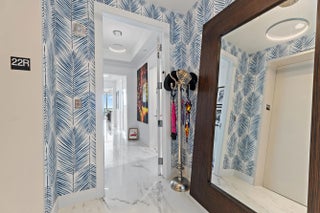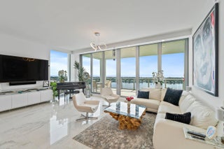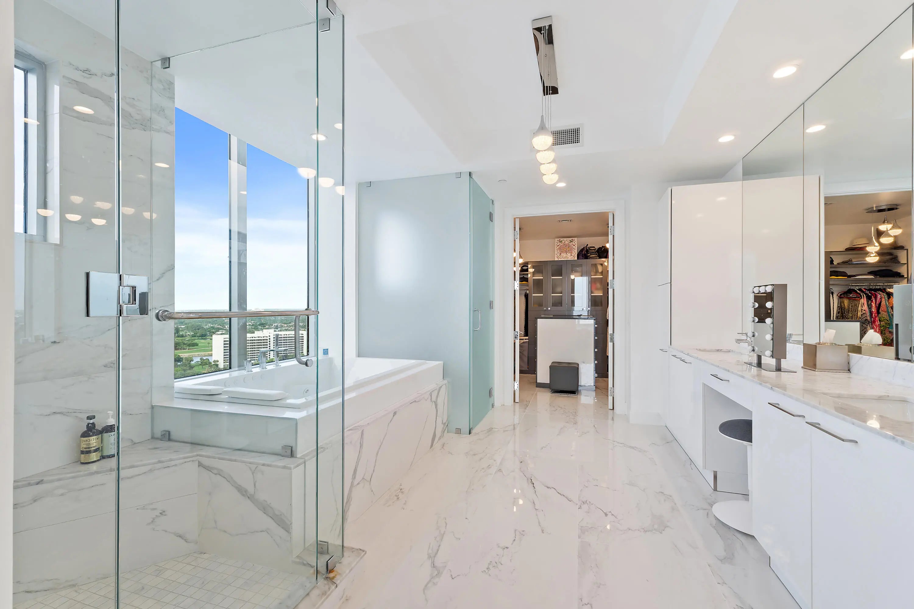 Perched on the 22nd floor of the prestigious Water Club, this nearly 3,000 sq ft penthouse offers sweeping panoramic views of the Atlantic Ocean, Intracoastal Waterway, and Palm Beach coastline. Floor-to-ceiling glass walls fill the open living space with natural light, creating a private, serene retreat above it all. The primary suite features a spa-like bath with a custom double-wide Jacuzzi tub, smart bidet toilet, and expansive custom closets. A sleek chef's kitchen is equipped with Jenn-Air and KitchenAid appliances, reverse osmosis water system, and whole-home filtration. Luxury details include a Tesla charging station, penthouse-priority elevator access, and private storage. Water Club residents enjoy resort-style amenities, concierge services, and a guard-gated waterfront setting.
