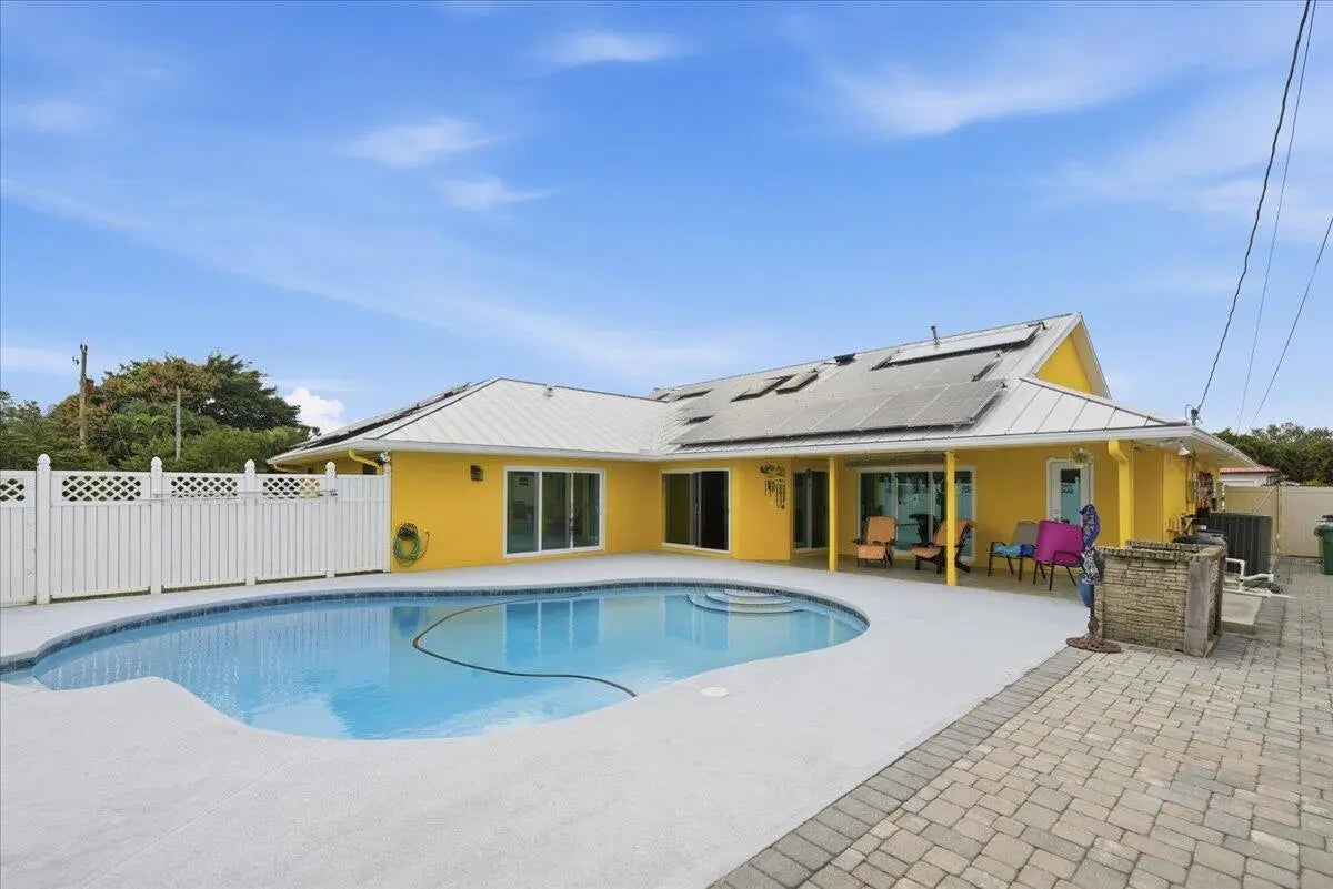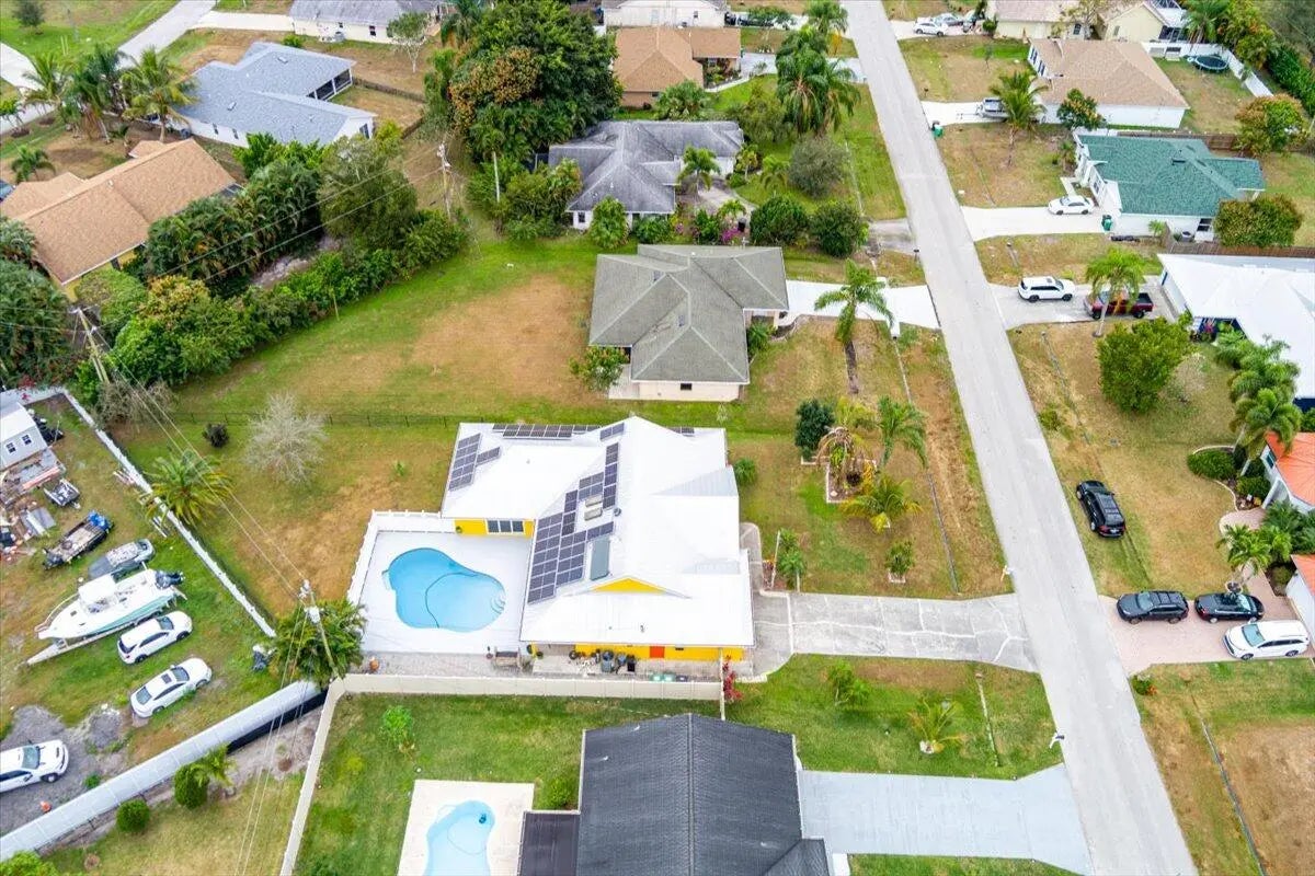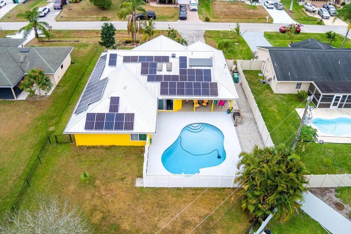 PRICE IMPROVEMENT WITH 2% SELLER CONCESSIONS OFFERED. Beautiful 4/3/2 CBS pool home in desirable Southbend on .35acres! This move-in-ready residence features a 5-yr-old metal roof and owned solar panels, offering long-term durability and energy efficiency. Enjoy Florida living w/refinished pool area and privacy fence perfect for relaxing. The home is equipped w/impact windows and doors, laminate flooring throughout and a brand-new 5 ton A/C. The kitchen has ''Chicago Brick'' accent walls, and a spacious layout w/plenty of natural light. Keep your boat in your yard and take a short drive around the corner to the Southbend boat ramp to enjoy a day on the water. close to shopping, and dining. A rare opportunity to own an upgraded, energy-efficient home--schedule your private showing today.
